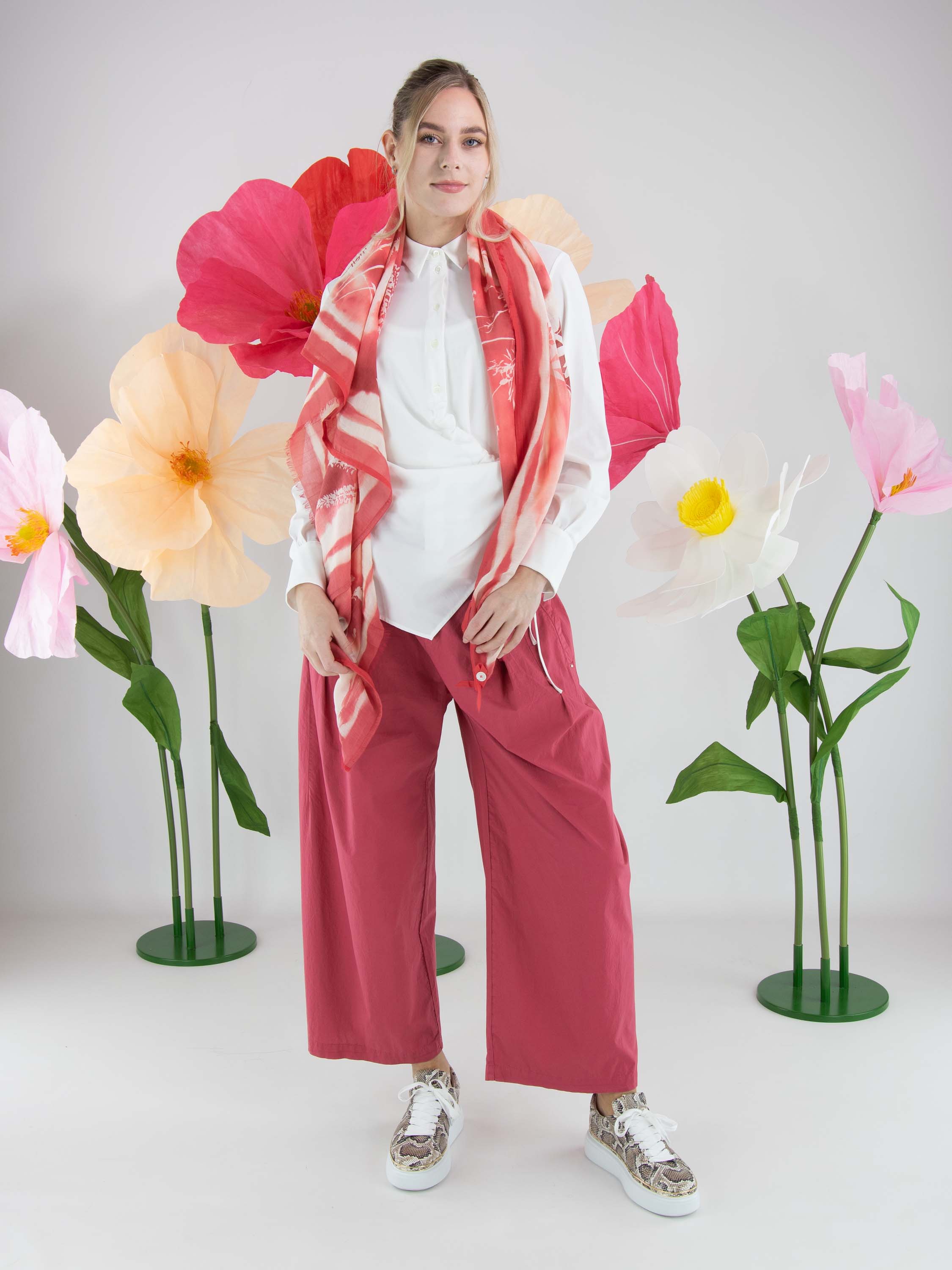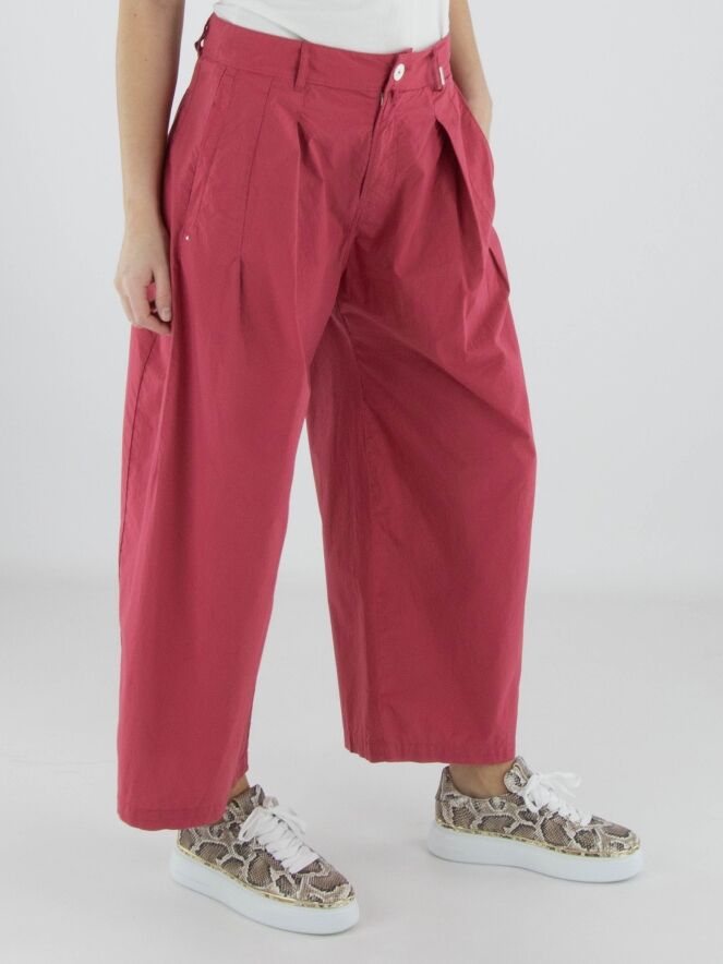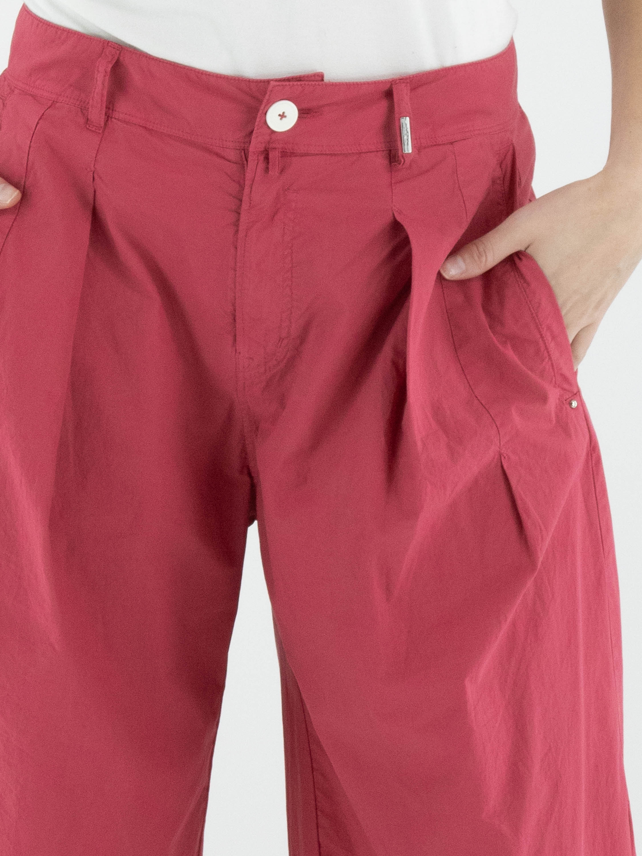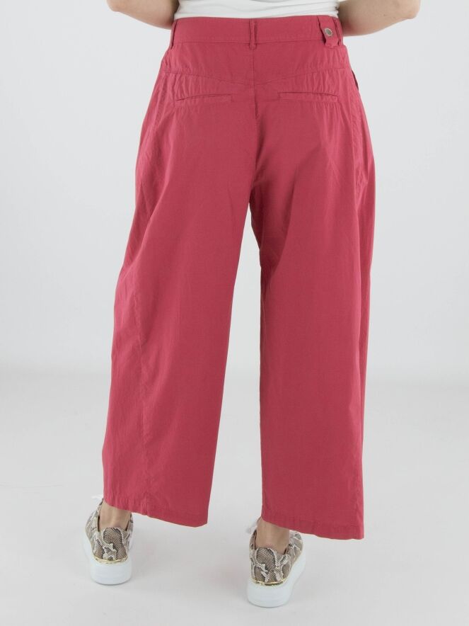 Pantalon de High en coton léger d’été dans une teinte framboise. Des plis à partir de la taille apportent une coupe fluide et féminine. Doté de poches latérales, ce pantalon de créateur exclusif peut être lavé à 30 degrés.
