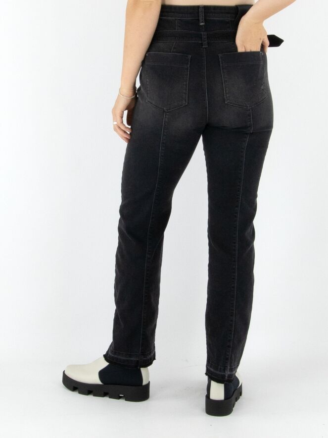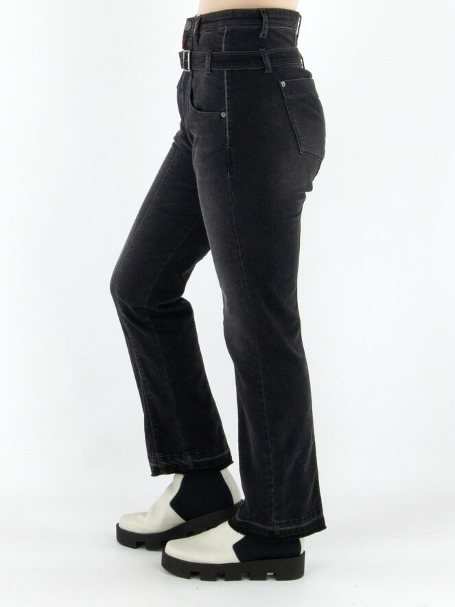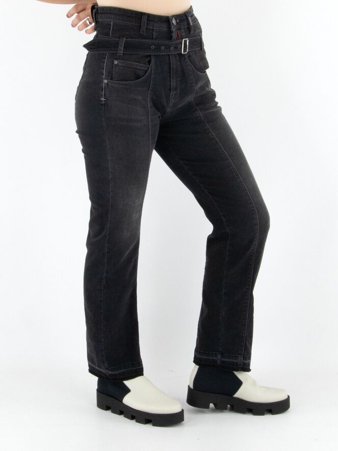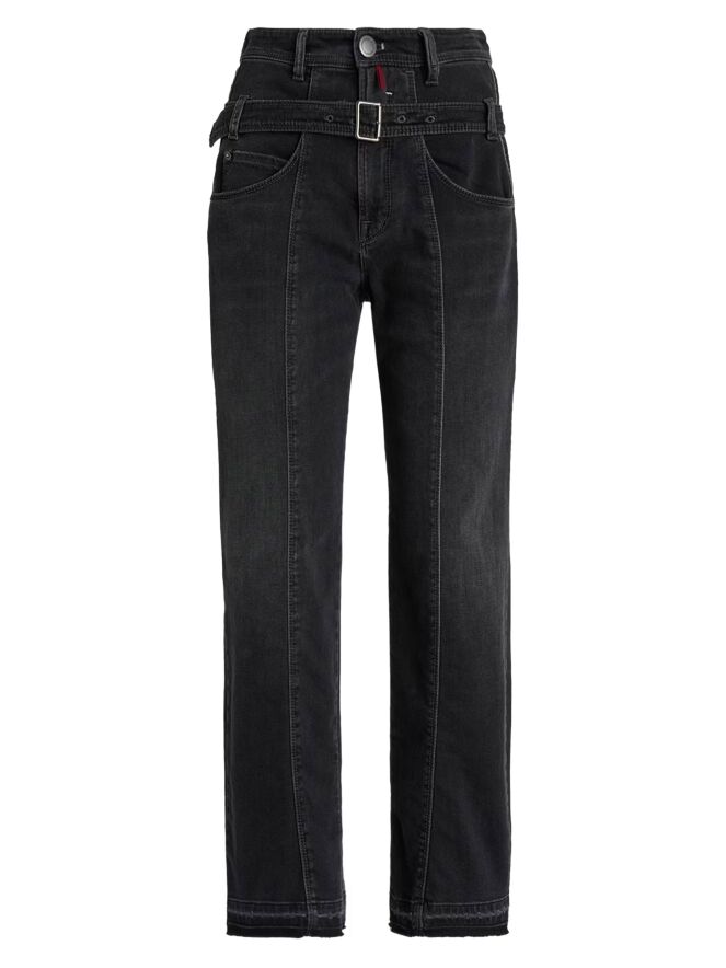 Un jean taille haute effet used de High en anthracite. Conçu dans une coupe classique 5 poches, il est accompagné d’une ceinture réalisée dans le même tissu. Les ourlets des jambes sont délicatement effilochés, apportant une touche décontractée et moderne. Ce jean peut être lavé à 30 degrés.