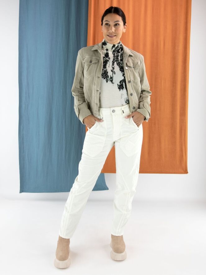 Une veste en velours doux de la marque High, dans une teinte beige chaude, qui allie parfaitement confort et élégance. Le blazer est doté d’une fermeture à boutons et de poches fendues à la taille. Sur le côté, une fermeture à boutons permet d’ajuster la coupe plus près du corps. Grâce aux instructions de lavage à 30 °C, le modèle conserve plus longtemps sa beauté, sa forme et sa douceur.