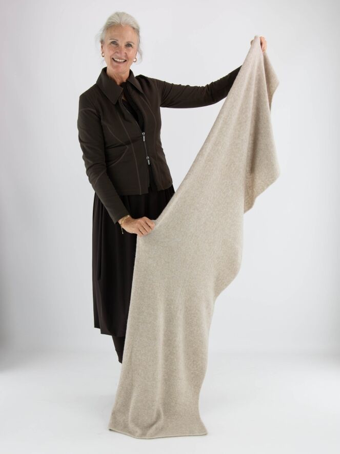 Écharpe de la marque High en beige. L’écharpe est finement tricotée et doit être lavée à la main.