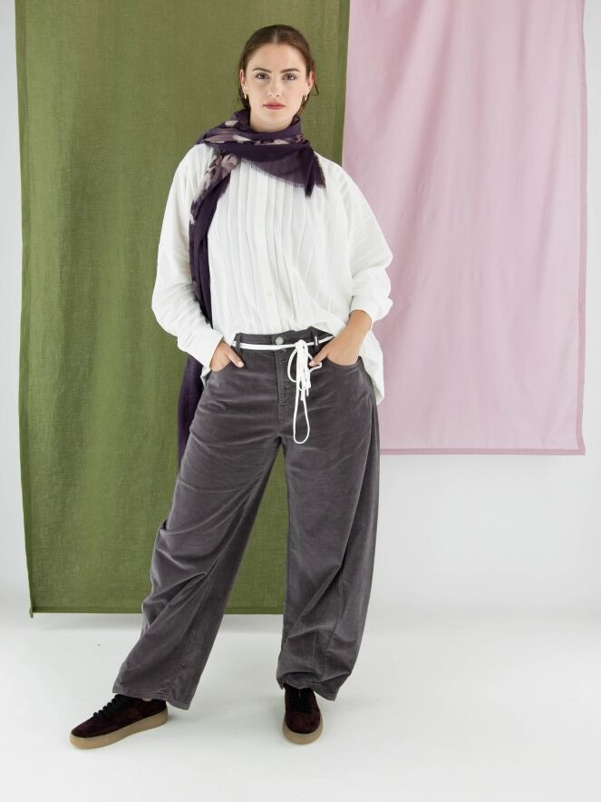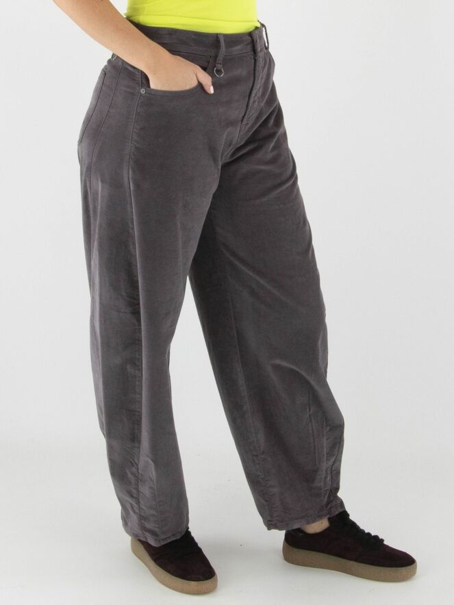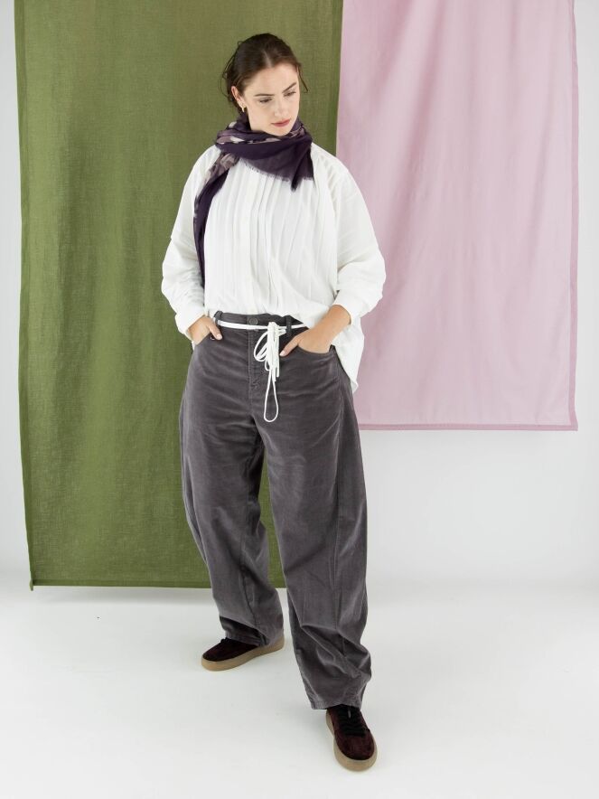 Un pantalon en velours doux signé High, décliné dans une nuance violette délicate. Son design à cinq poches rappelle les coupes classiques, tout en offrant confort et allure féminine. Les jambes légèrement fuselées allongent subtilement la silhouette et s’adaptent aisément à différents styles. Idéal pour des tenues décontractées ou plus sophistiquées, le velours apporte une touche luxueuse et chaleureuse. La teinte douce en fait une pièce polyvalente pour les saisons de transition. Pratique au quotidien, ce pantalon se lave facilement à 30 degrés.