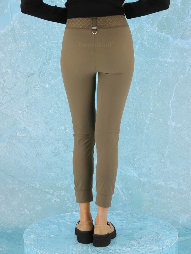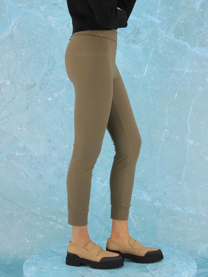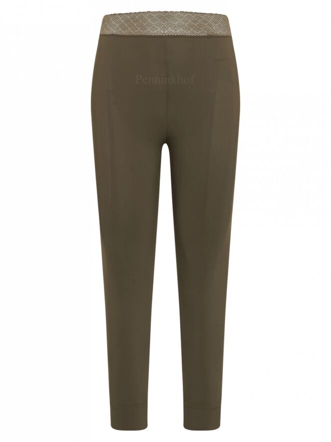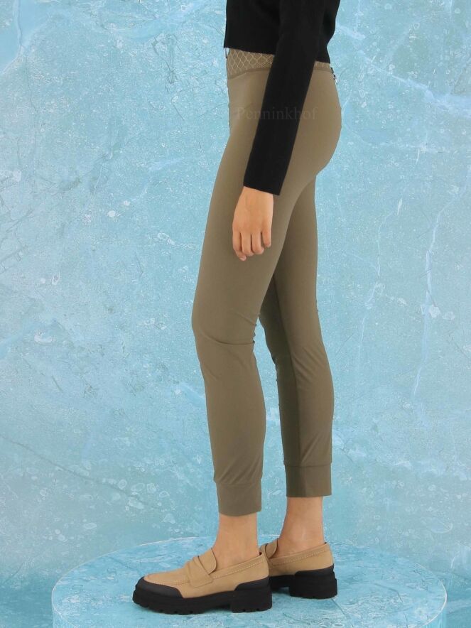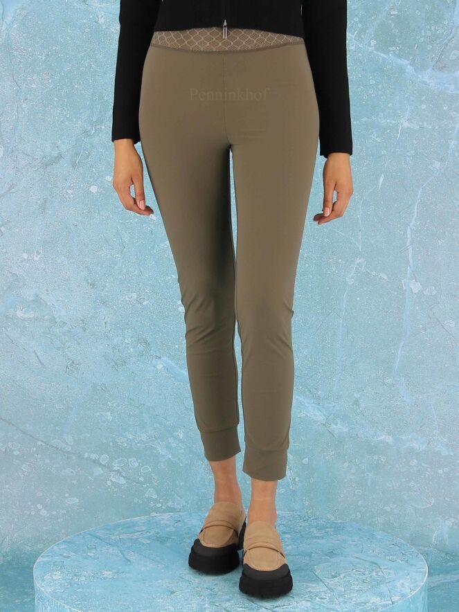 Leggings de la marque High, de couleur vert olive. La taille est équipée d'une large bande élastique en dentelle. Lavage à 30 degrés.