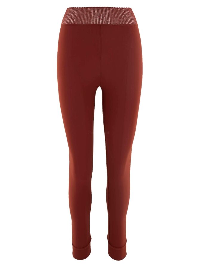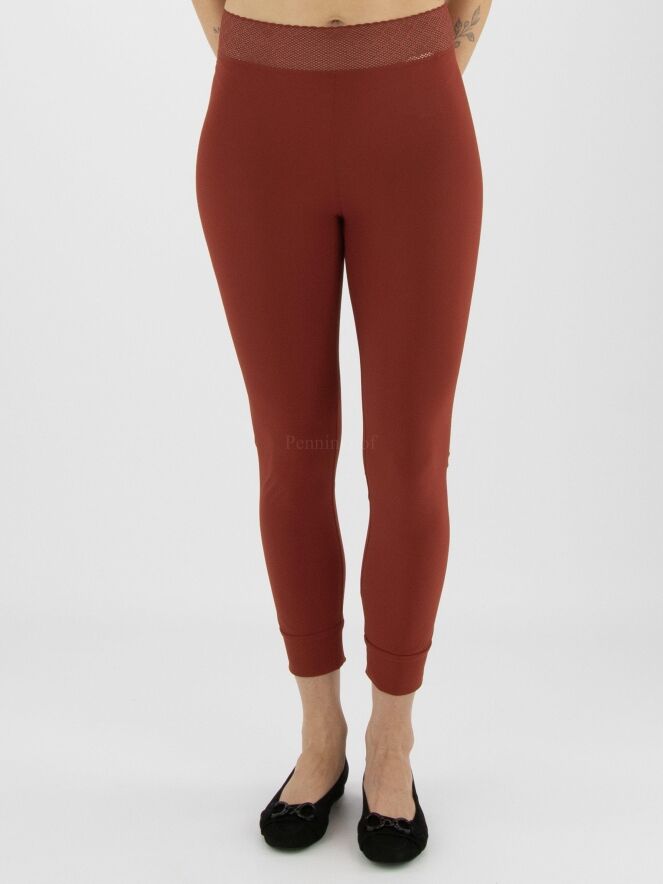 Leggings de la marque High, de couleur rouille. La taille est dotée d'une large bande élastique dans une structure de mesh. Lavage à 30 degrés.