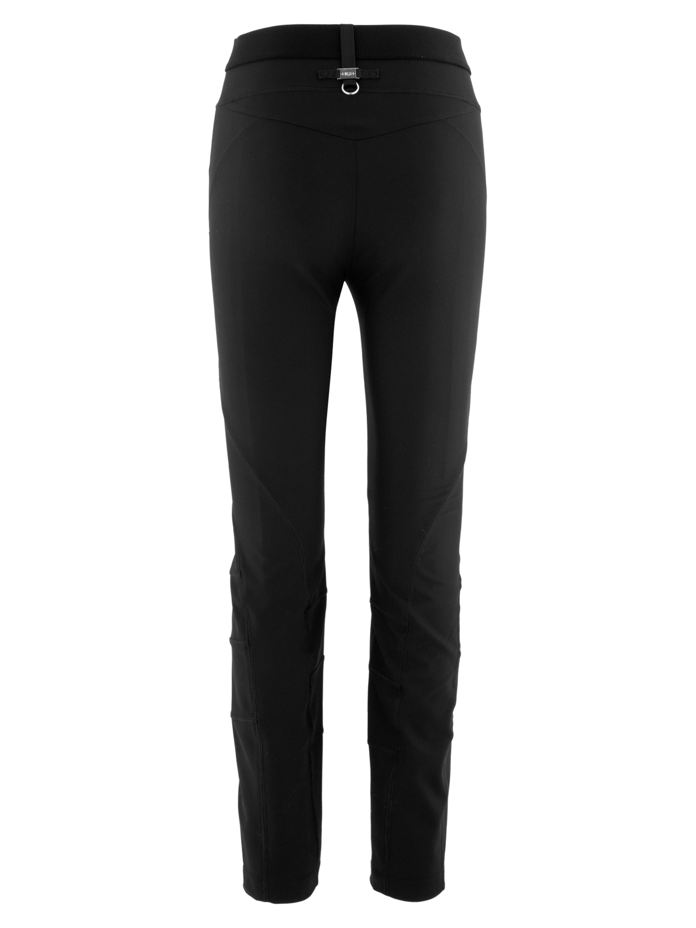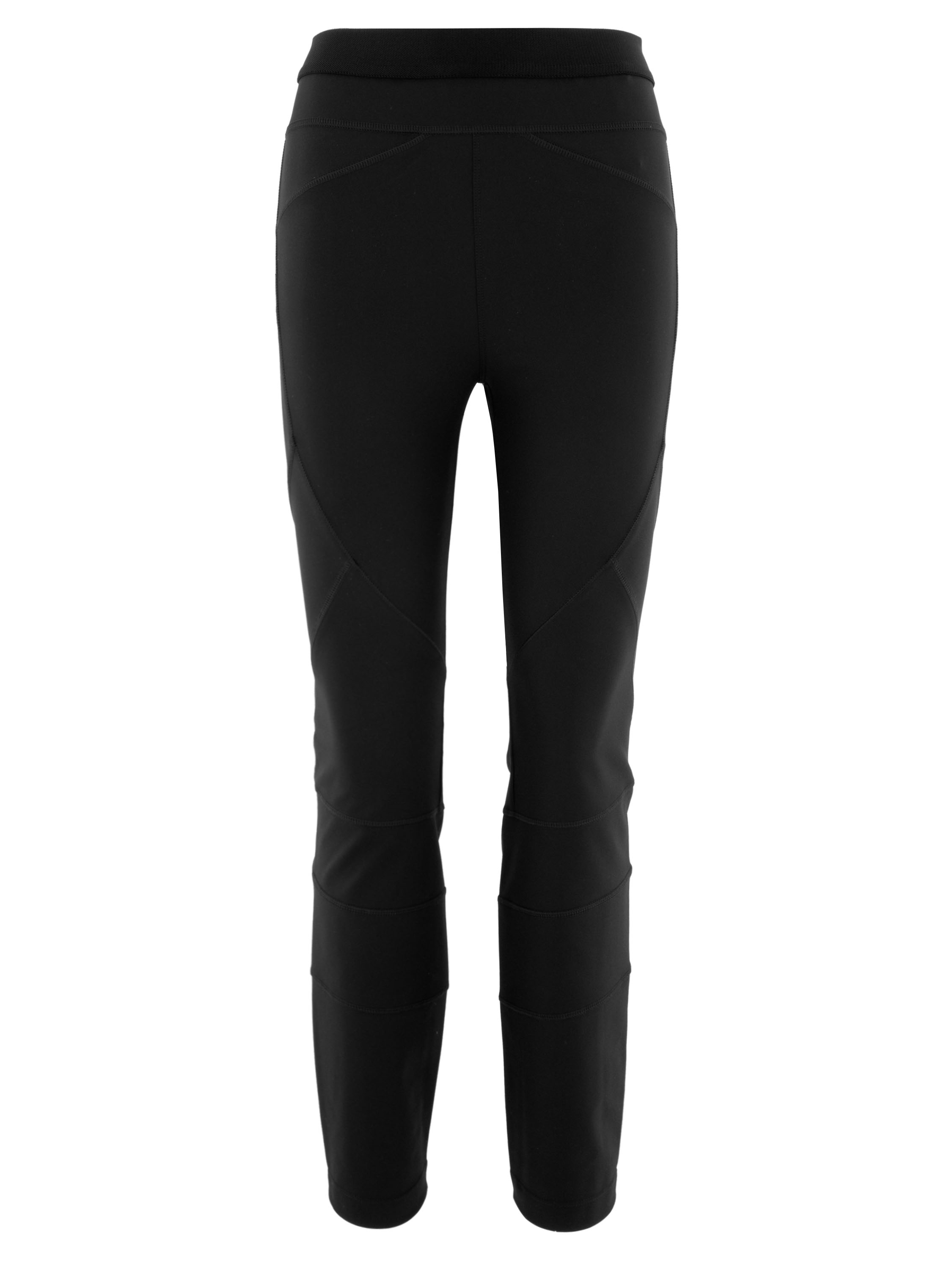 Un pantalon de High en noir. La taille est dotée d’une bande élastique. Le pantalon présente plusieurs coutures décoratives diagonales et horizontales. Ce pantalon peut être lavé à la main.