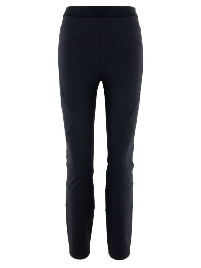 Un pantalon de High en bleu marine. La taille est dotée d’une bande élastique. Le pantalon présente plusieurs coutures décoratives diagonales et horizontales. Ce pantalon peut être lavé à la main.