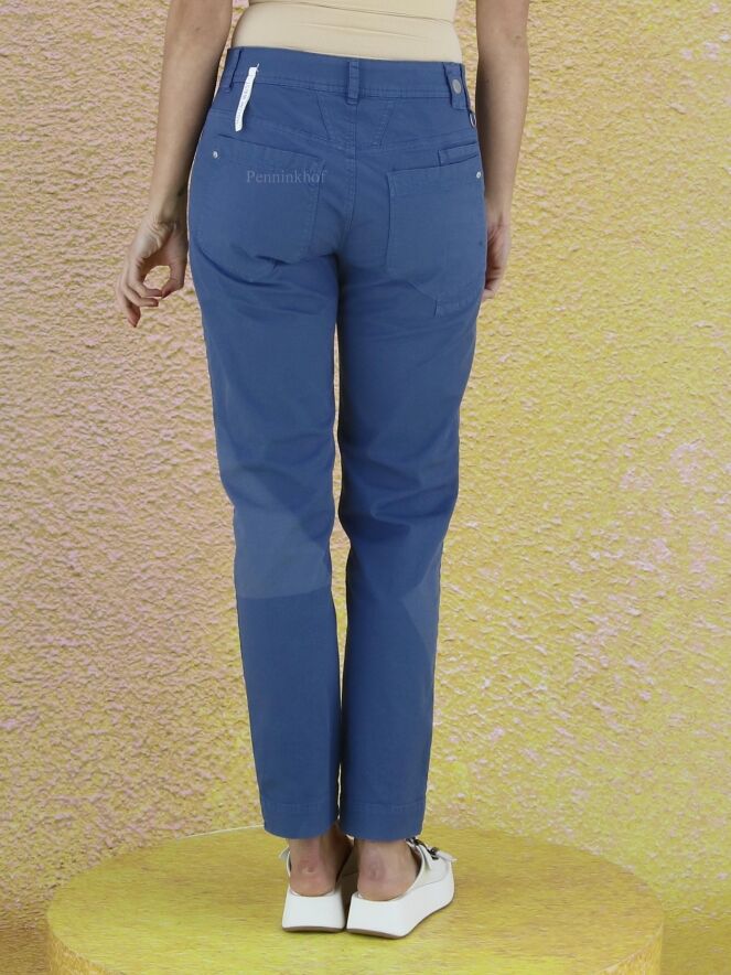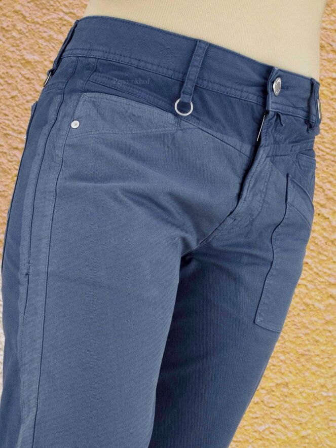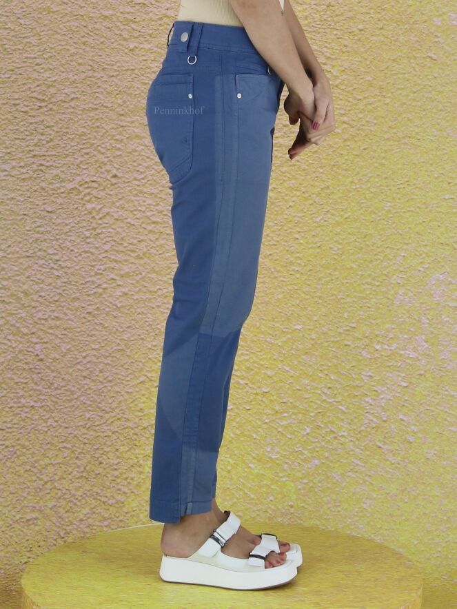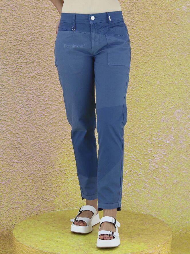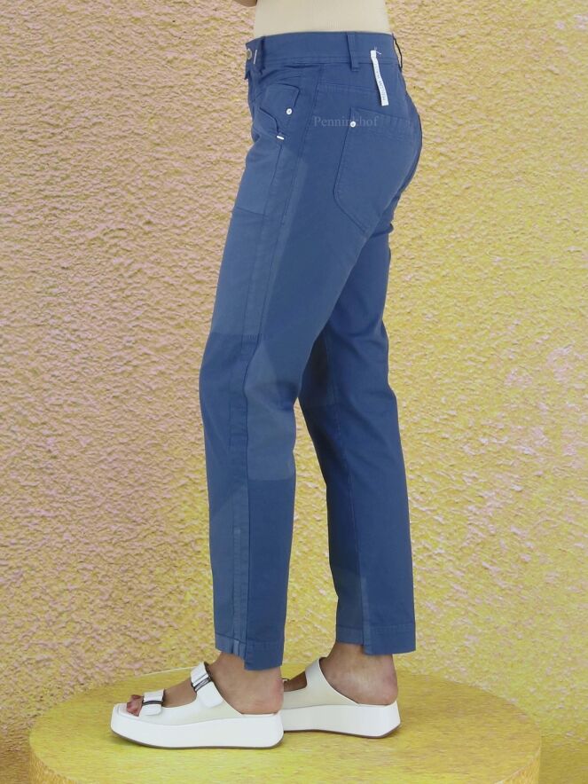 Pantalon de la marque High, de couleur bleue. Le pantalon est composé de différentes parties claires et foncées. Lavage à 30 degrés.