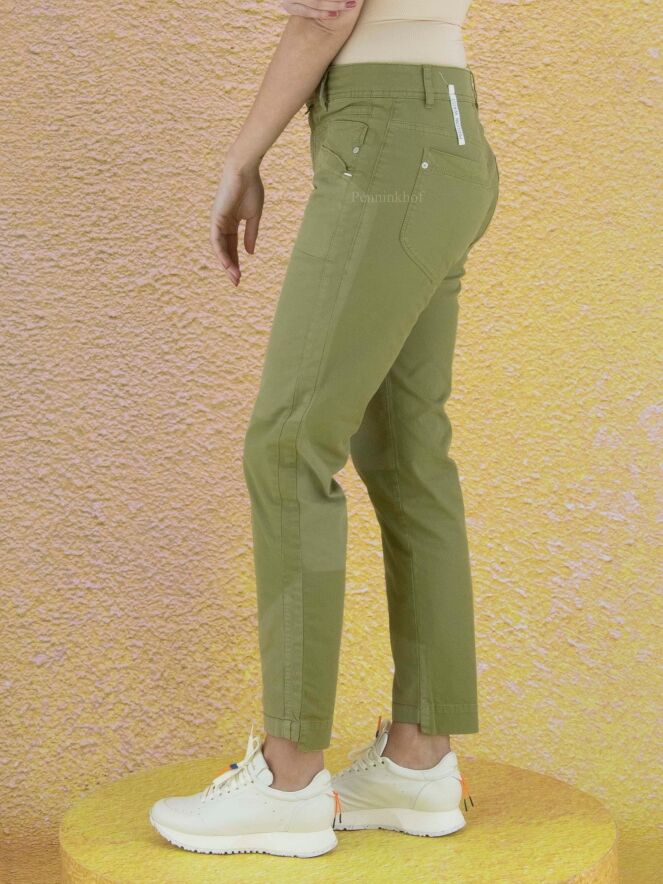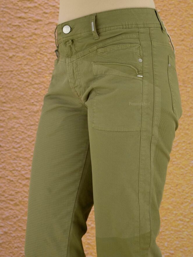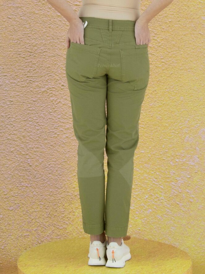 Pantalon de la marque High, de couleur vert pistache. Le pantalon est composé de différentes parties claires et foncées. Lavage à 30 degrés.
