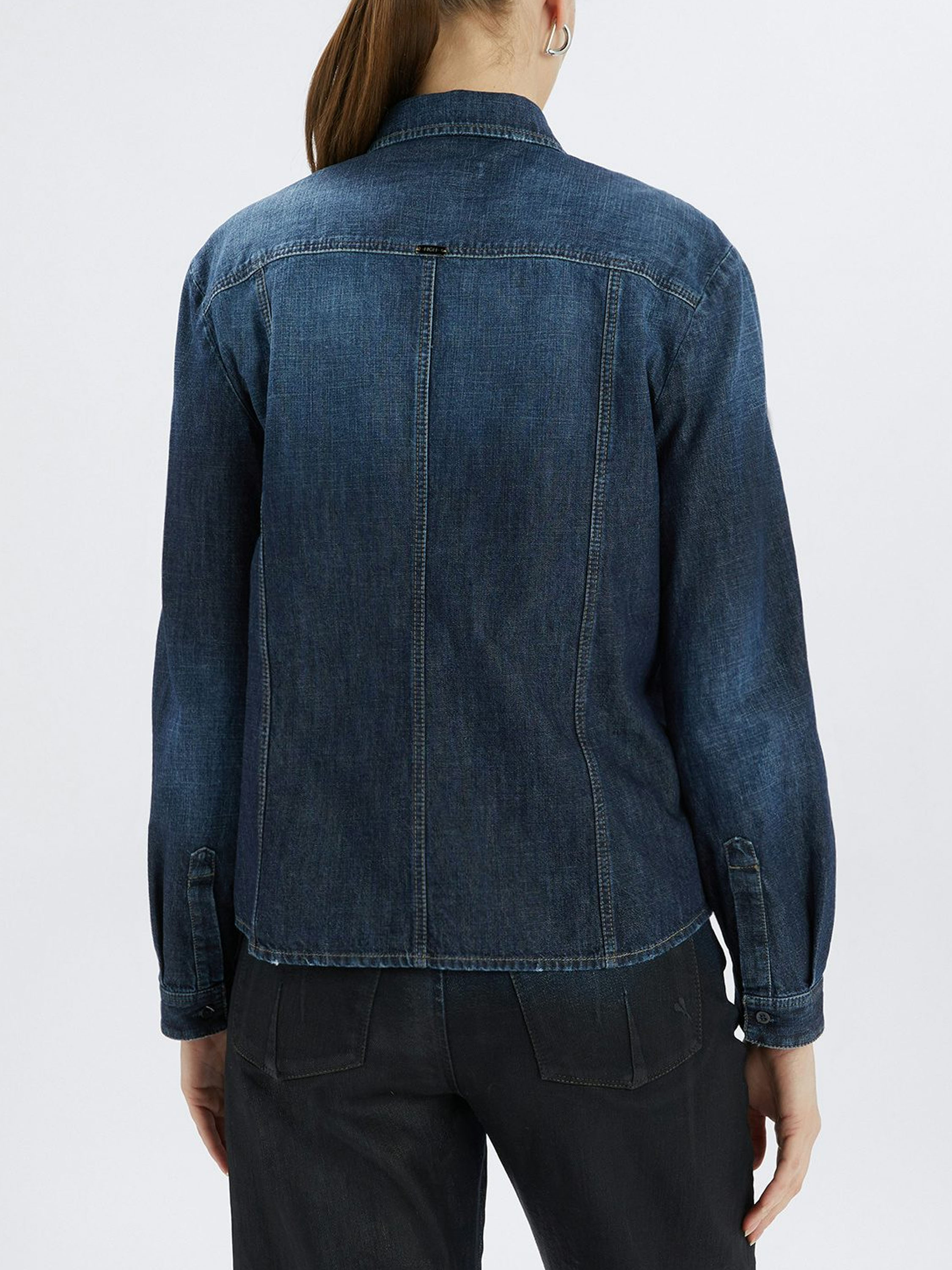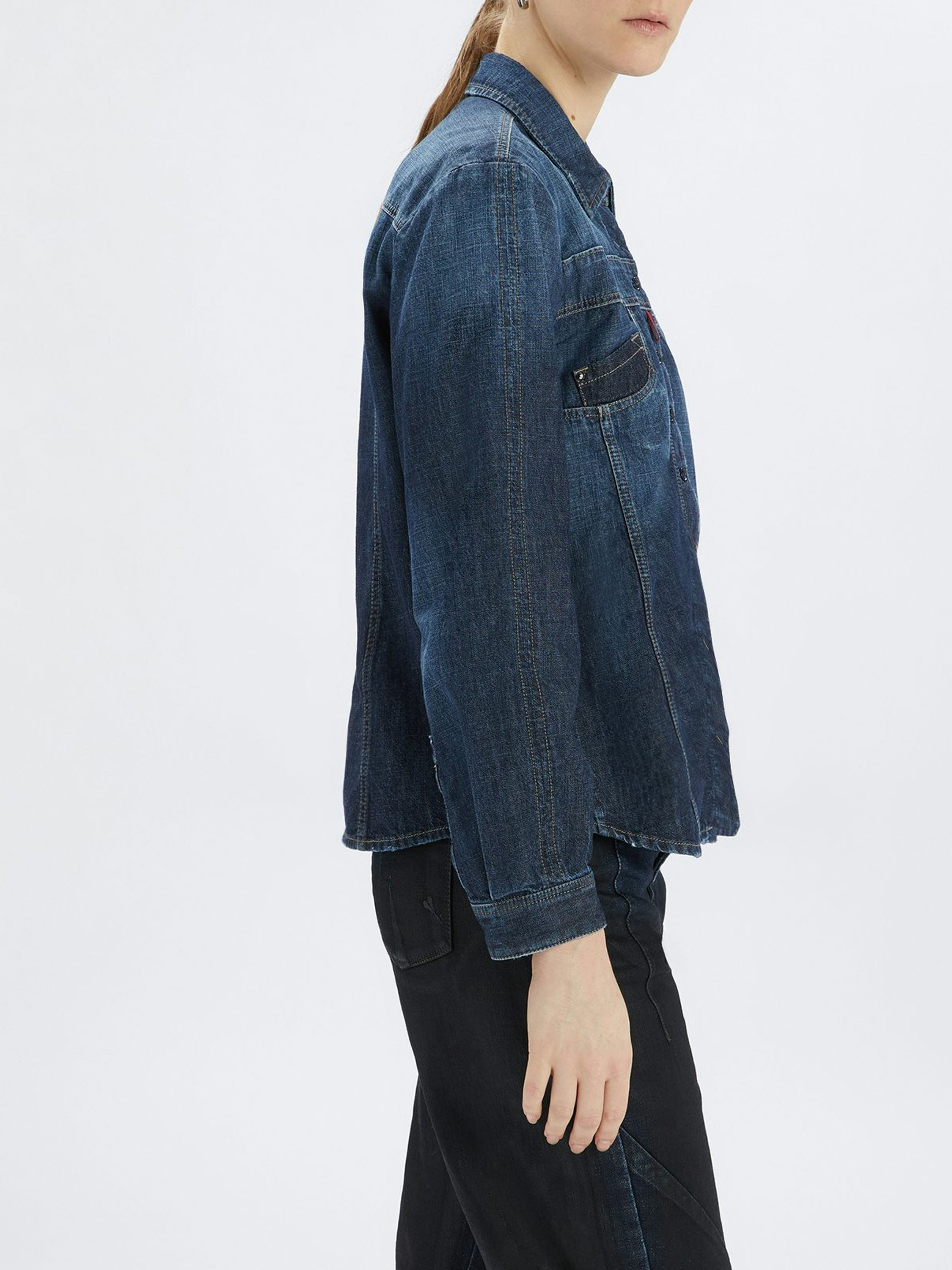 Une blouse en jean de High dans une teinte denim classique. De petites poches décoratives sont fixées en diagonale sur les deux pans avant. Cette blouse peut être lavée à 30 degrés.