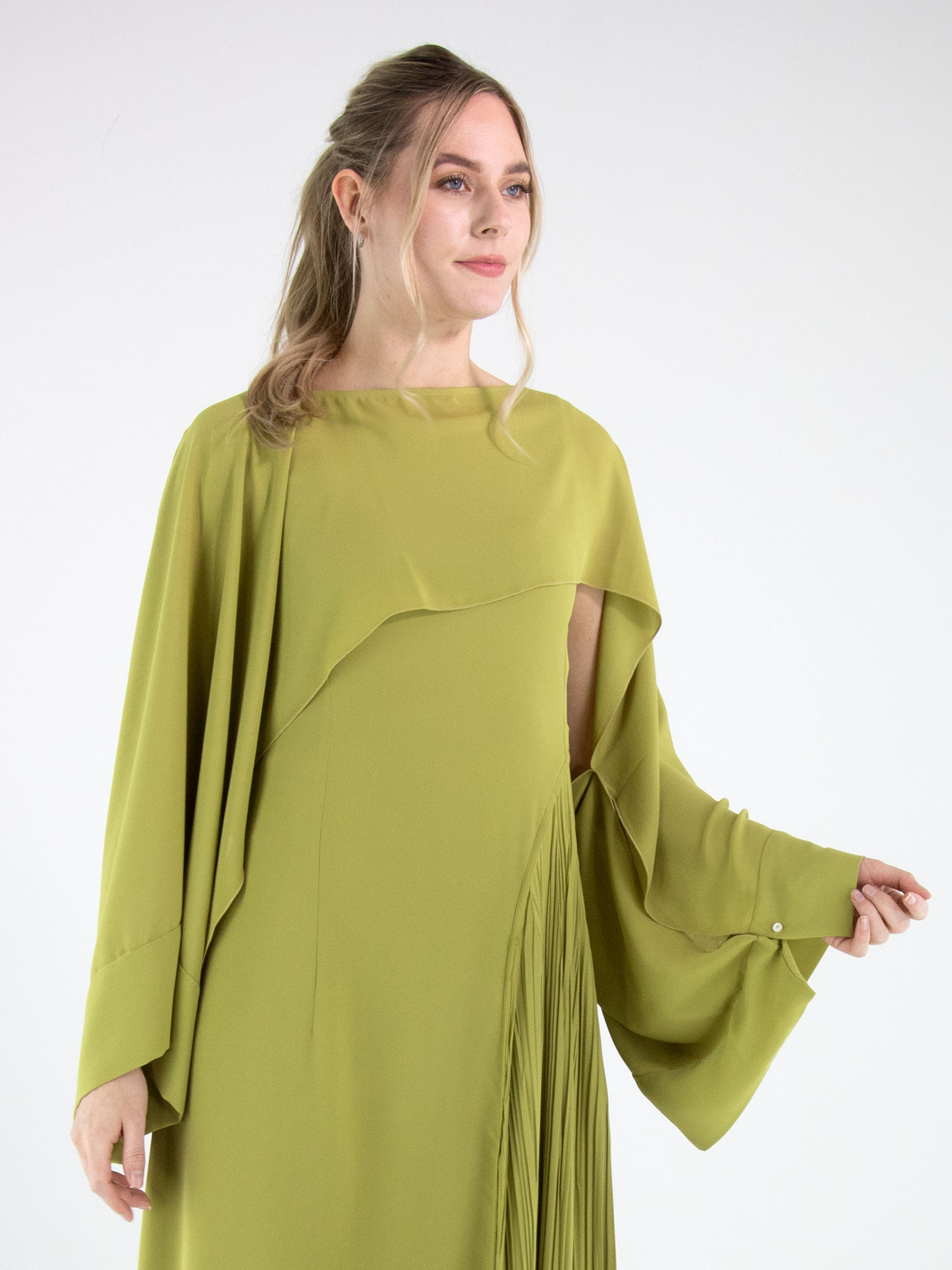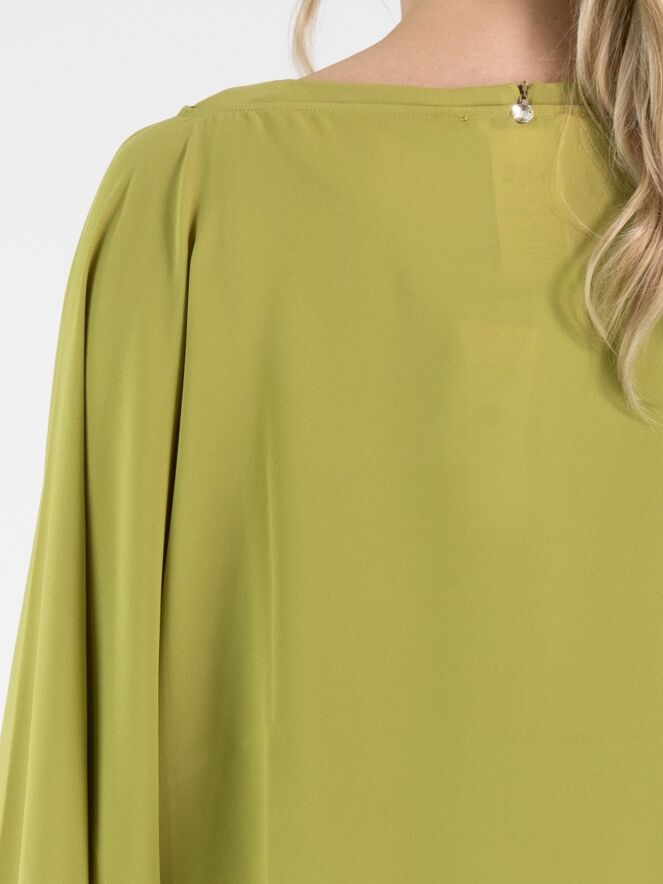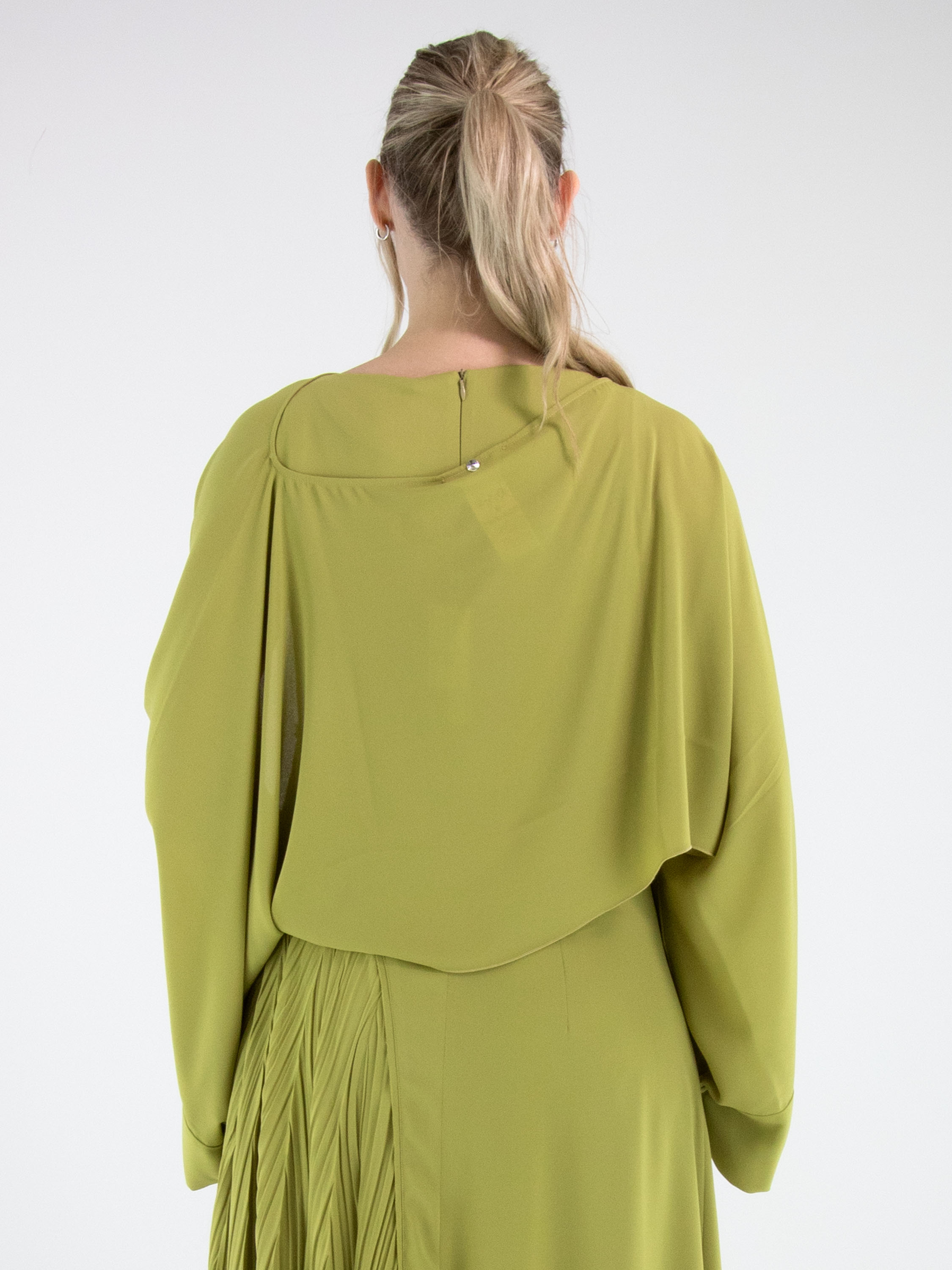 Boléro de High dans une teinte vert pistache fraîche. Les manches sont ouvertes sur la partie supérieure à partir des épaules, créant un détail aérien et contemporain. Doté d’un large col rond, ce boléro doit être lavé à la main.