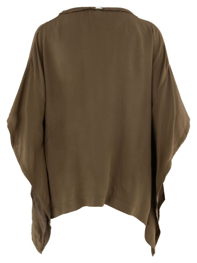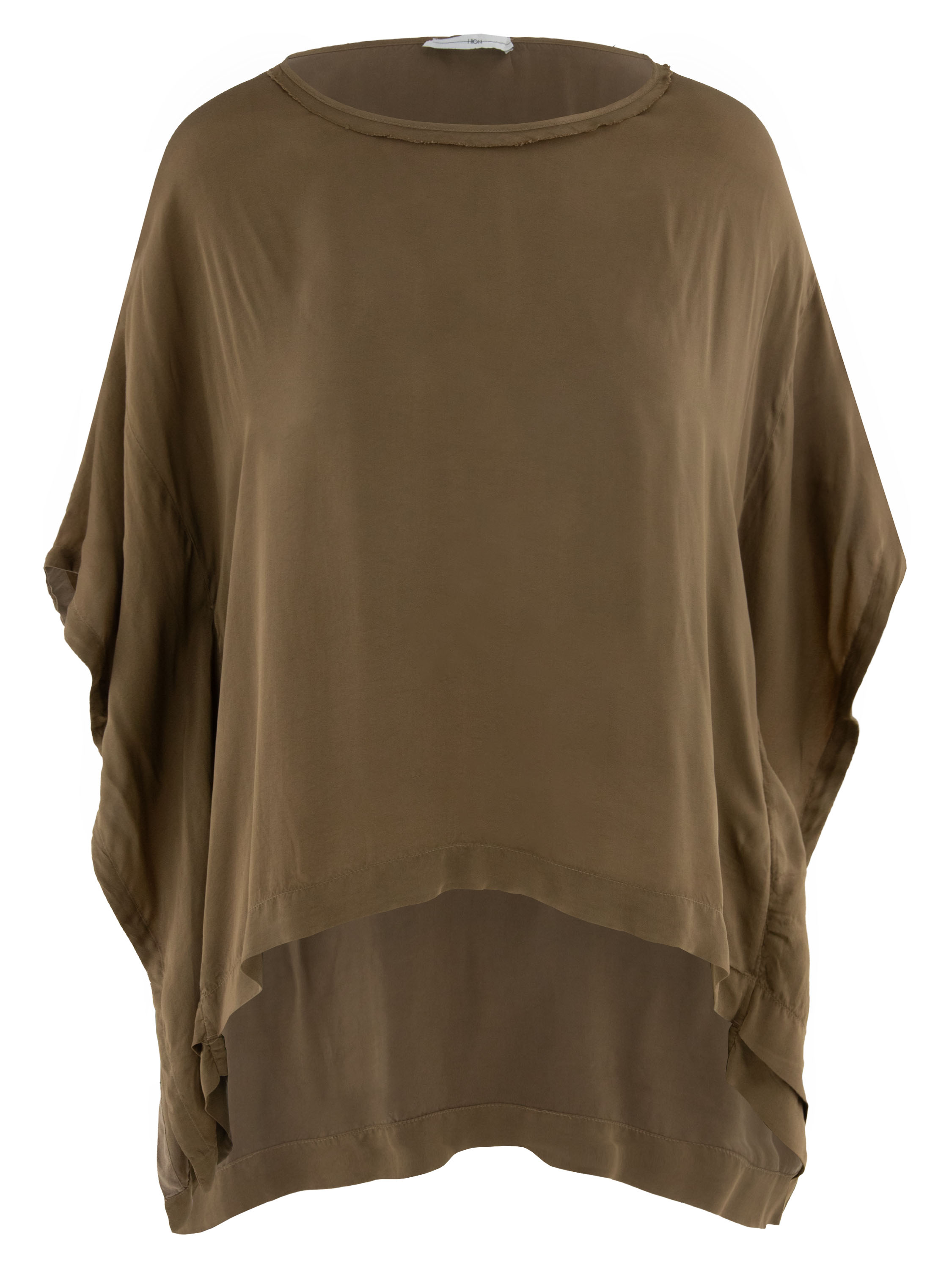 T-shirt de High en satin mat dans une teinte brun chaud. Doté d’un col rond et de manches chauve-souris élégantes, il offre une silhouette fluide et féminine. Ce t-shirt de créateur exclusif peut être lavé à 30 degrés.