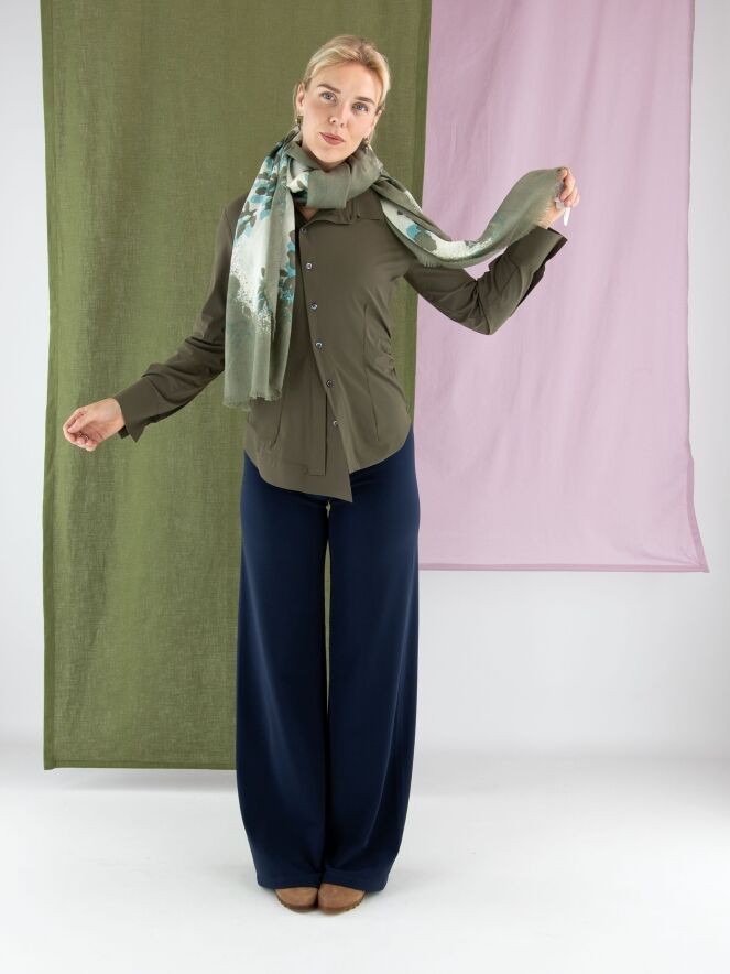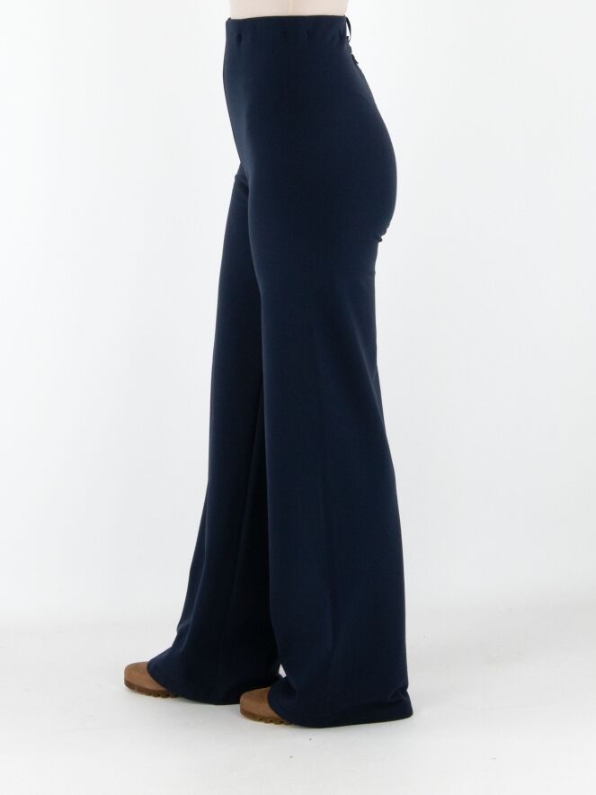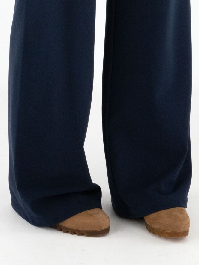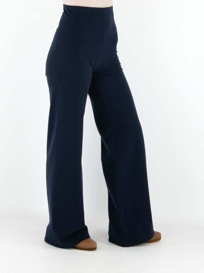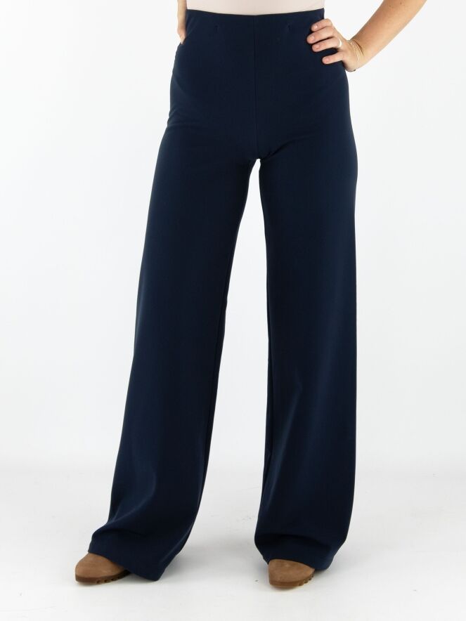 Pantalon de la marque High en bleu nuit. La taille est élastiquée. Le pantalon a une coupe droite et peut être lavé à 30 degrés.