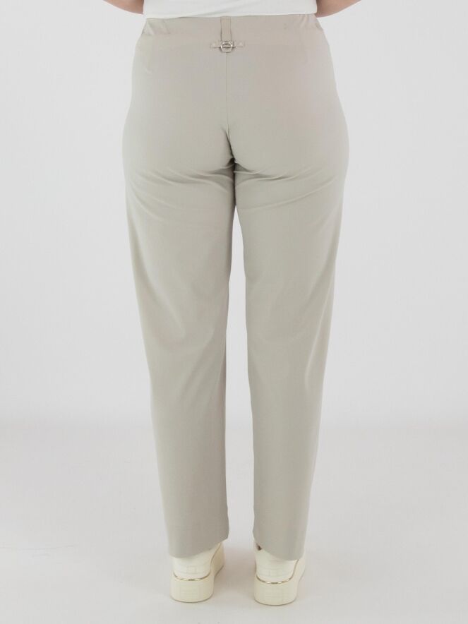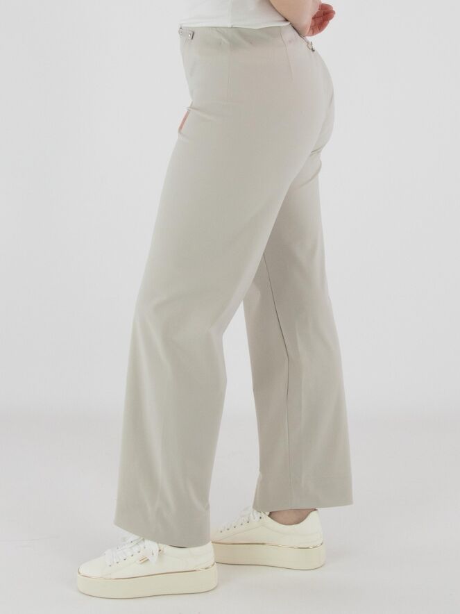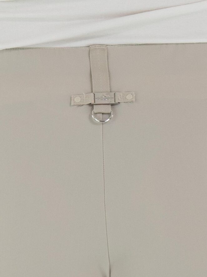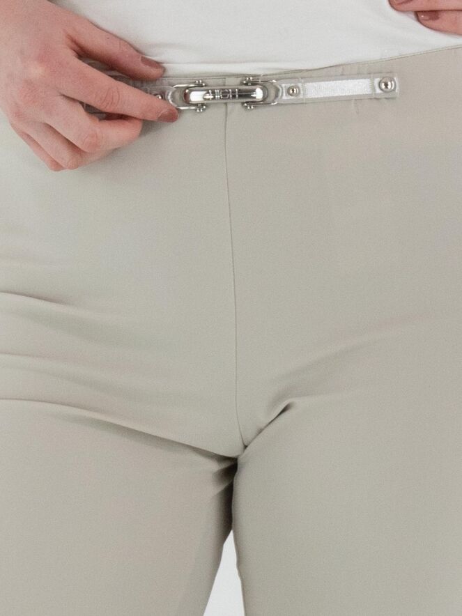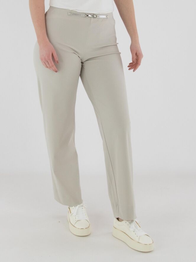 Un pantalon de High dans une teinte écrue. La taille est dotée d’une ceinture élastique avec à l’avant un élément décoratif allongé de couleur argentée. Les jambes sont droites et le pantalon peut être lavé à 30 degrés.
