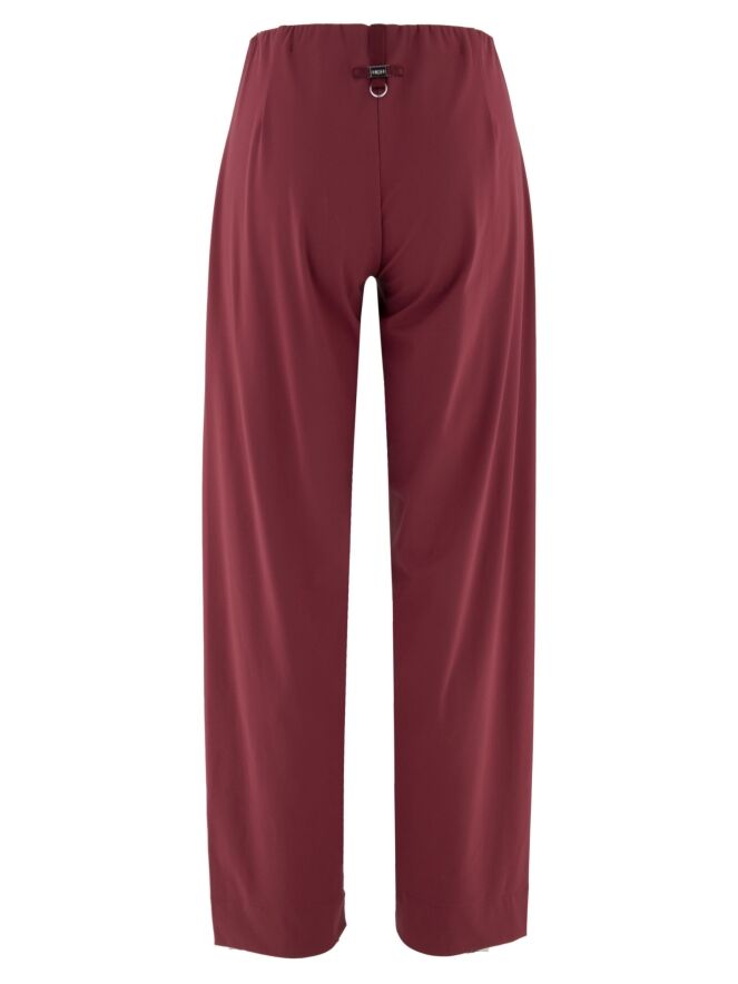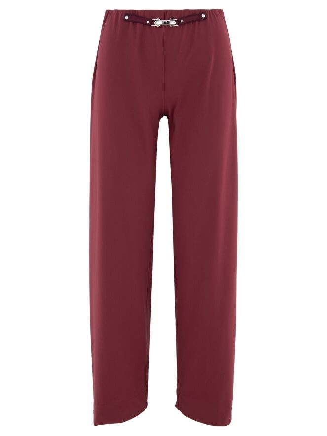 Un pantalon de High en rouge framboise. La taille est dotée d’une ceinture élastique avec à l’avant un élément décoratif allongé argenté. Les jambes sont droites. Ce pantalon peut être lavé à 30 degrés.