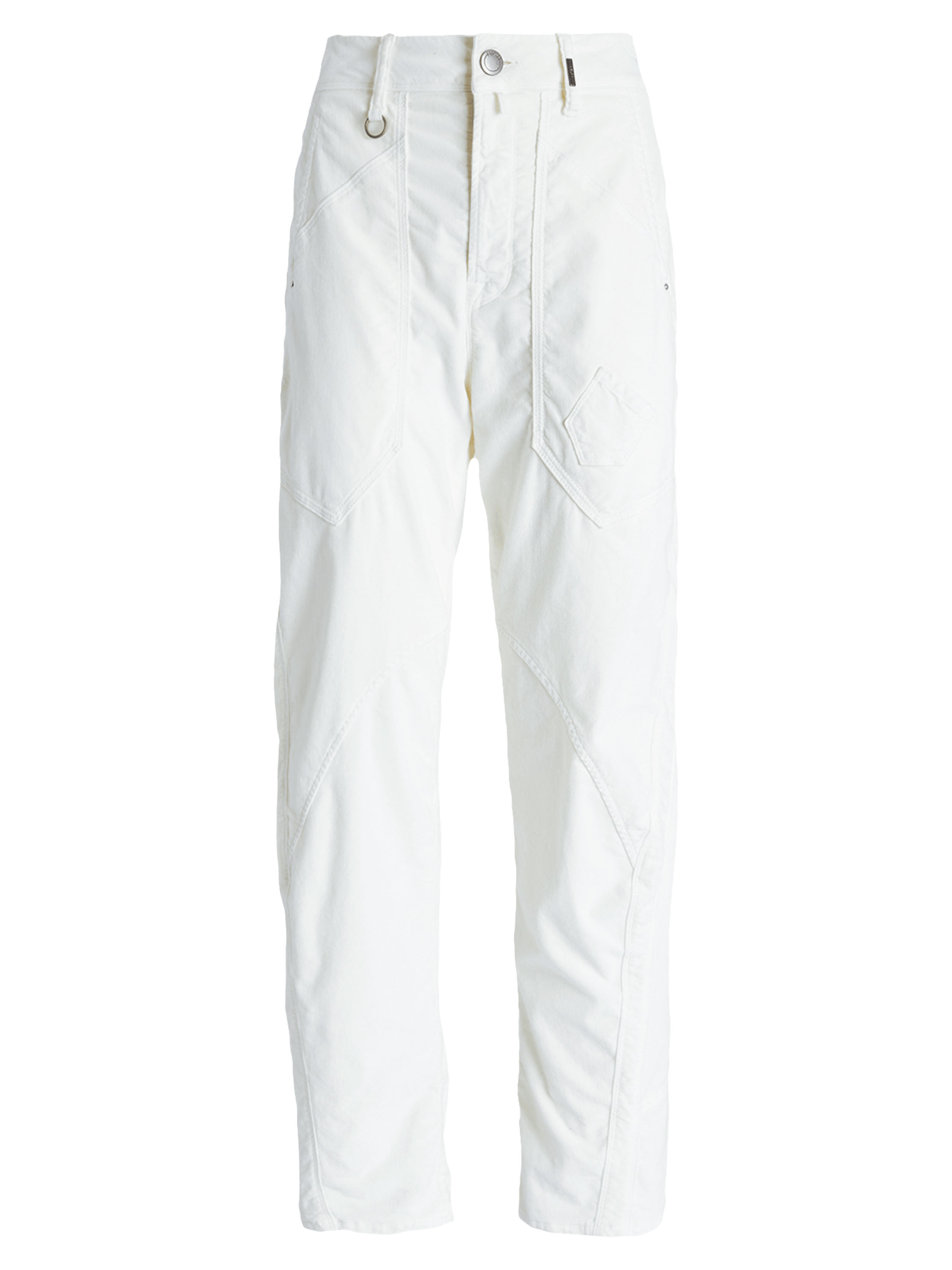 Un pantalon de High en velours de coton doux de couleur blanc cassé. Il est doté de poches fendues, dont l’une, à gauche, agrémentée d’une petite poche décorative supplémentaire. Ce pantalon peut être lavé à 30 degrés.