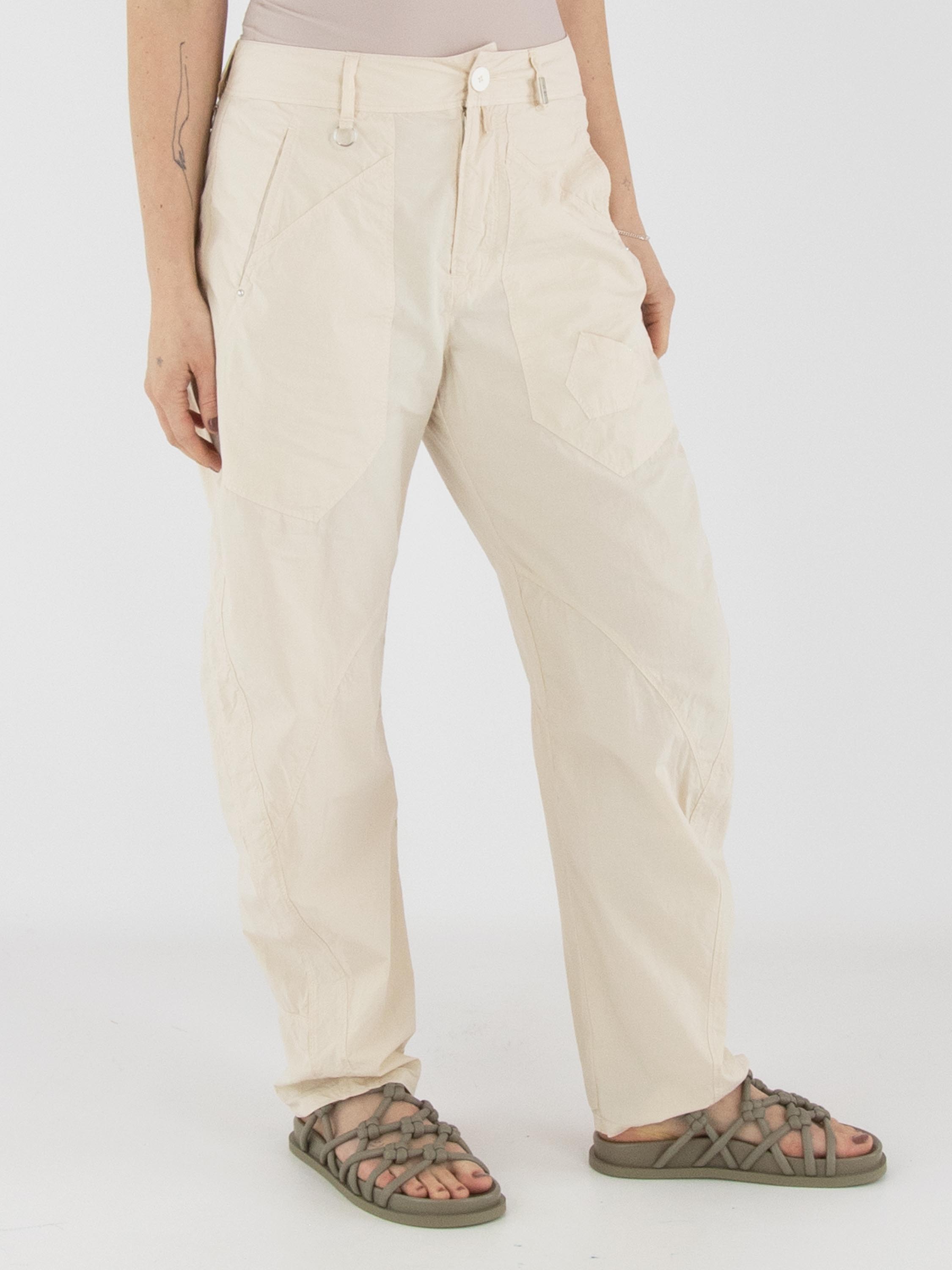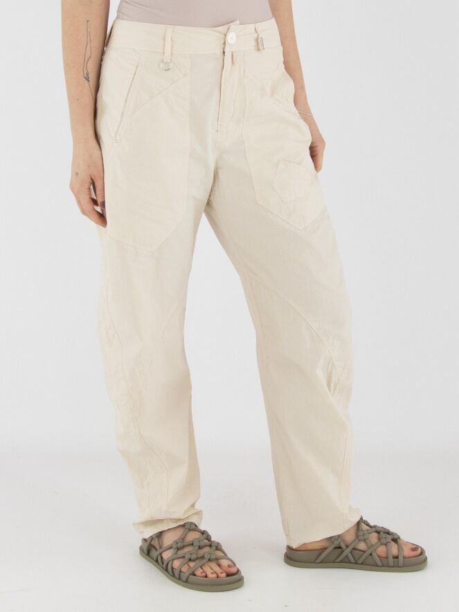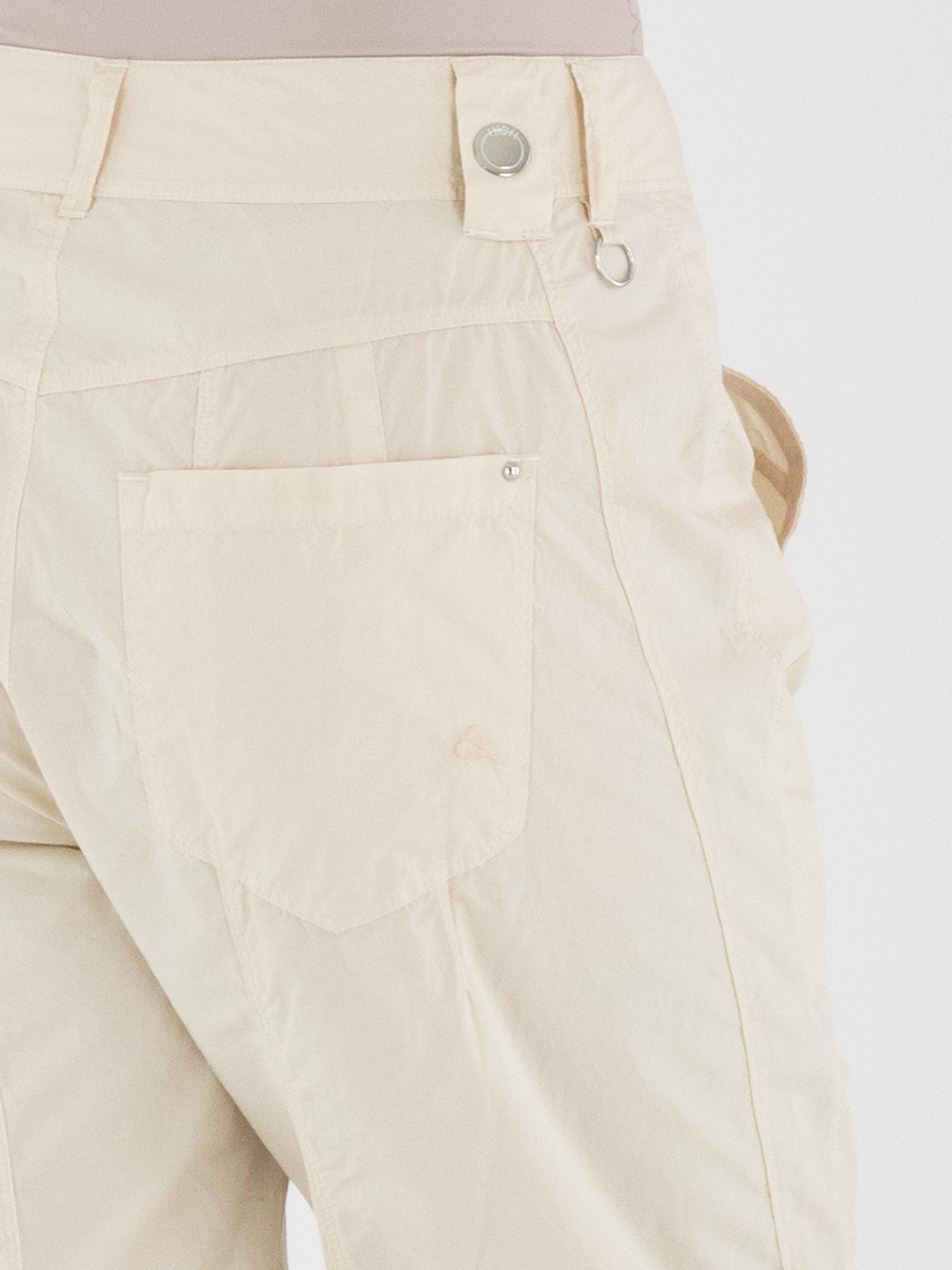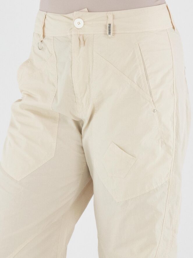 Un pantalon de High en coton estival dans une teinte beige. Une petite poche décorative avec une couture diagonale est placée sur la poche avant gauche. Le pantalon possède des poches latérales et peut être lavé à 30 degrés.