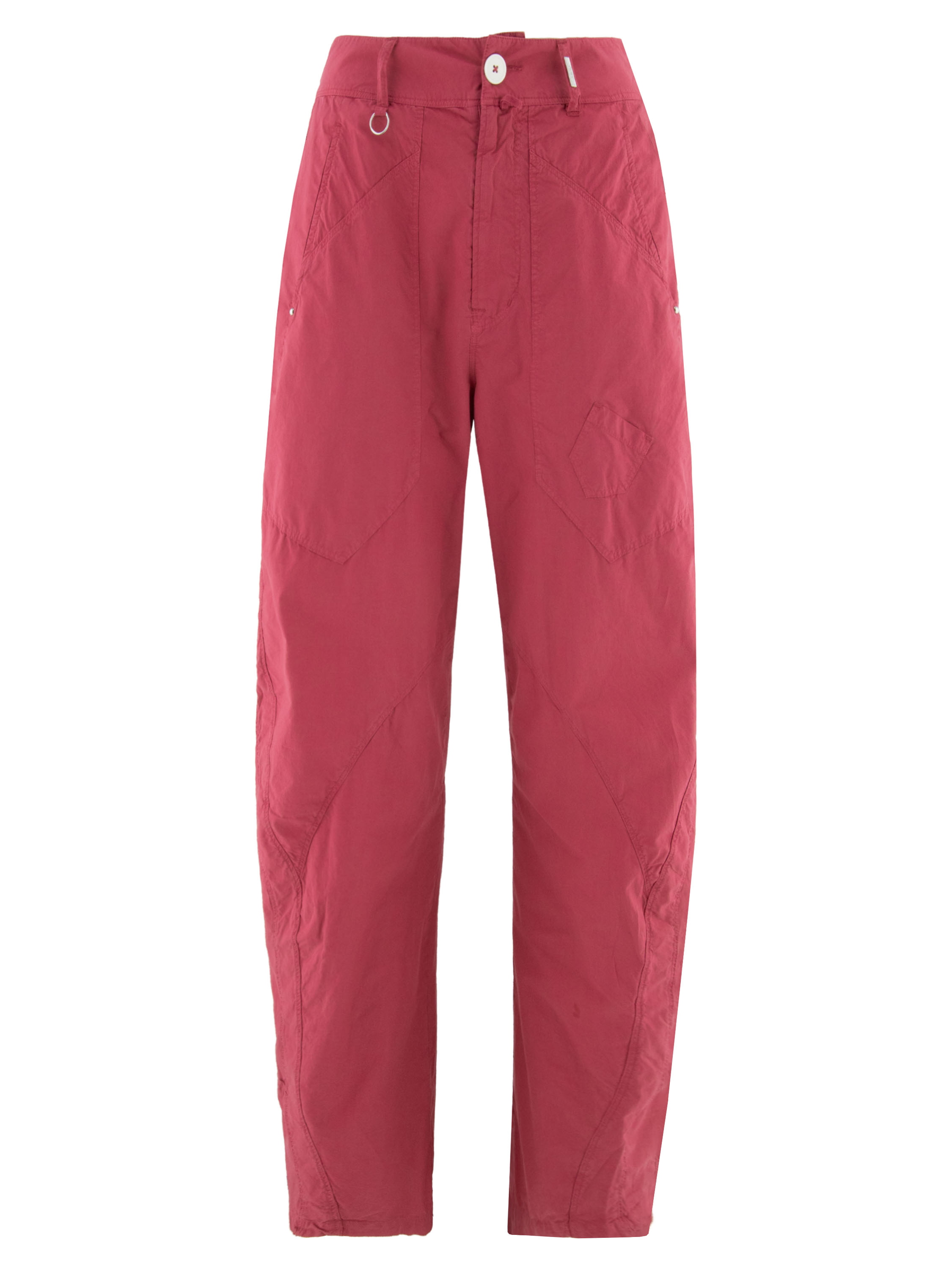 Pantalon de High en coton estival de couleur rouge framboise. Plusieurs coutures diagonales apportent une touche dynamique et contemporaine au modèle. Doté de poches latérales, ce pantalon de créateur exclusif peut être lavé à 30 degrés.
