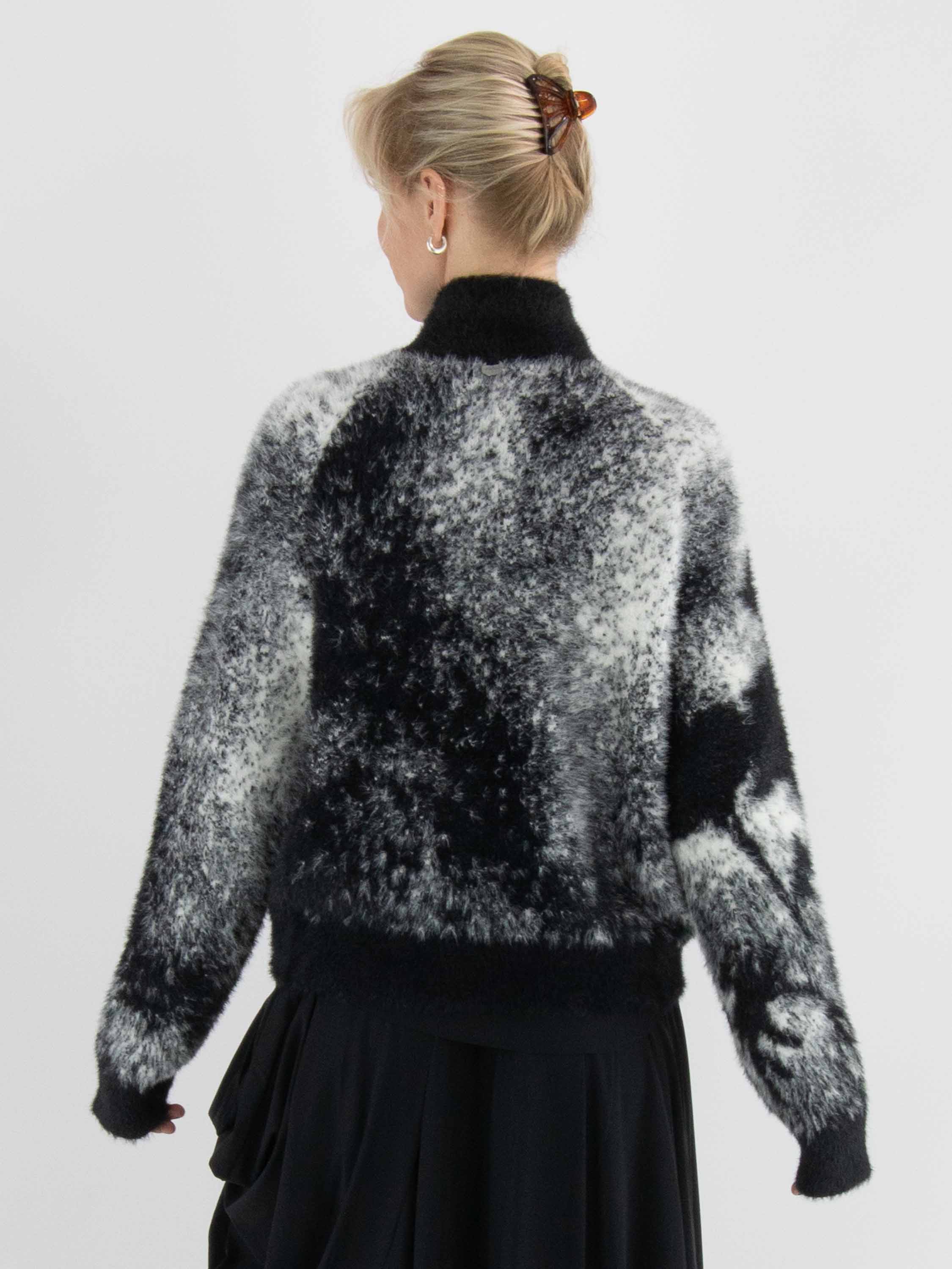 Gilet de la marque High avec un imprimé graphique en noir et blanc cassé. Le gilet présente un col montant de type turtle et une fermeture zippée. Le tissu est extensible et doit être lavé à la main.