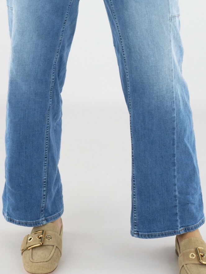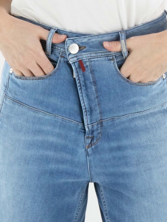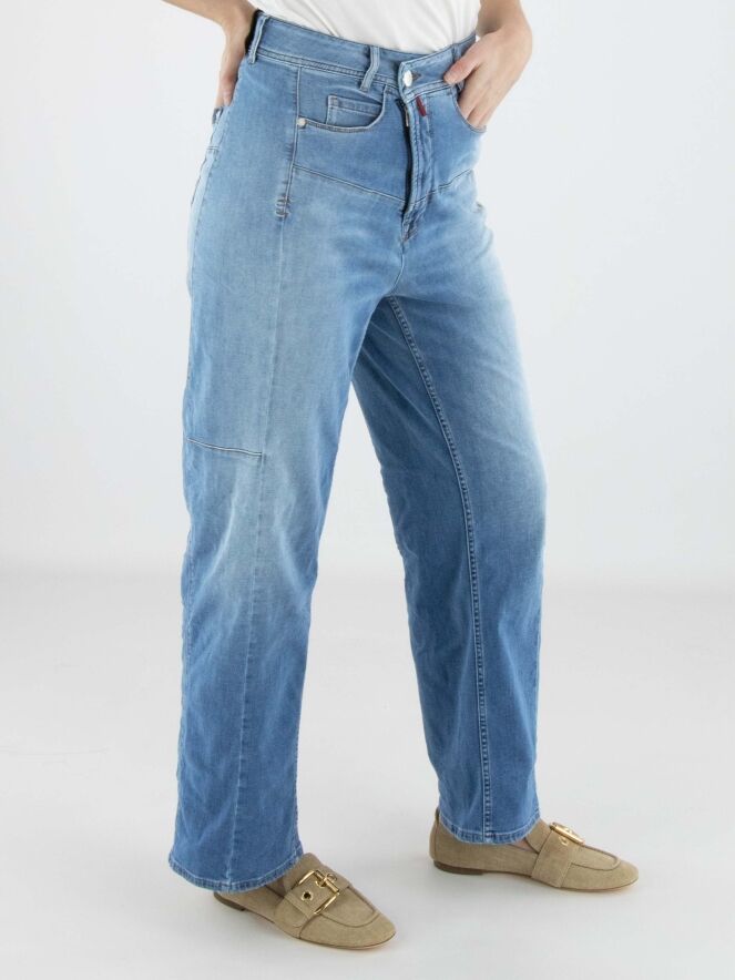 Jean taille haute de High dans une teinte denim used. Ce modèle classique à 5 poches présente une couture de pince subtile au-dessus des genoux sur l’extérieur de la jambe, soulignant élégamment la silhouette. Ce jean de créateur exclusif peut être lavé à 30 degrés.