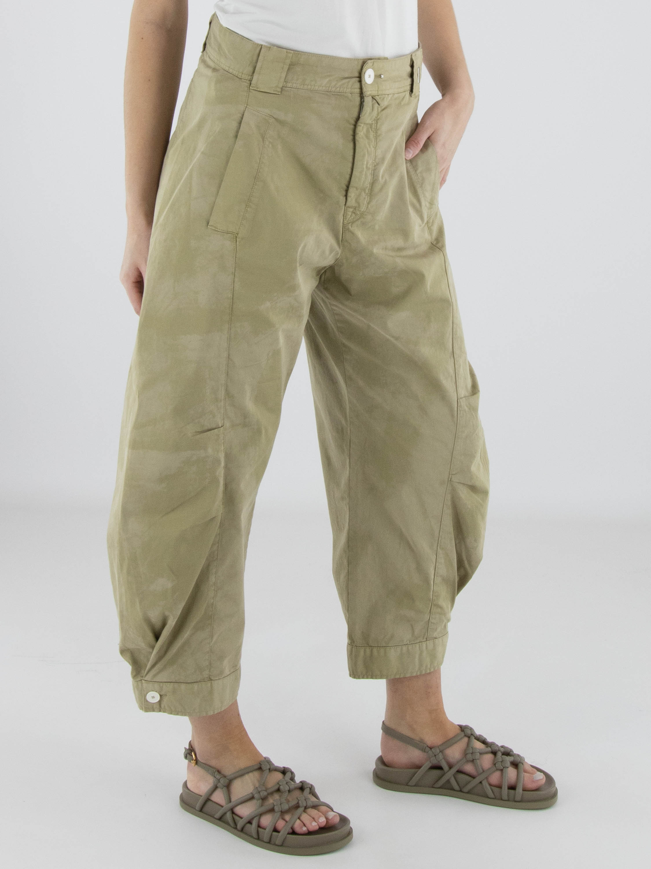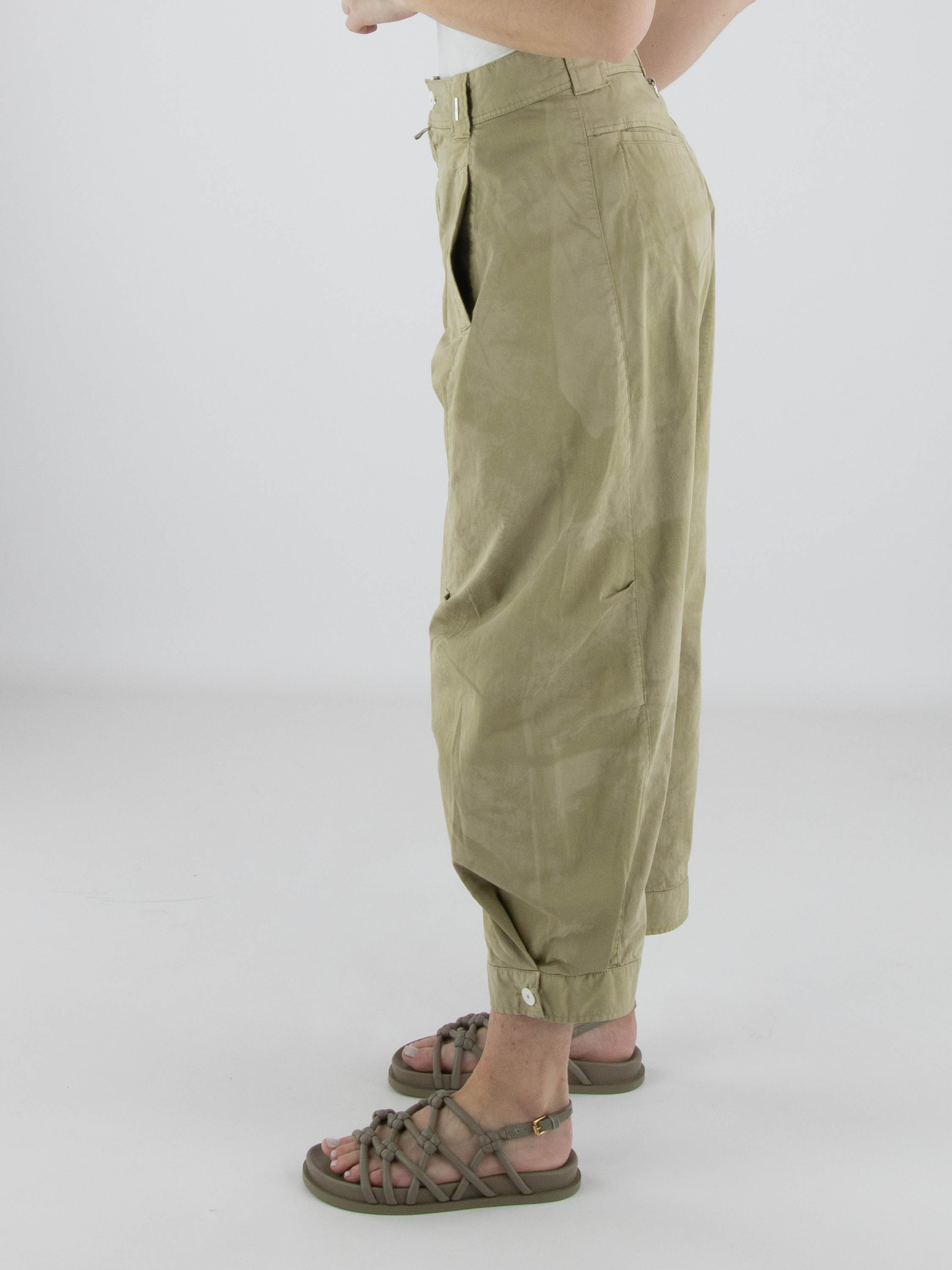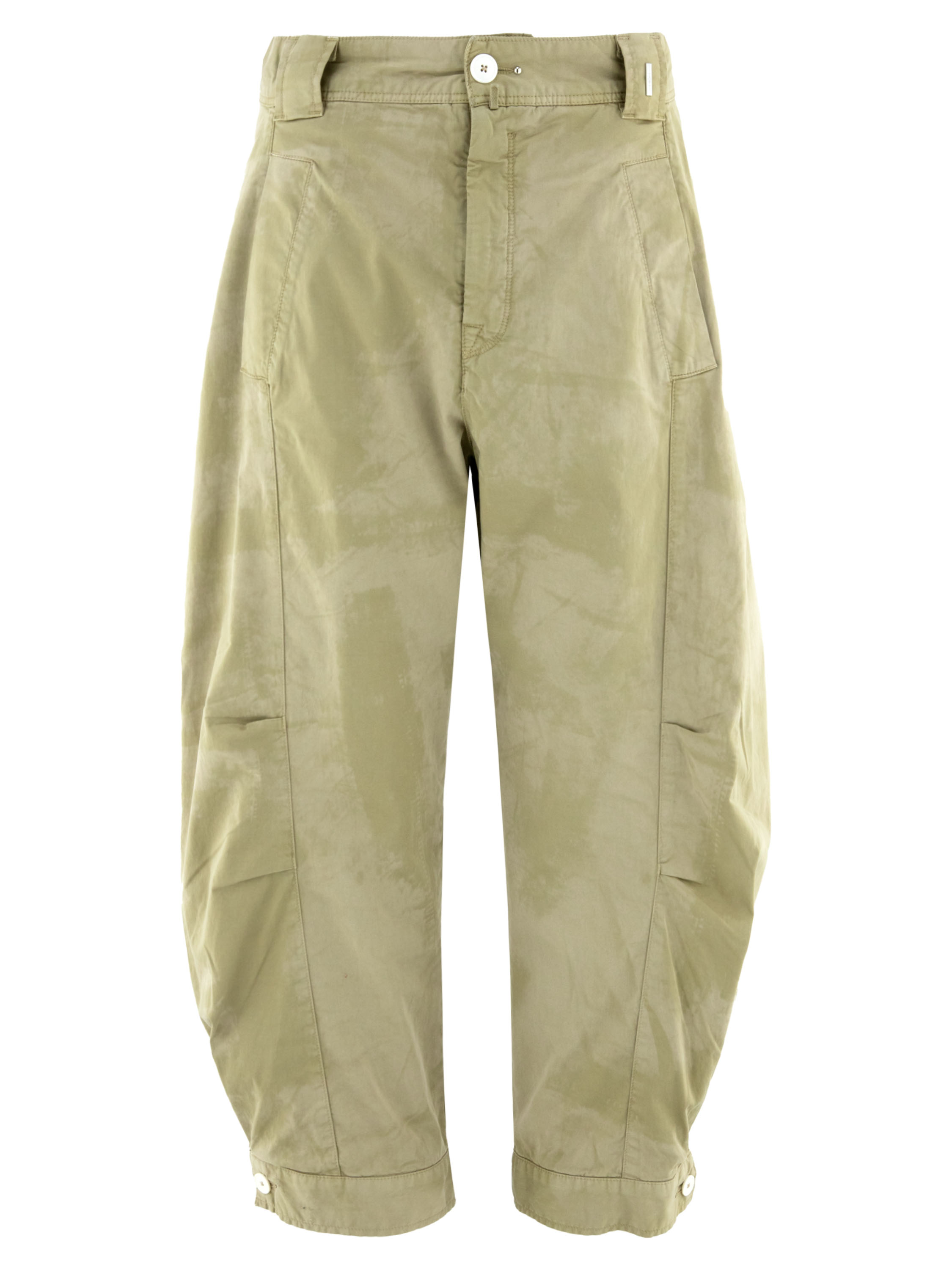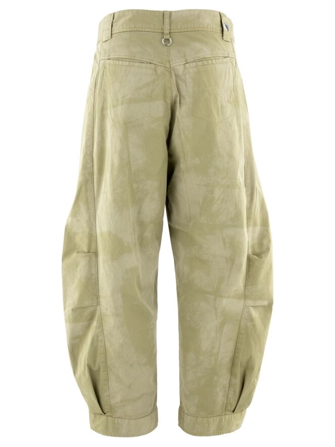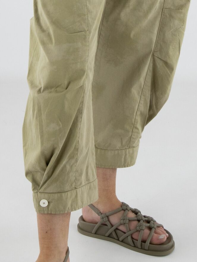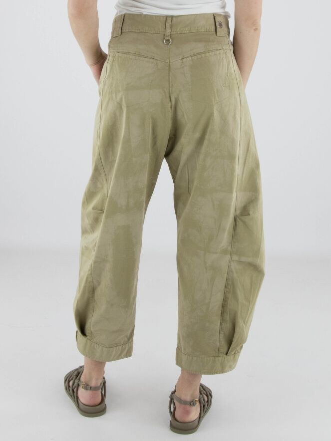 Pantalon de High avec un imprimé batik ton sur ton dans plusieurs nuances de vert olive. De courtes coutures de pince au niveau des genoux structurent subtilement la silhouette. Les jambes se resserrent légèrement vers le bas et sont ornées d’un bouton blanc décoratif à l’ourlet. Doté de poches latérales, ce pantalon de créateur exclusif peut être lavé à 30 degrés.