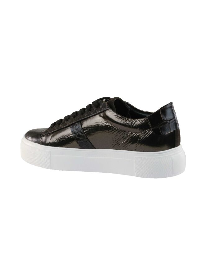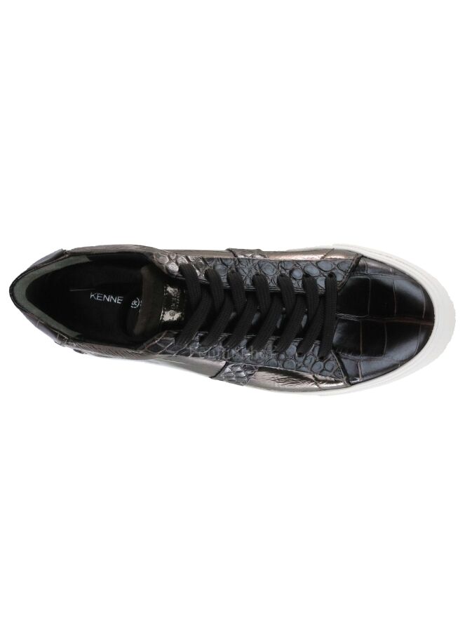 Sneaker de la marque Kennel & Schmenger, de couleur bronze. La chaussure présente un aspect croco de couleur marron moka sur l'avant-pied, le talon et le long des lacets. Sa semelle sportive est de couleur blanche. Semelle intérieure amovible. Intérieur doublé cuir.