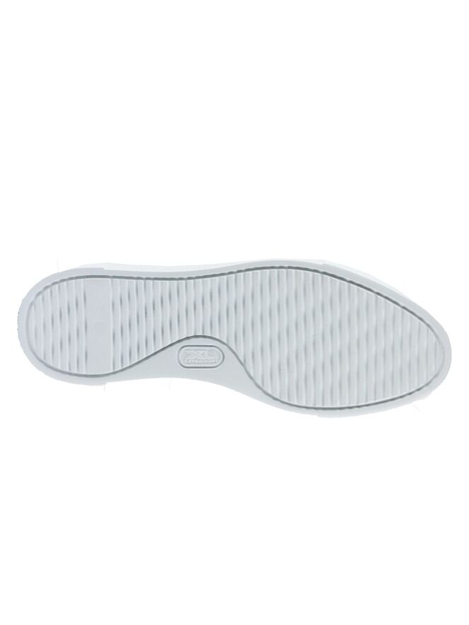 Sneaker basse de la marque Kennel & Schmenger, imprimée dans un motif safari zébré de multiples nuances de chamois et de marron. Le nez, le talon et les lacets sont en cuir blanc. La semelle de 3 cm est également de couleur blanche. La chaussure a une semelle intérieure amovible et est doublée de cuir à l'intérieur.