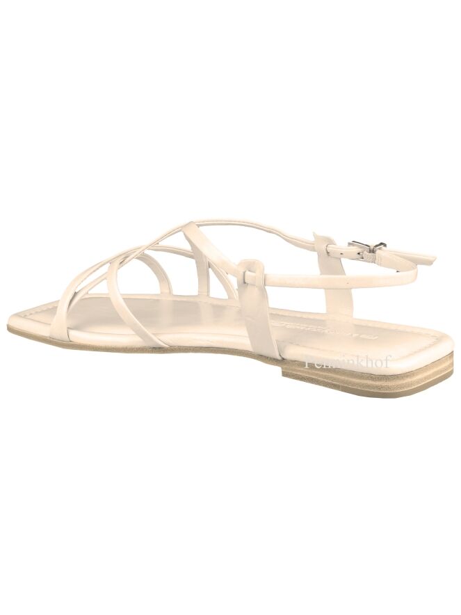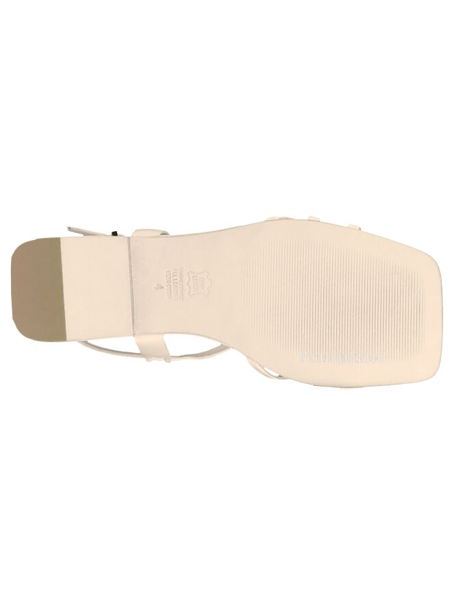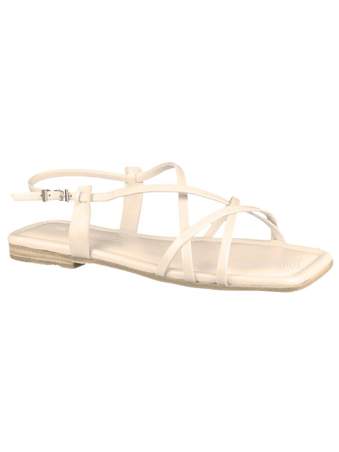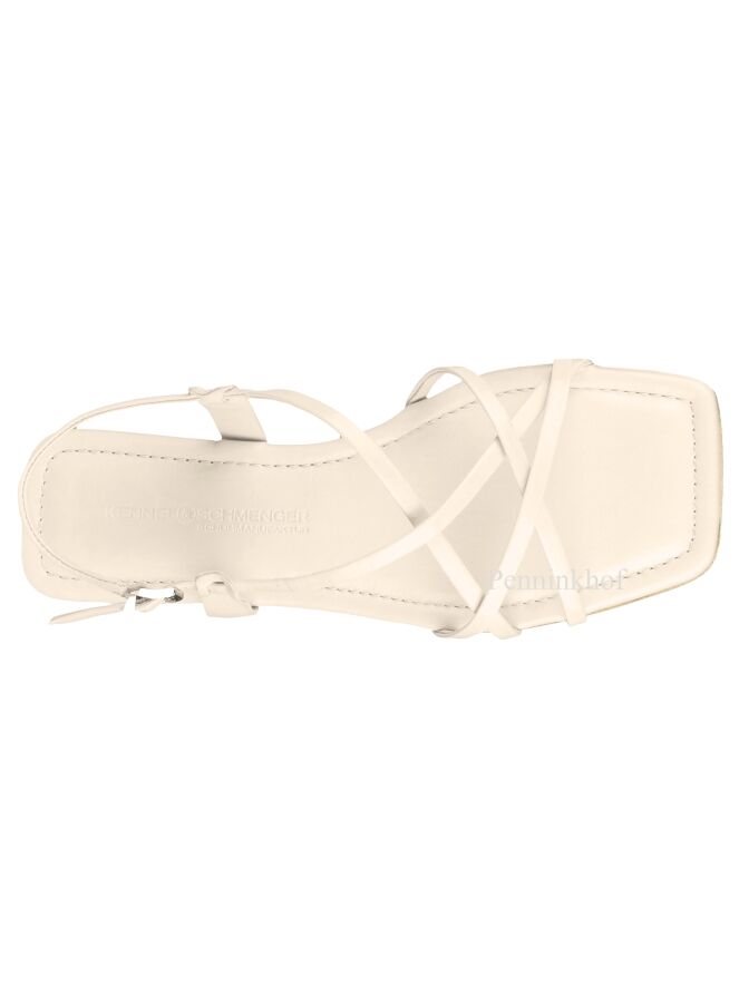 Sandale de la marque Kennel & Schmenger, de couleur blanc crème. Plusieurs sangles sont croisées sur l'avant du pied, celle du talon est réglable. La sandale présente un nez et un arrière carrés.