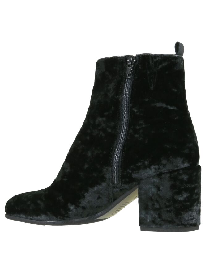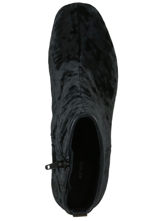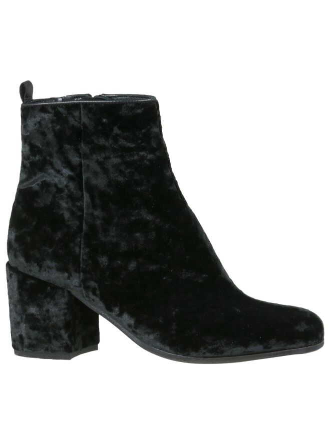 Bottine en tissu de velours frappé noir, de la marque Kennel & Schmenger. Son nez est carré arrondi. Une fermeture Eclair intérieur permet l\'enfilage. Le talon est recouvert comme la chaussure. L\'intérieur est doublé de cuir.