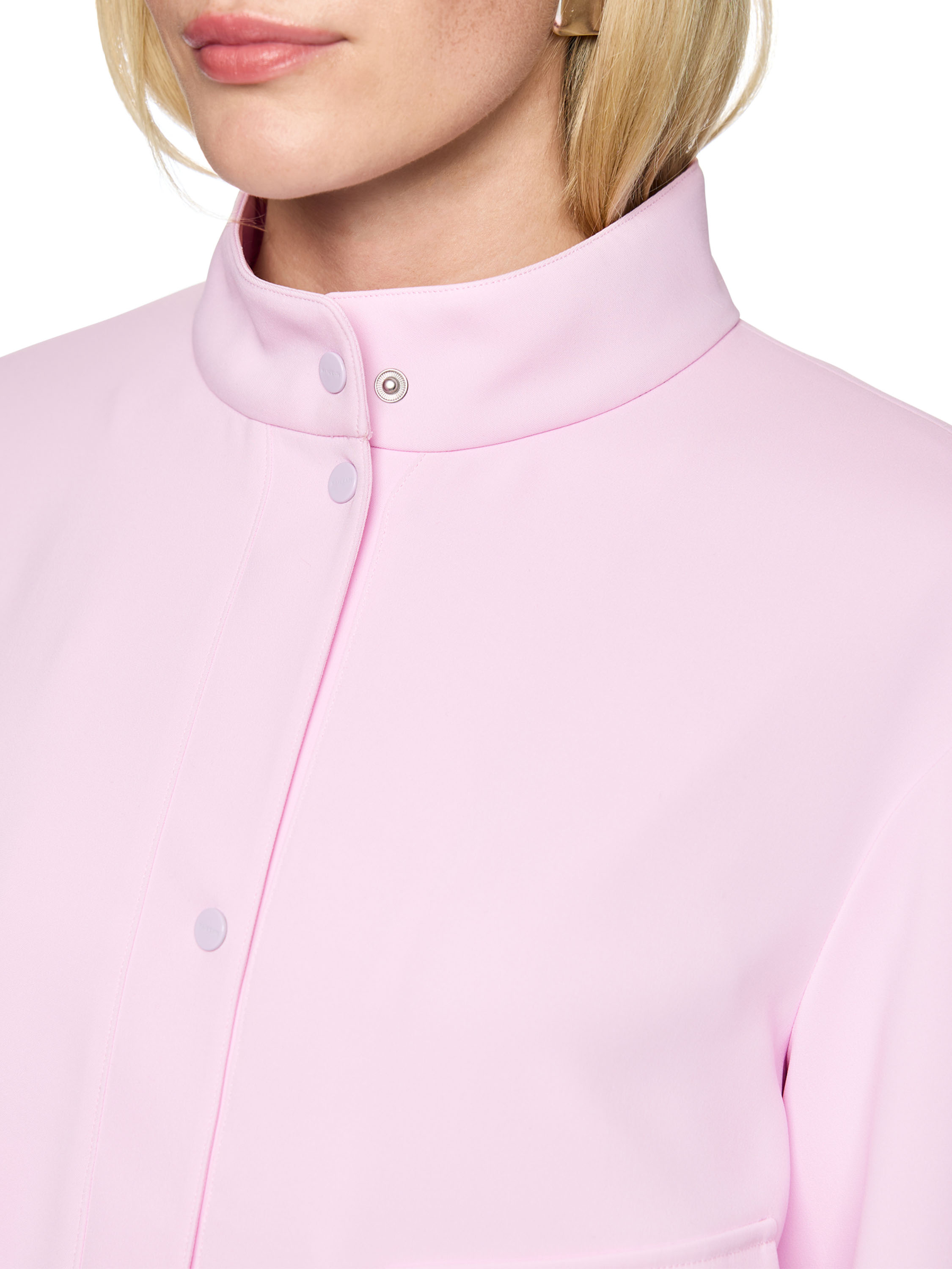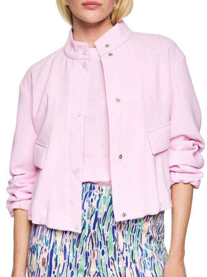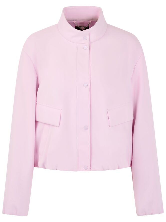 Un blazer court de Marc Cain dans une teinte rose vif. La fermeture est réalisée avec cinq boutons-pression. En bas et aux extrémités des manches longues se trouve un bord élastiqué finement plissé. Les poches latérales au niveau de la taille sont agrémentées de rabats décoratifs. Ce blazer peut être lavé à 30 degrés.