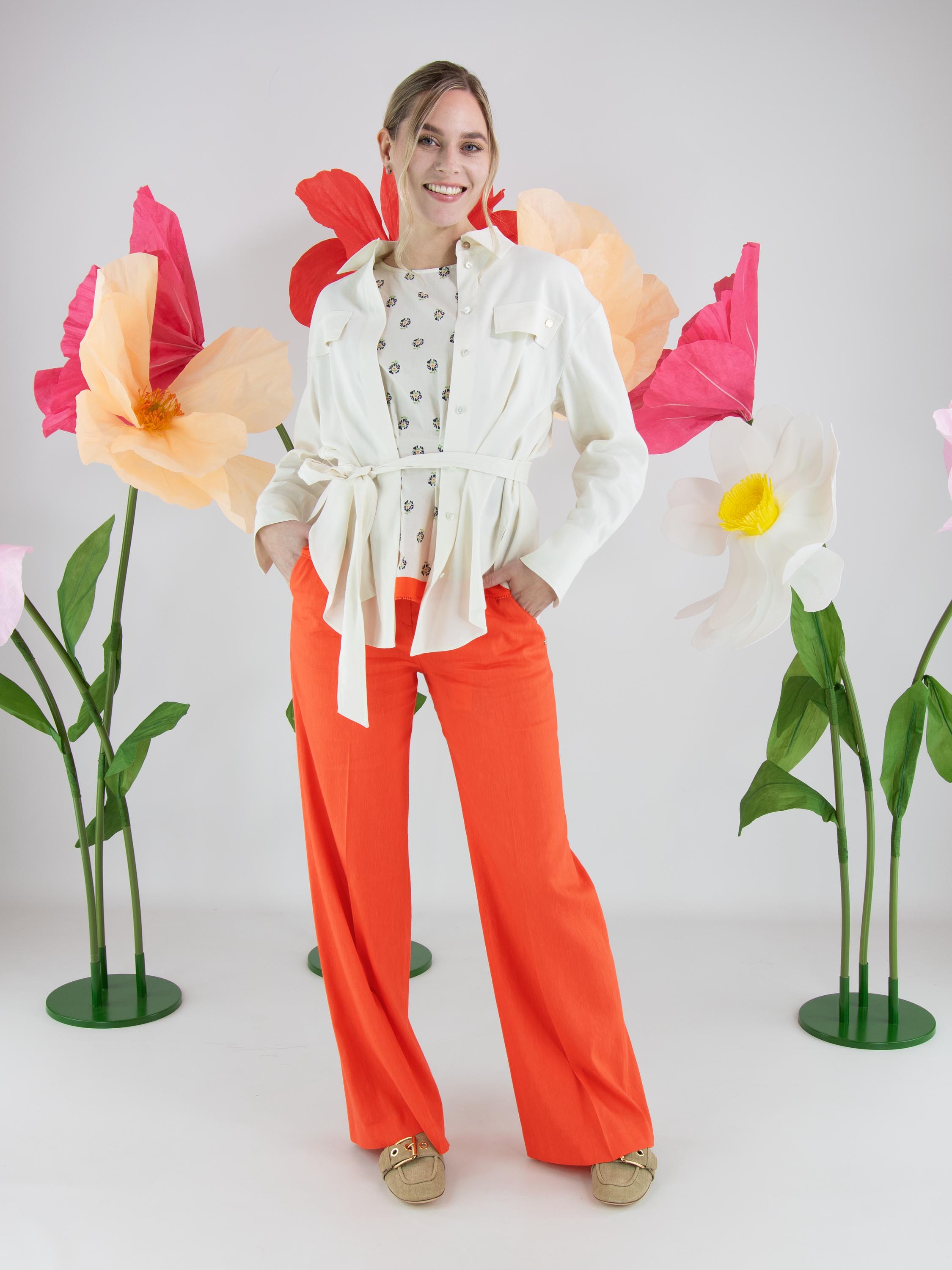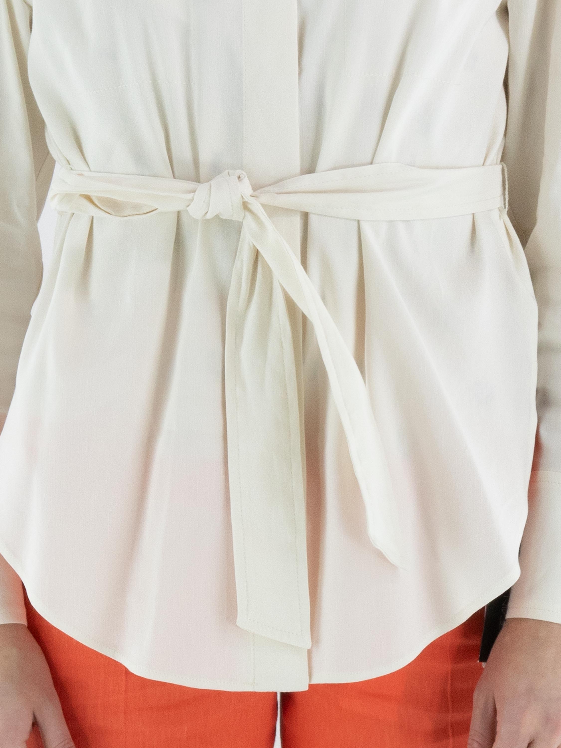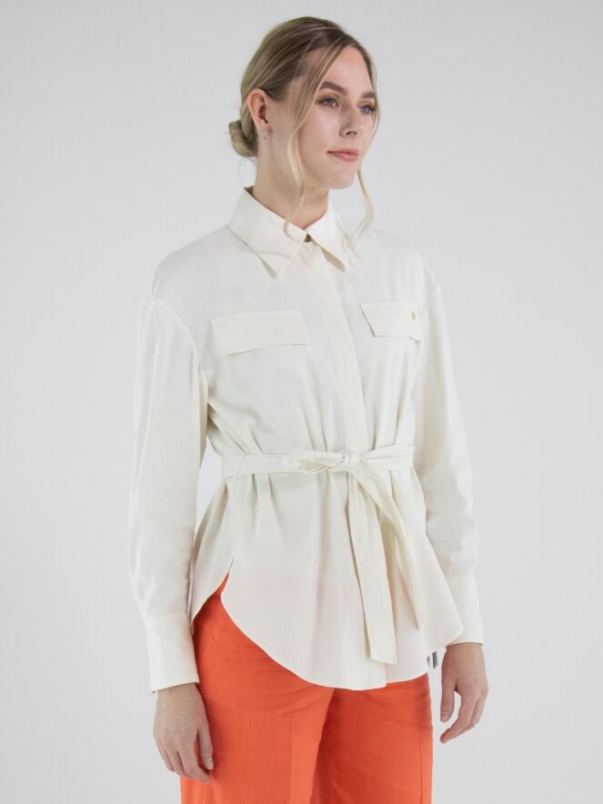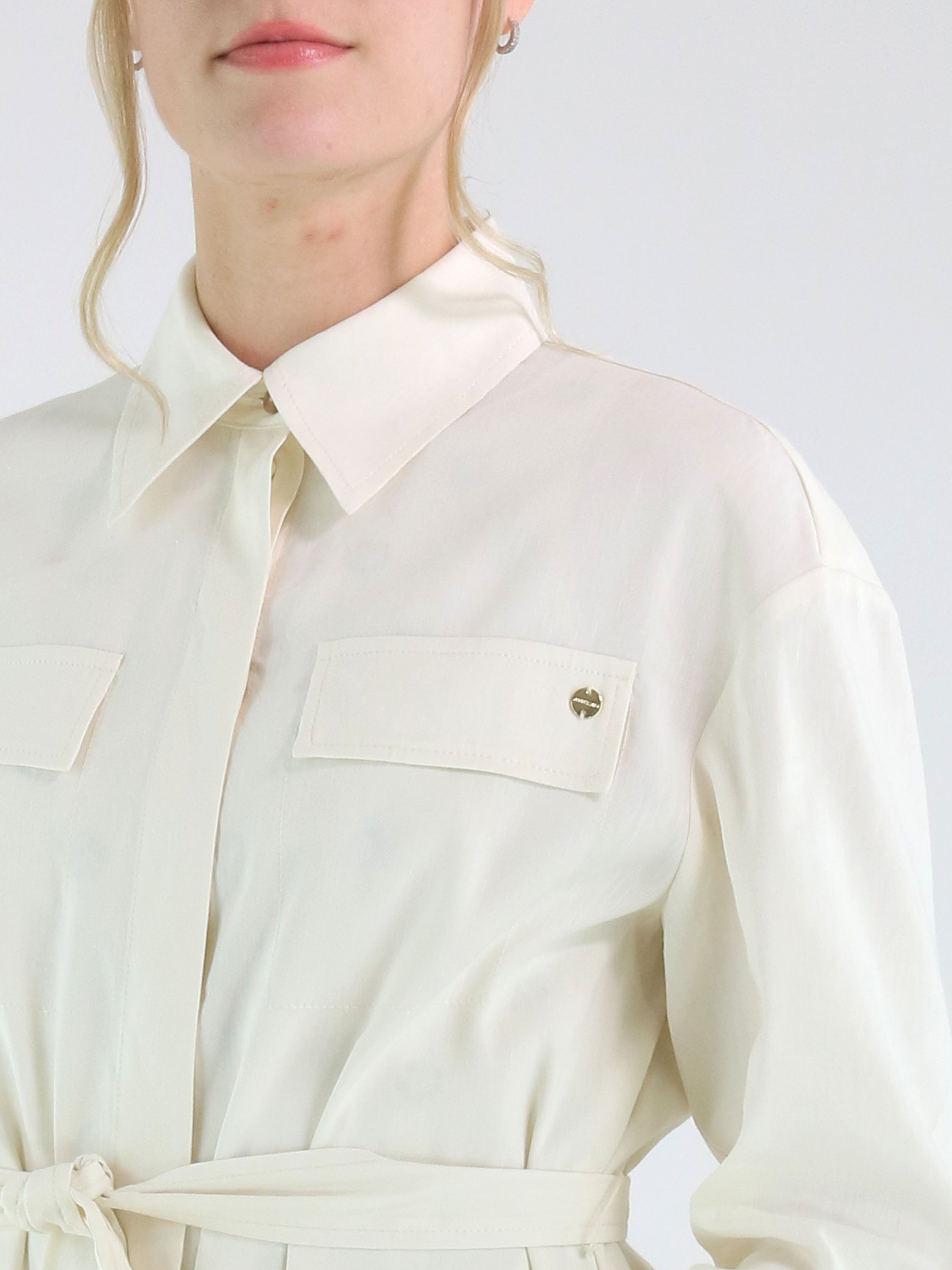 Blouse longue de Marc Cain dans une élégante teinte blanc crème. Une ceinture assortie à la taille permet de souligner la silhouette avec féminité. Des rabats décoratifs de poches poitrine ornent le devant. Au dos, deux plis centraux à hauteur des omoplates assurent aisance et belle fluidité. La blouse est dotée d’une fermeture boutonnée dissimulée et d’un ourlet arrondi vers les côtés. Cette blouse peut être lavée à 30 degrés.
