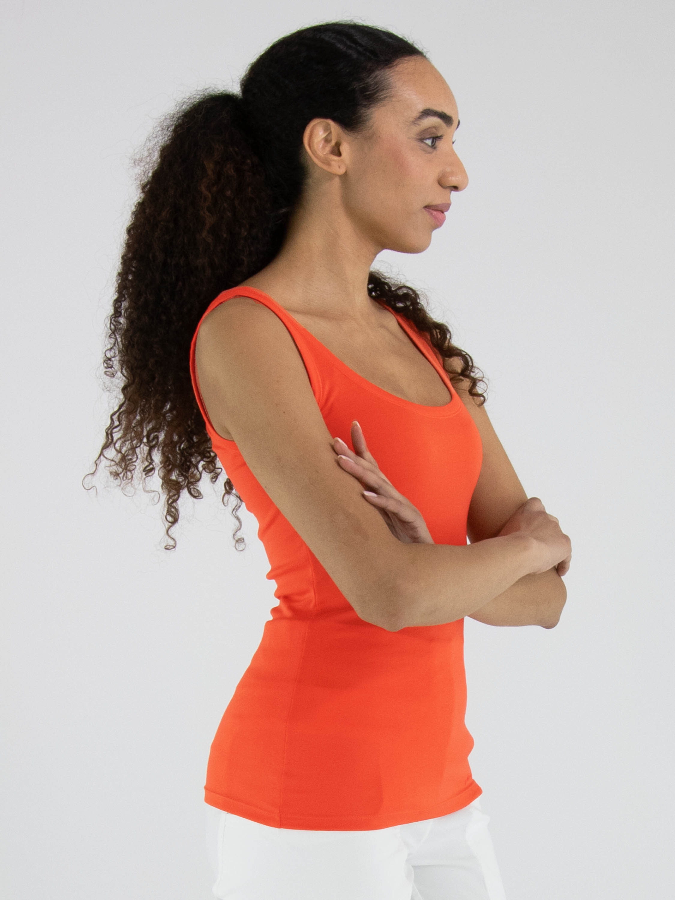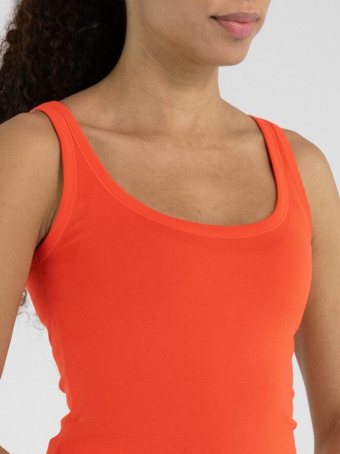 Top de Marc Cain dans une teinte corail éclatante. Doté d’un col rond généreusement coupé, il offre une allure moderne et décontractée. Ce top peut être lavé à 30 degrés.