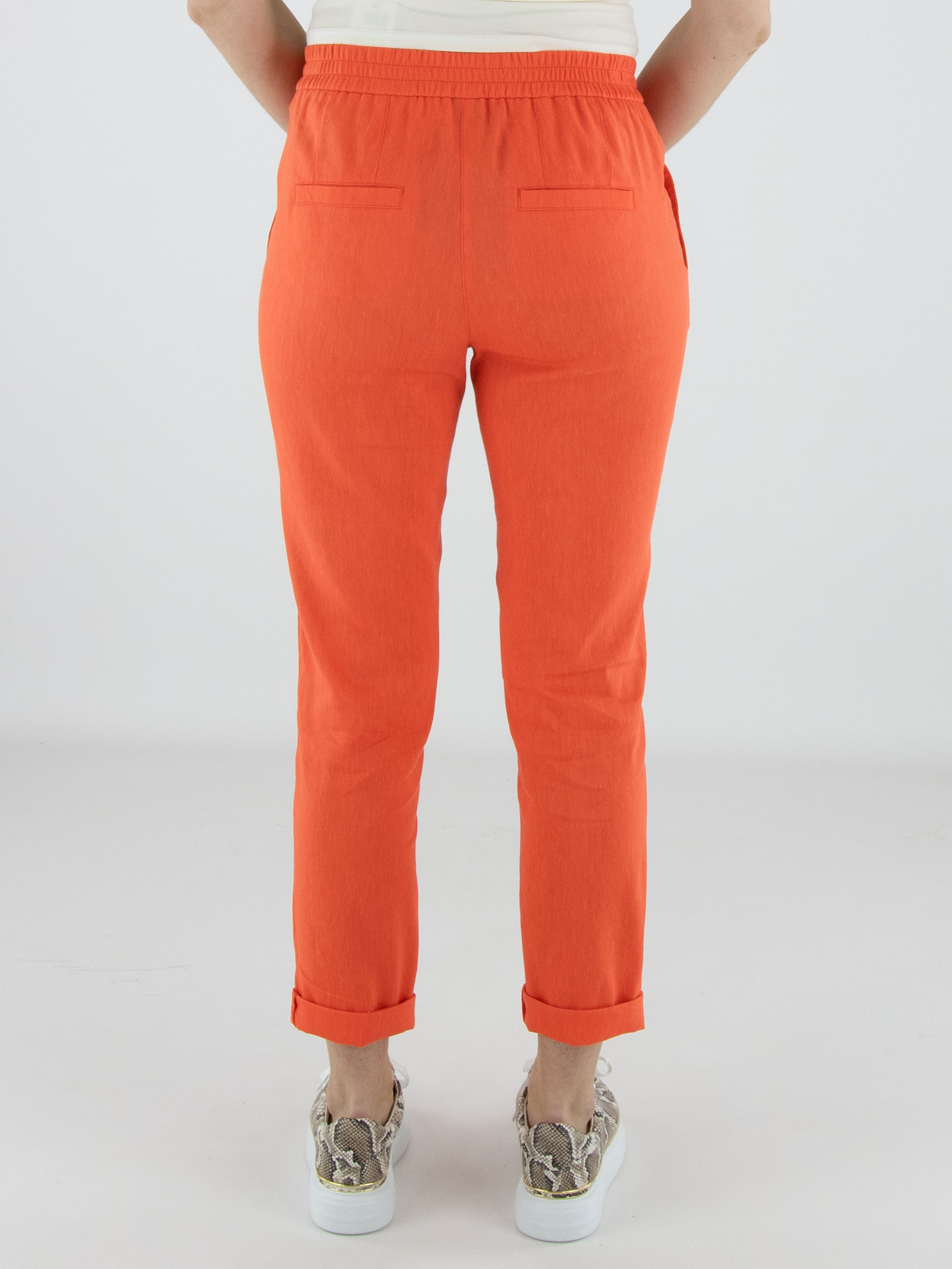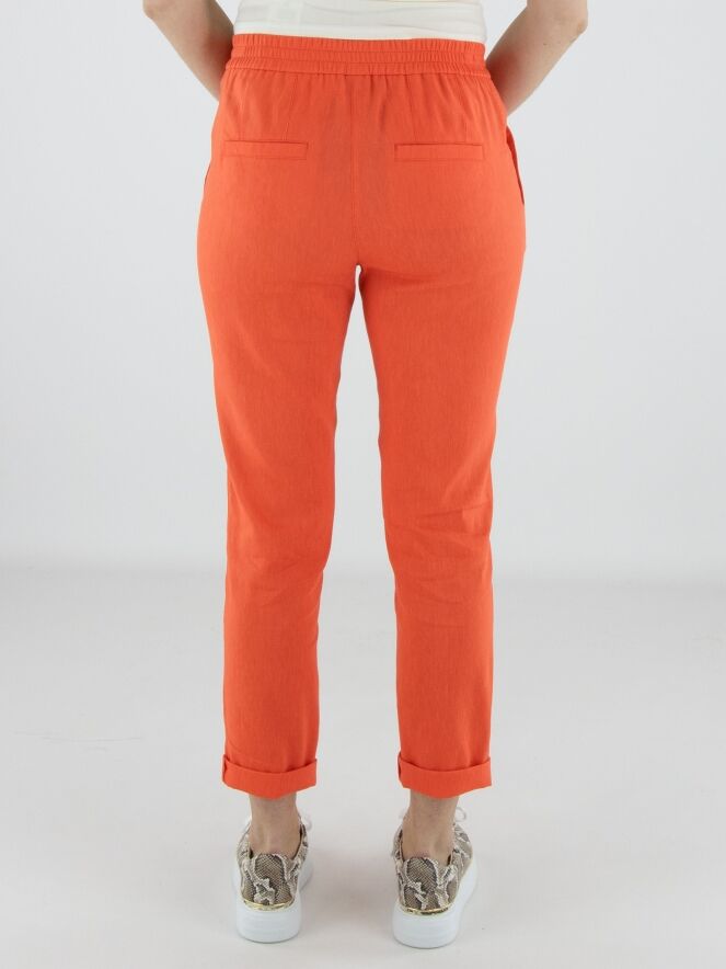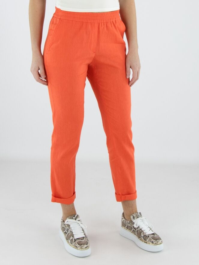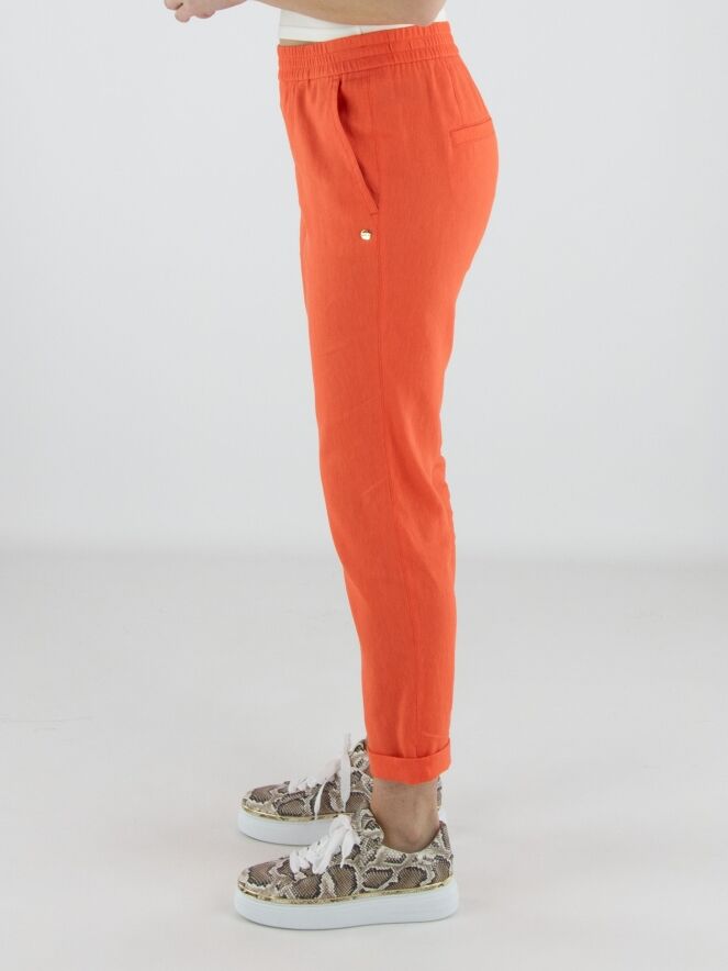 Pantalon de Marc Cain dans une teinte corail éclatante. La large ceinture élastique finement côtelée assure un ajustement confortable et contemporain. Doté de poches latérales et d’un petit revers au bas des jambes, il présente une finition moderne. Ce pantalon peut être lavé à 30 degrés.
