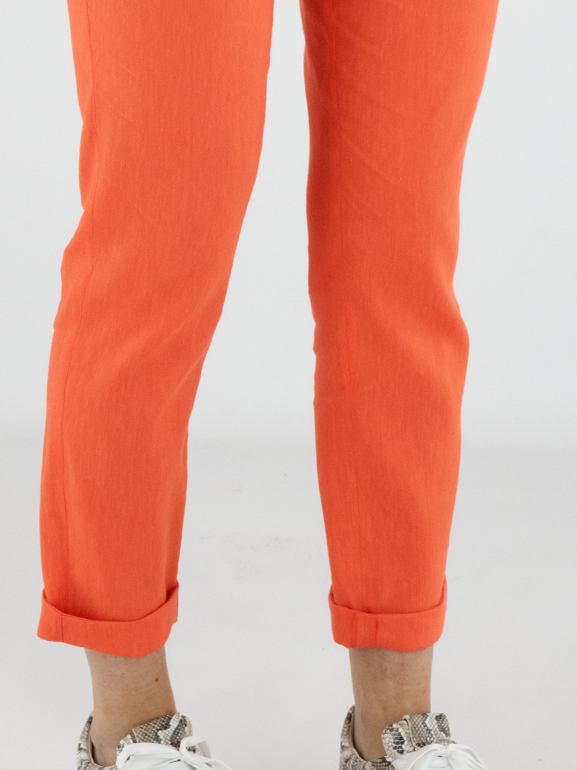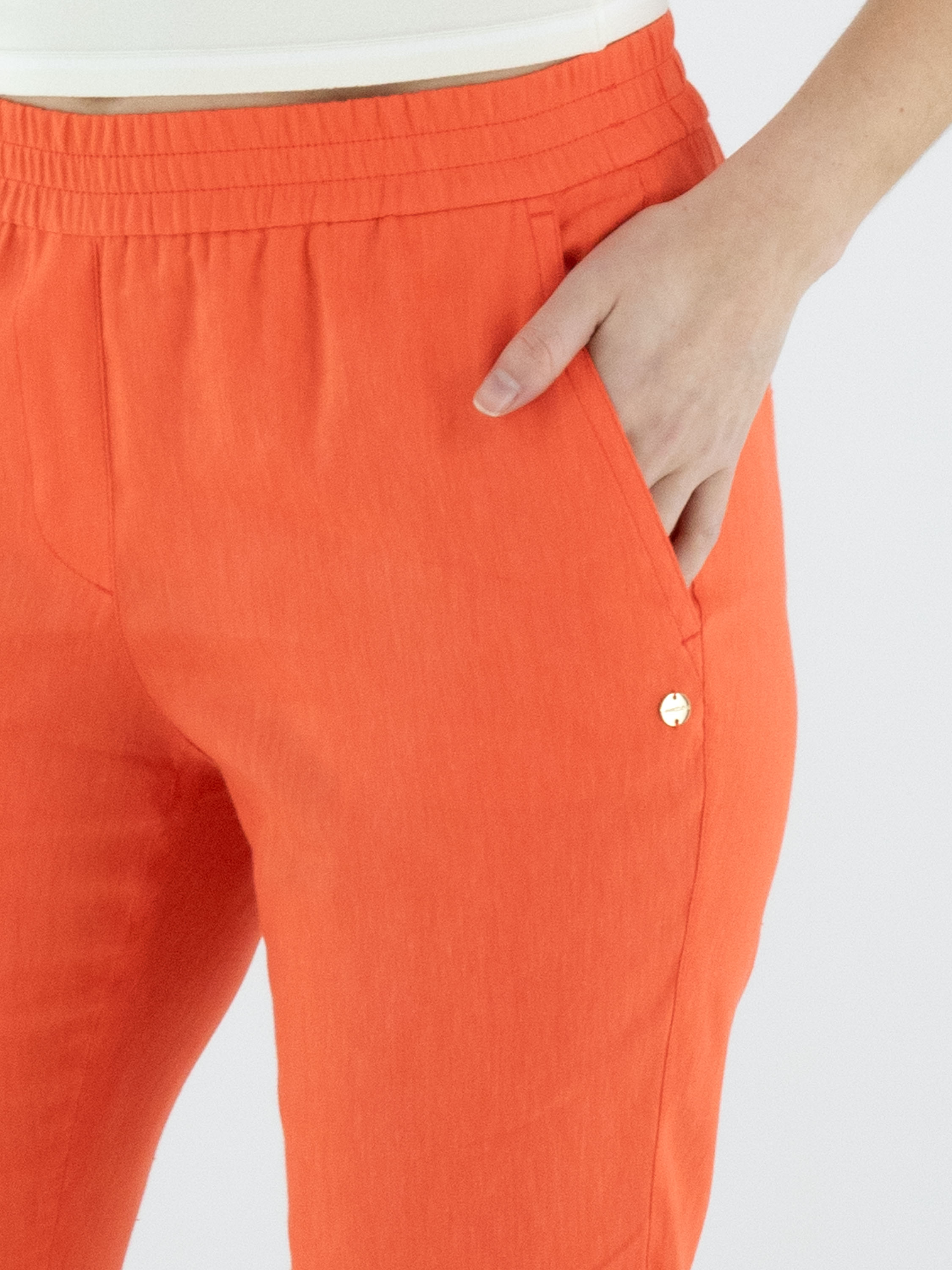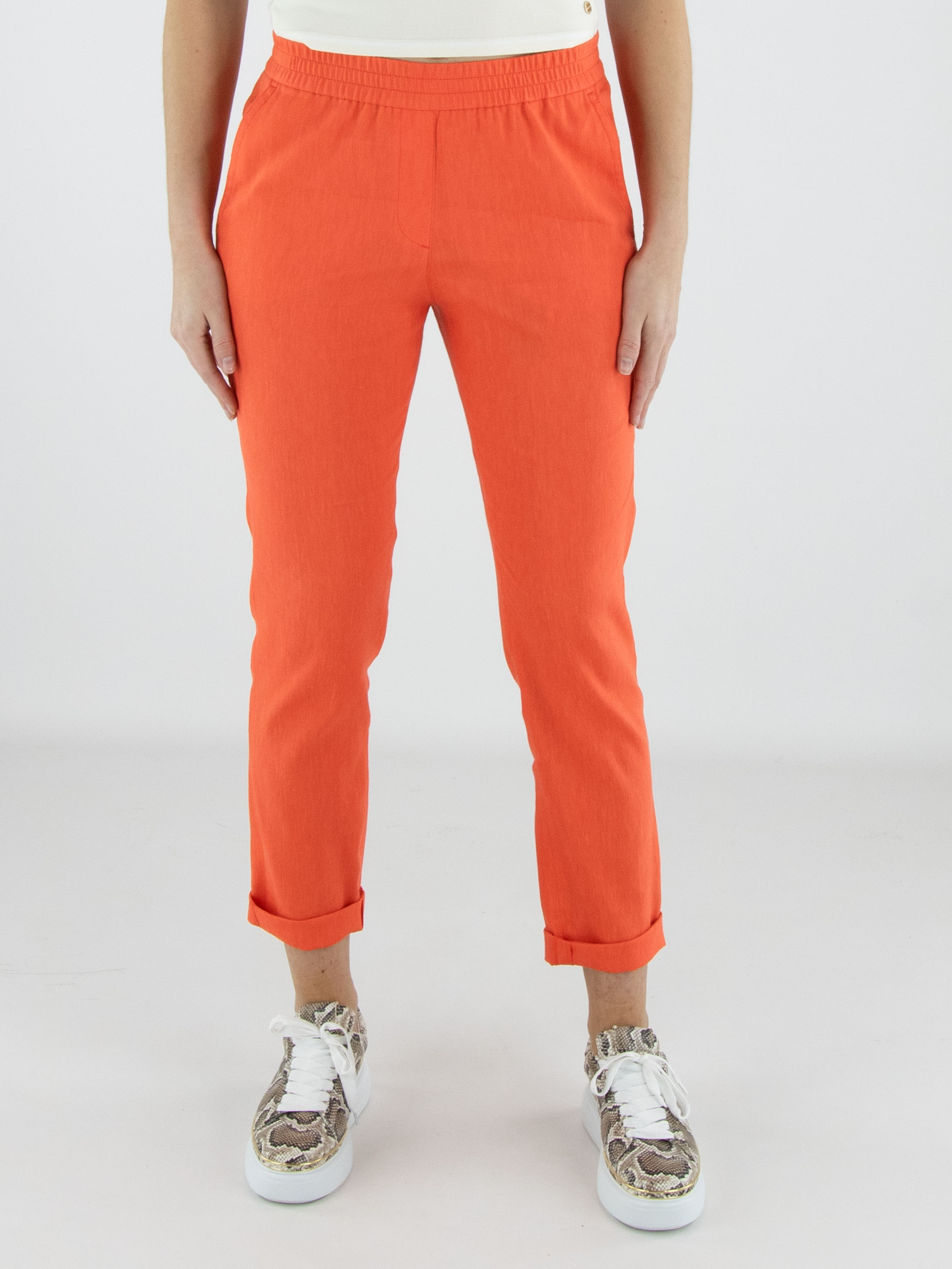 Pantalon de Marc Cain dans une teinte corail éclatante. La large ceinture élastique finement côtelée assure un ajustement confortable et contemporain. Doté de poches latérales et d’un petit revers au bas des jambes, il présente une finition moderne. Ce pantalon peut être lavé à 30 degrés.