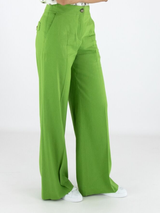 Pantalon de Marc Cain dans une teinte vert éclatant. Doté de poches latérales et d’un pli marqué au centre des jambes, il offre une allure élégante et soignée. Ce pantalon peut être lavé à 30 degrés.