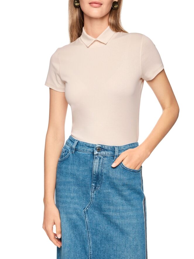 T-shirt de Marc Cain en beige. Doté de manches courtes et d’un col montant avec une petite fente sur le devant, il offre une allure raffinée et féminine. Ce top de créateur exclusif peut être lavé à 30 degrés.