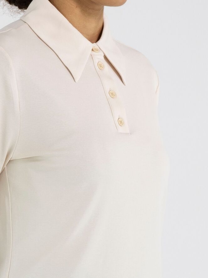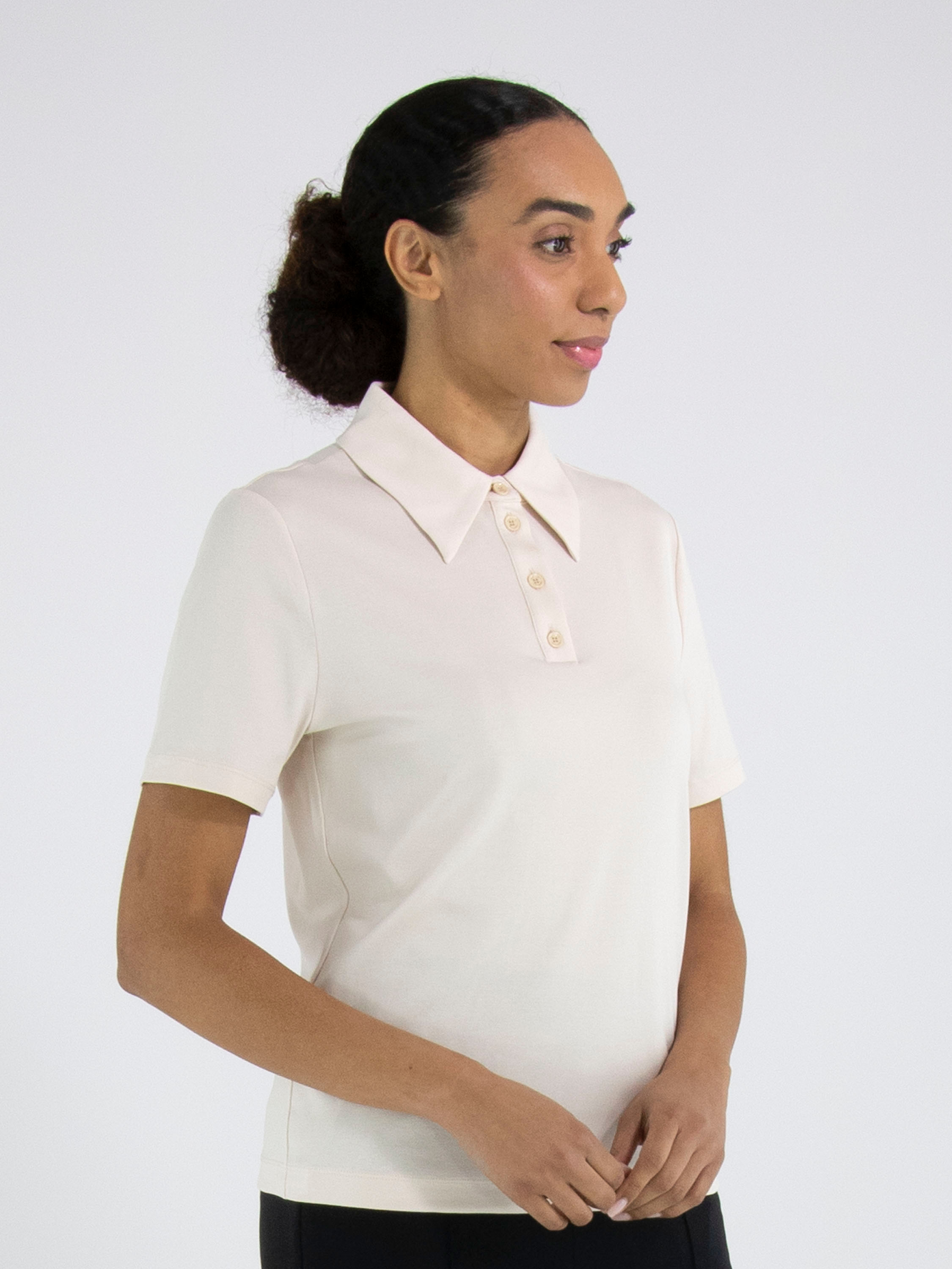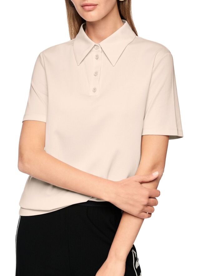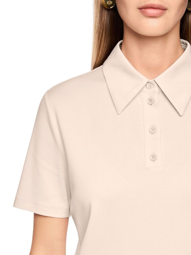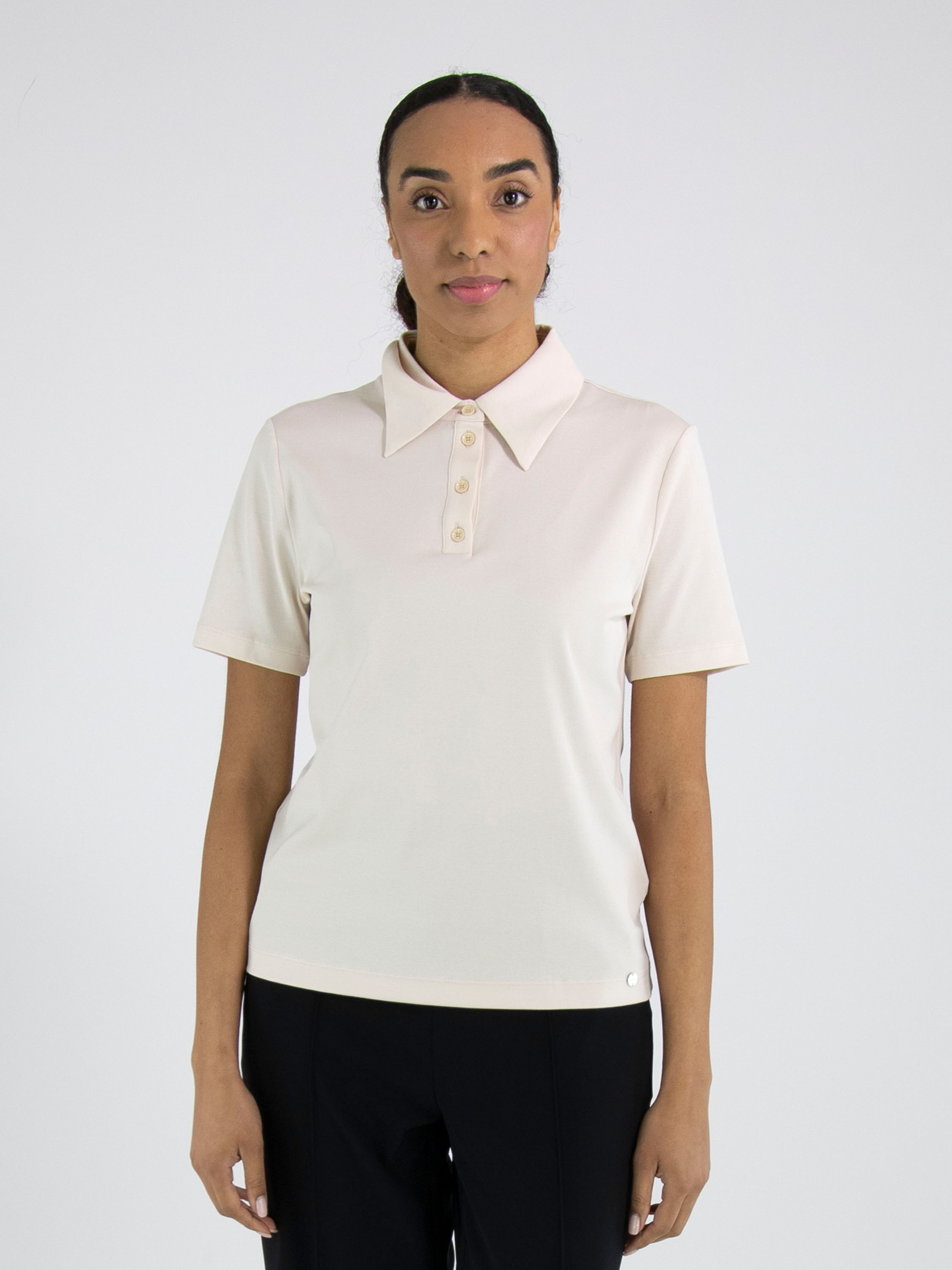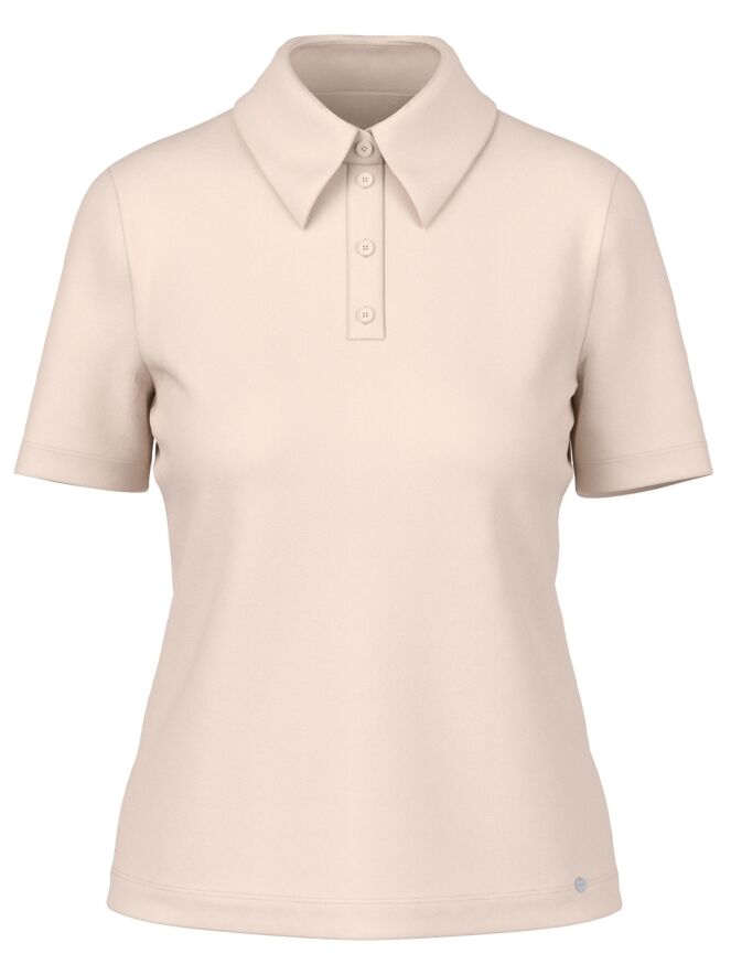 Polo de Marc Cain en beige. Ce modèle uni et élégant à manches courtes associe une allure sportive à l’élégance raffinée propre à Marc Cain. Ce polo de créateur exclusif peut être lavé à 30 degrés.