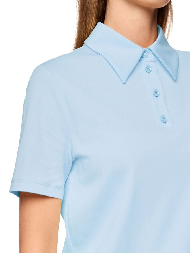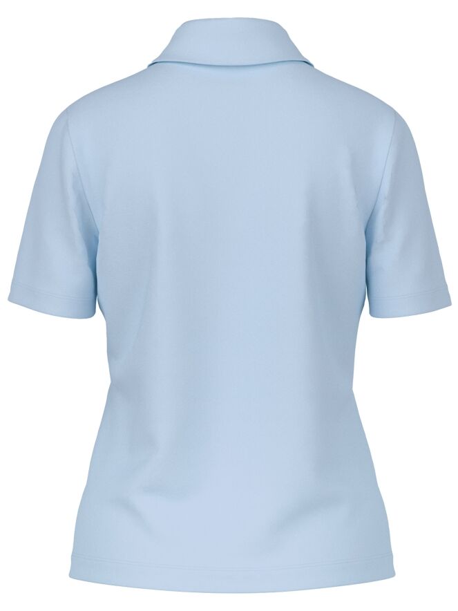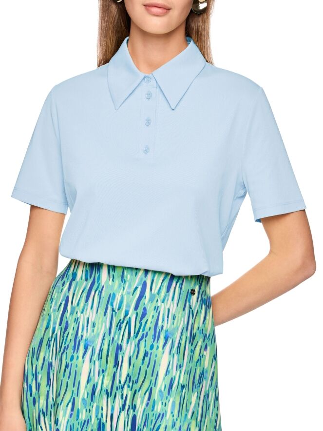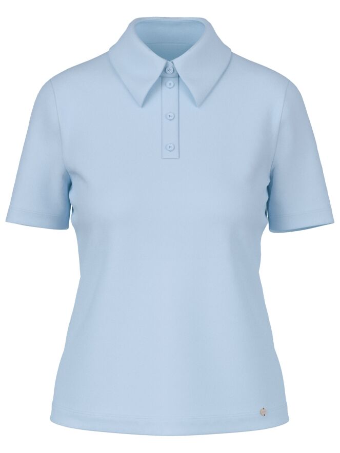 Polo de Marc Cain dans une douce teinte bleu pastel. Entièrement uni et doté de manches courtes, il allie une allure fraîche, sportive et élégante. Ce polo de créateur exclusif peut être lavé à 30 degrés.