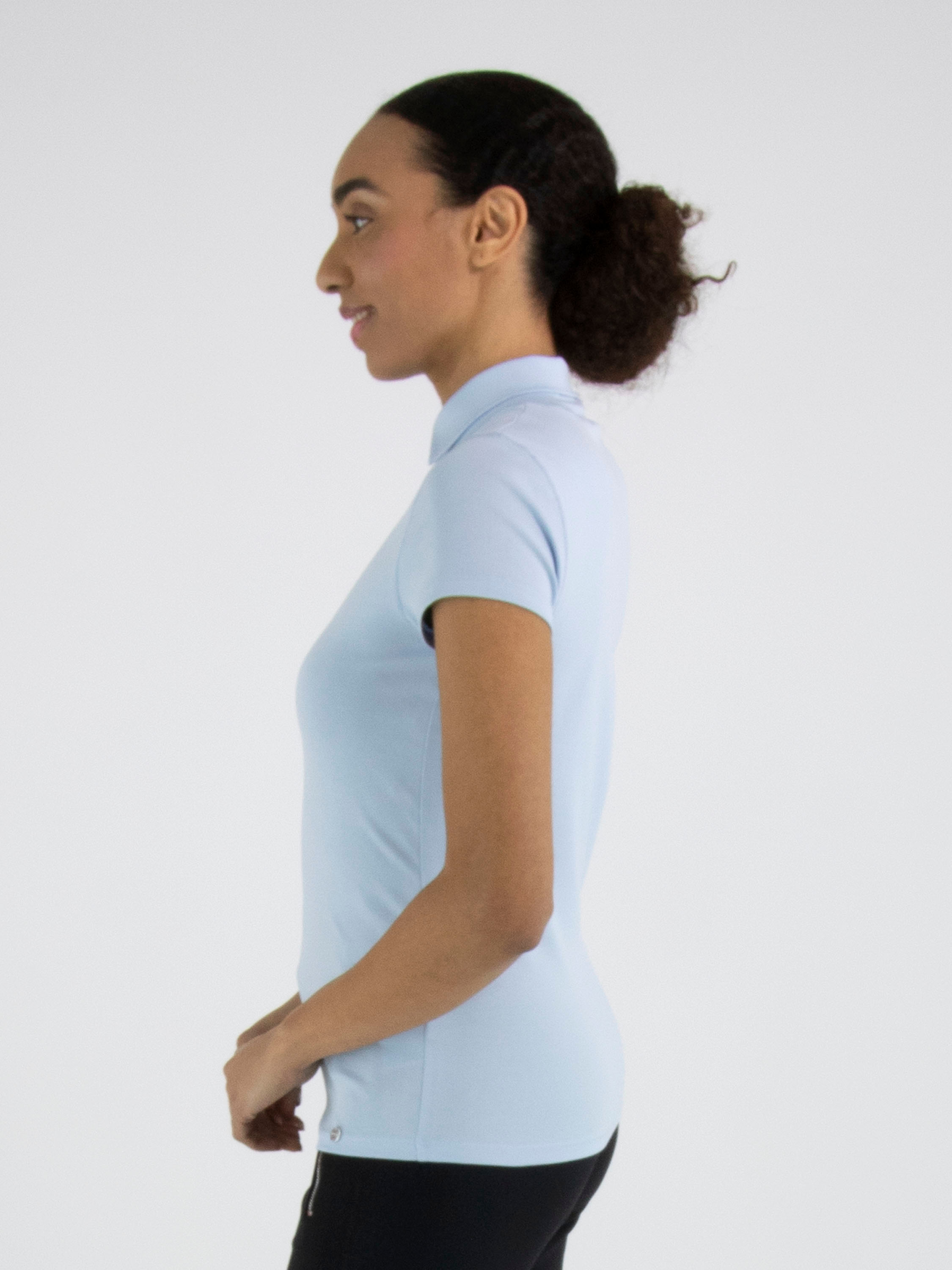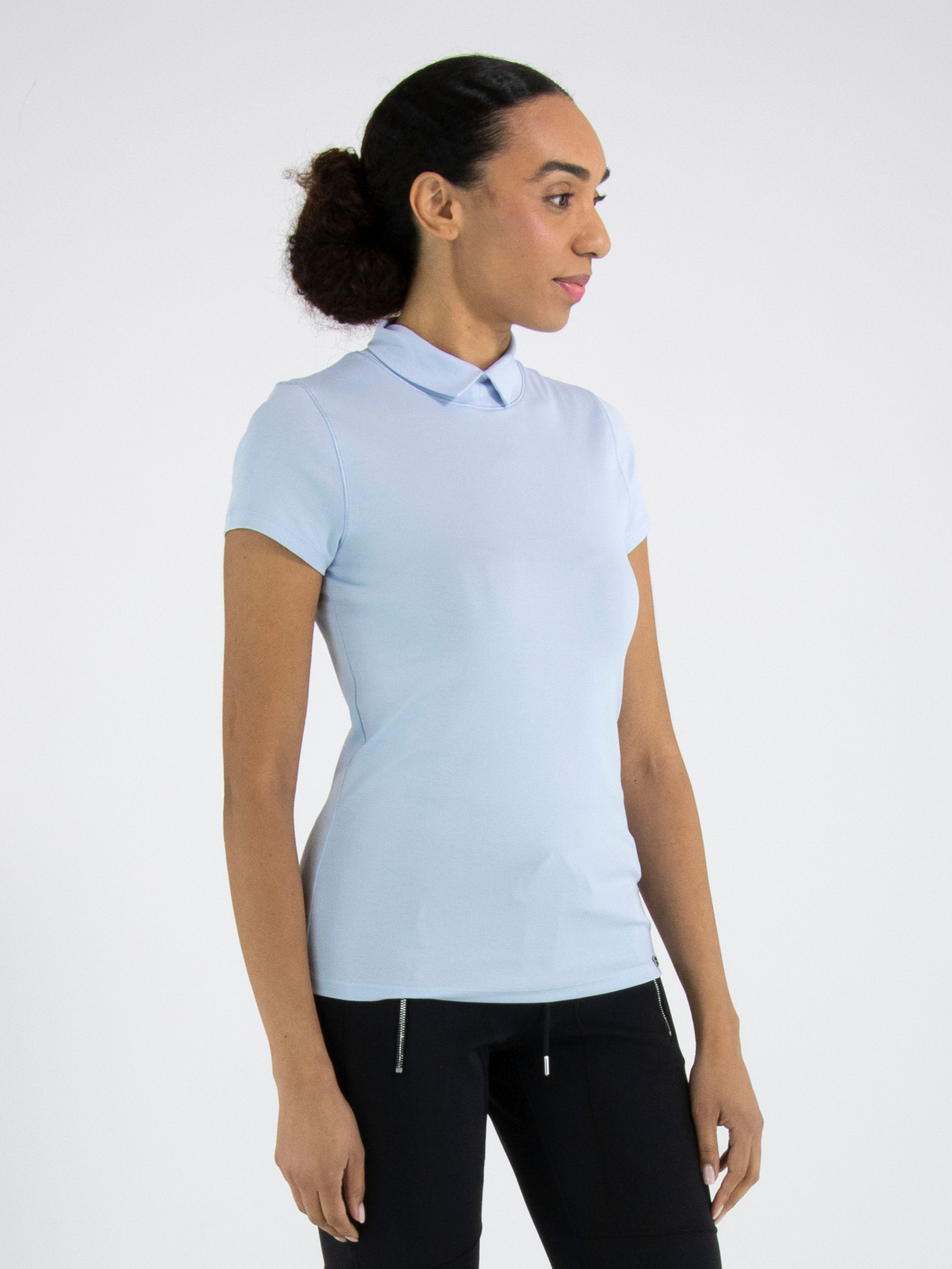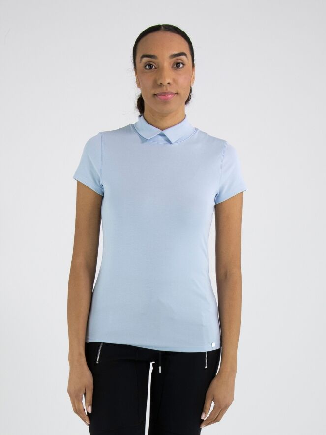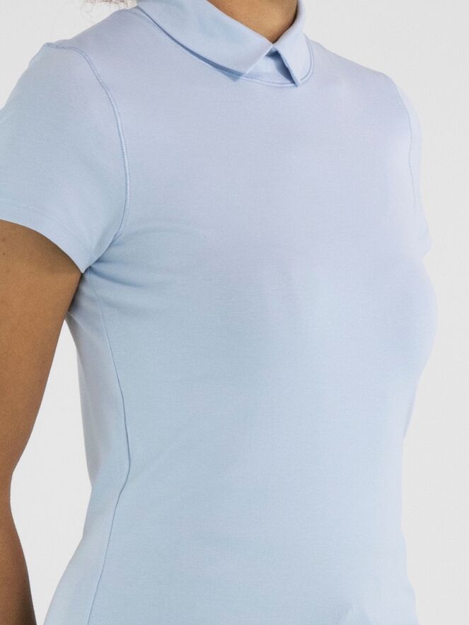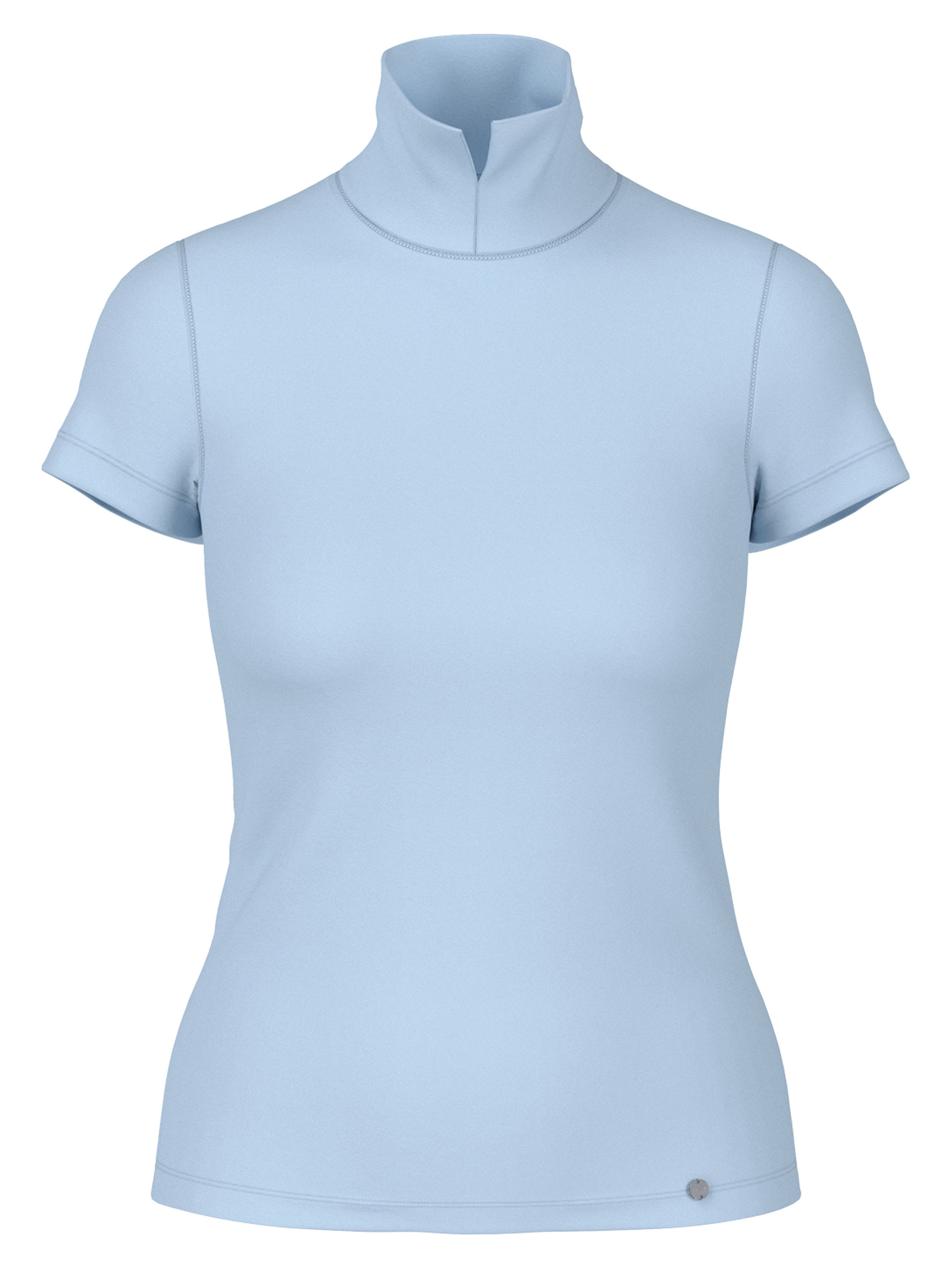 T-shirt de Marc Cain dans une douce teinte bleu pastel. Doté de manches courtes et d’un col montant avec une petite fente au centre, il offre une allure féminine et élégante. Ce haut de créateur exclusif peut être lavé à 30 degrés.
