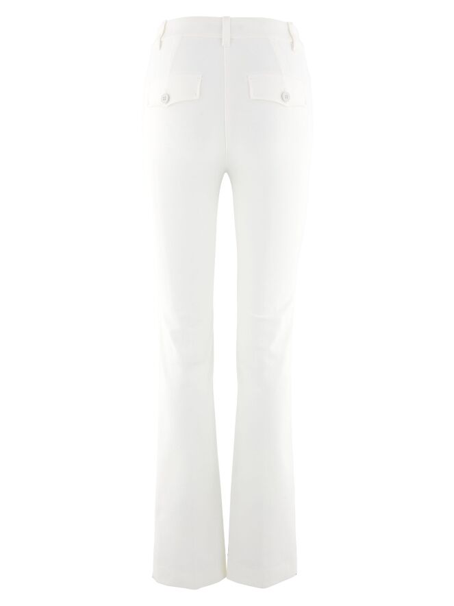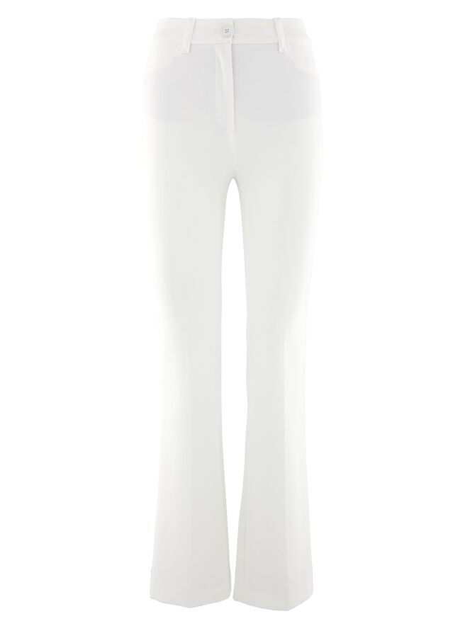 Jeans Marc Cain, en denim blanc. Pantalon pattes d\'éléphant décontracté à taille haute. Modèle 5 poches. Lavage à 30 degrés.