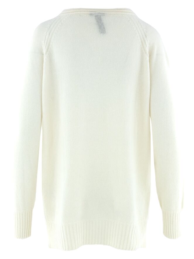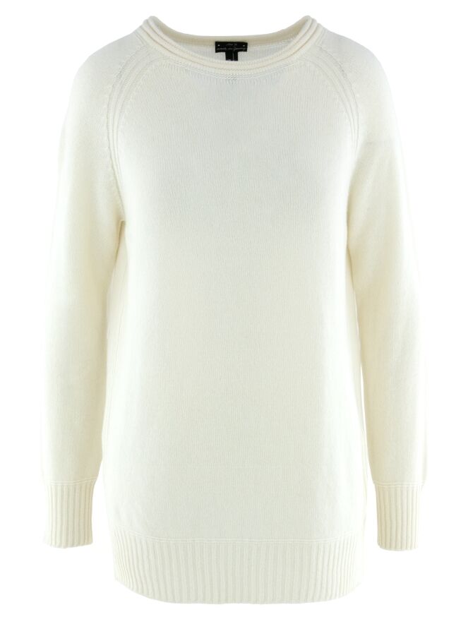 Pull de la marque Marc Cain de couleur écru. Col arrondi avec un joli passepoil, les manches longues ainsi que le bas du pull sont finis par un large ourlet lui donnant ce look sportif. Lavage à la main conseillé.