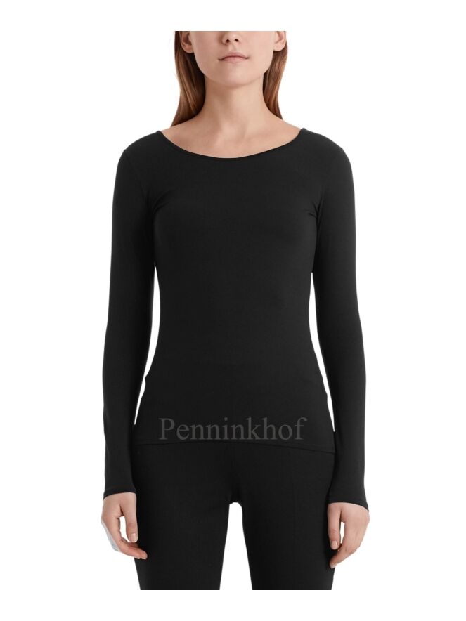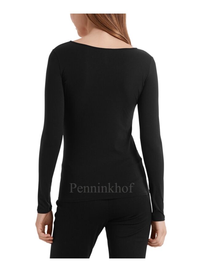 T-shirt de qualité supérieure ultra fin, de la marque Marc Cain, de couleur noire. Modèle de coupe légèrement cintrée, avec un joli col rond et des manches longues. Lavage à 30 degrés.