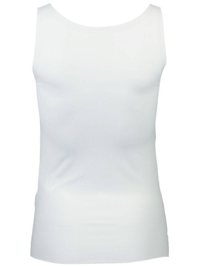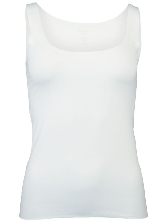 Top basique, de la marque Marc Cain essentiels, de couleur écru. Modèle sans manche avec larges bretelles de 4 cm. Son tissu très élastique lui confère un très grand confort. Lavage à 30 degrés.