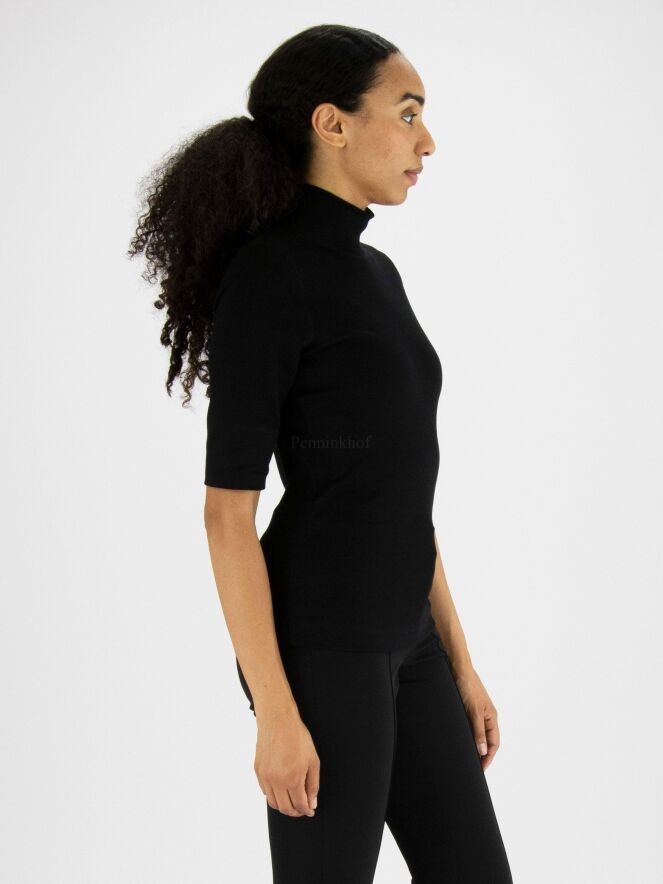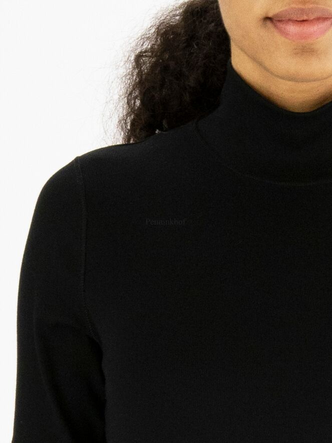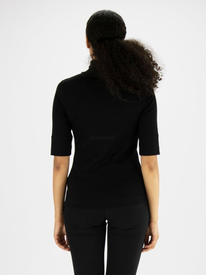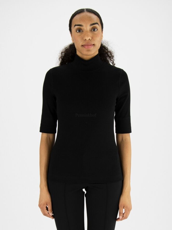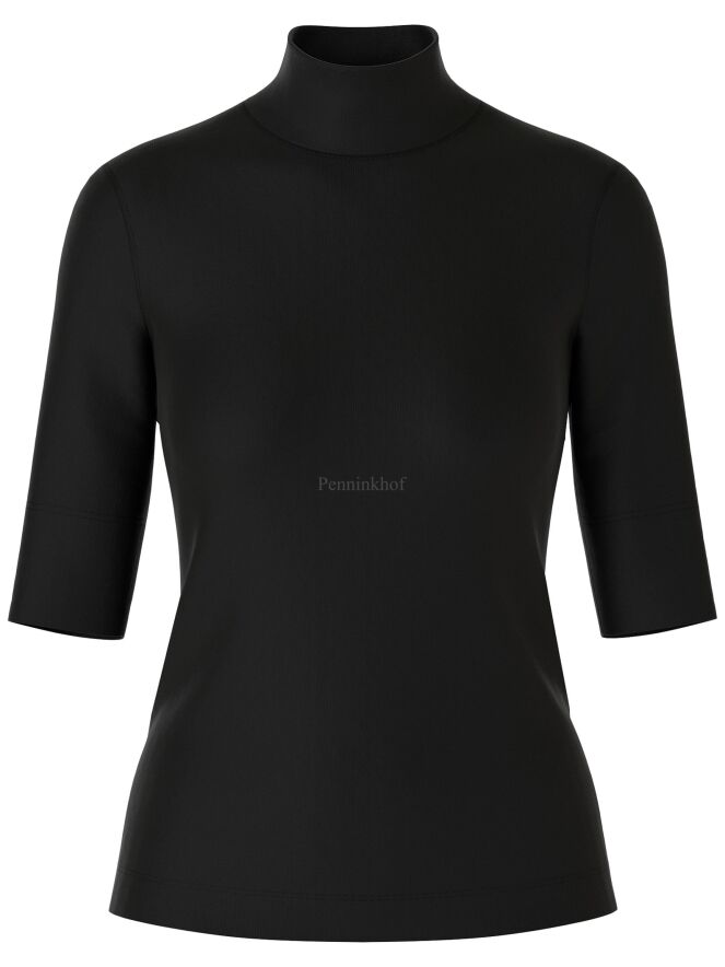 Tee-shirt de la marque Marc Cain de couleur noire. Manches mi-longues et col montant. Lavage à 30 degrés.