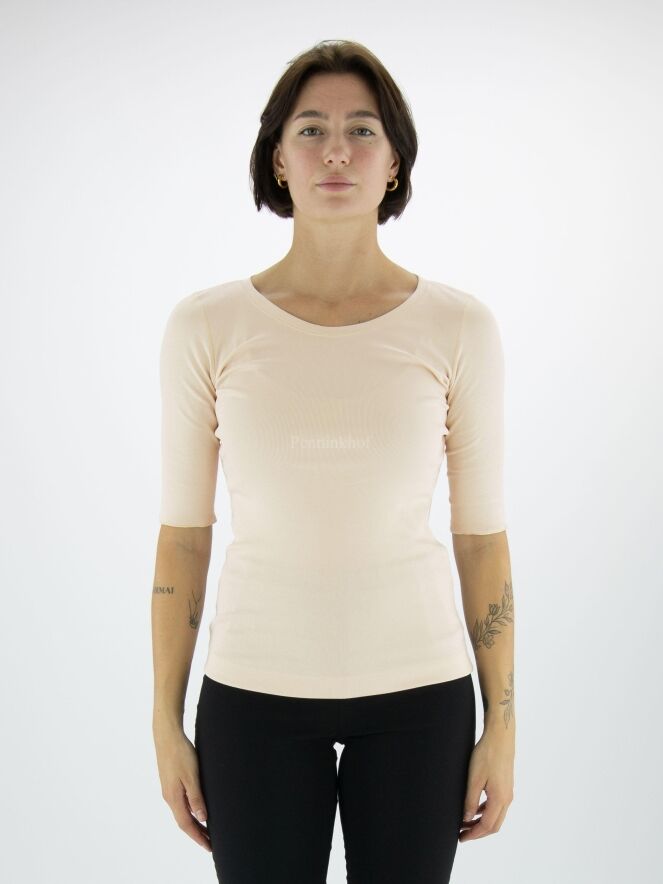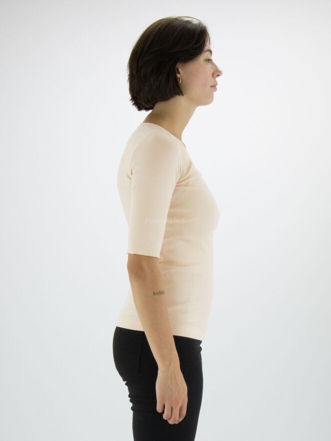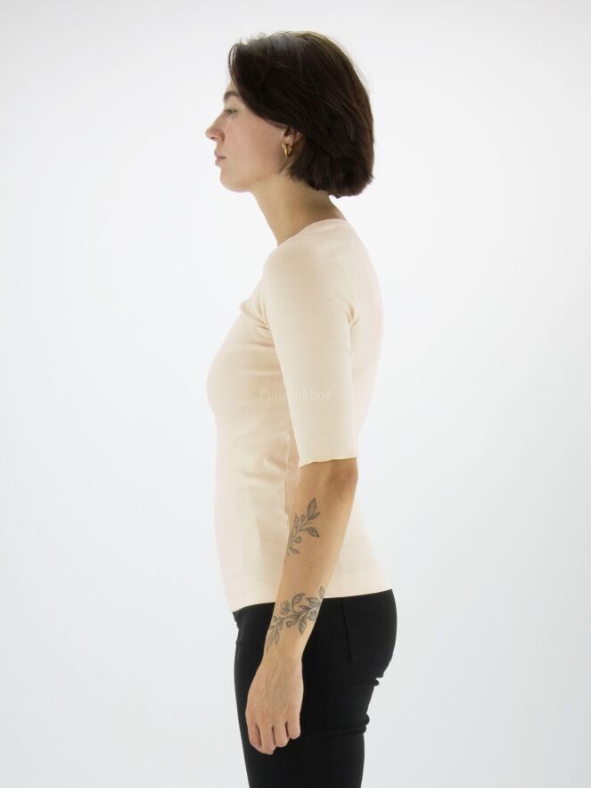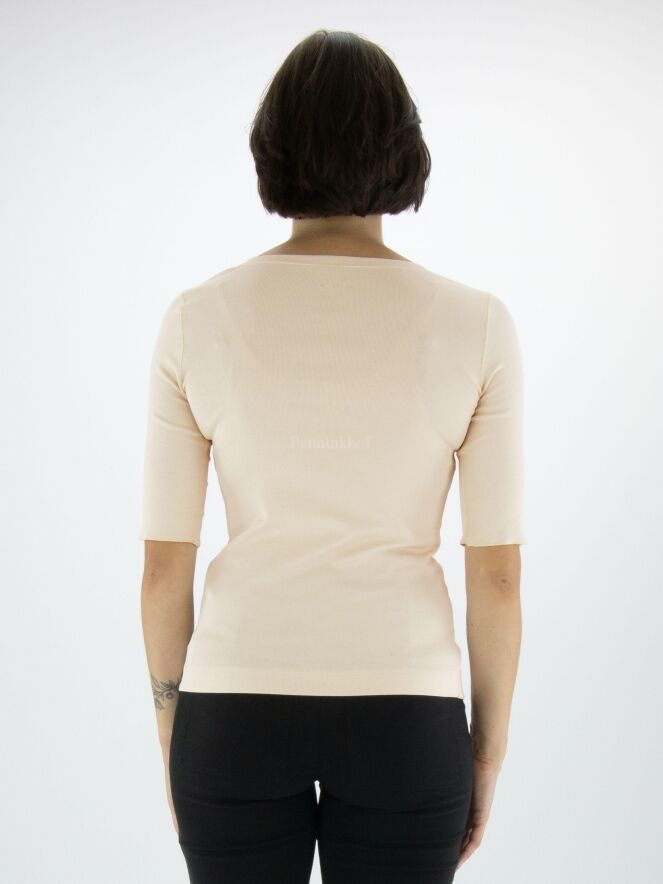 Un T - shirt de Marc Cain dans la couleur nude. Les manches courtes sont retroussées. Le T - shirt a un col rond et peut être lavée à 30 degrés.