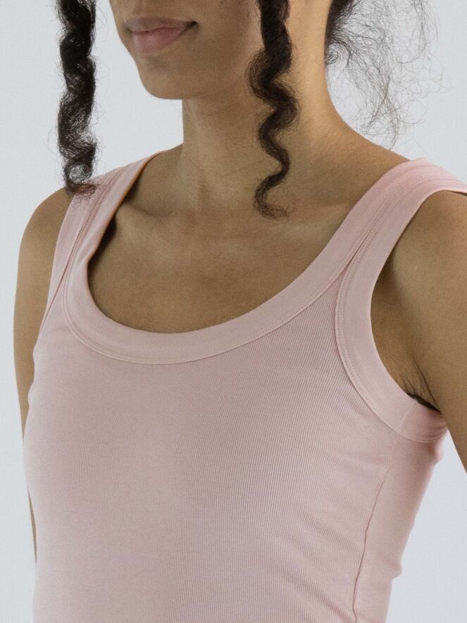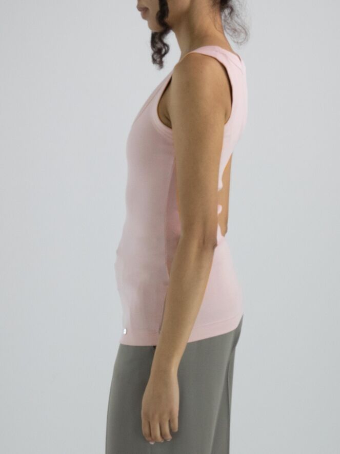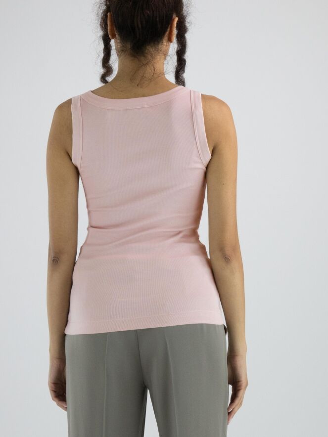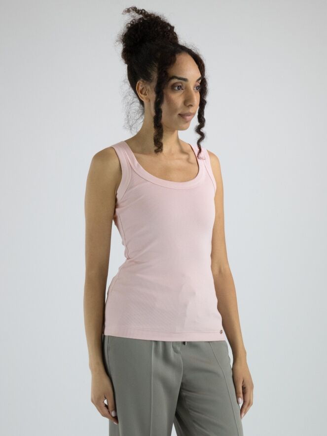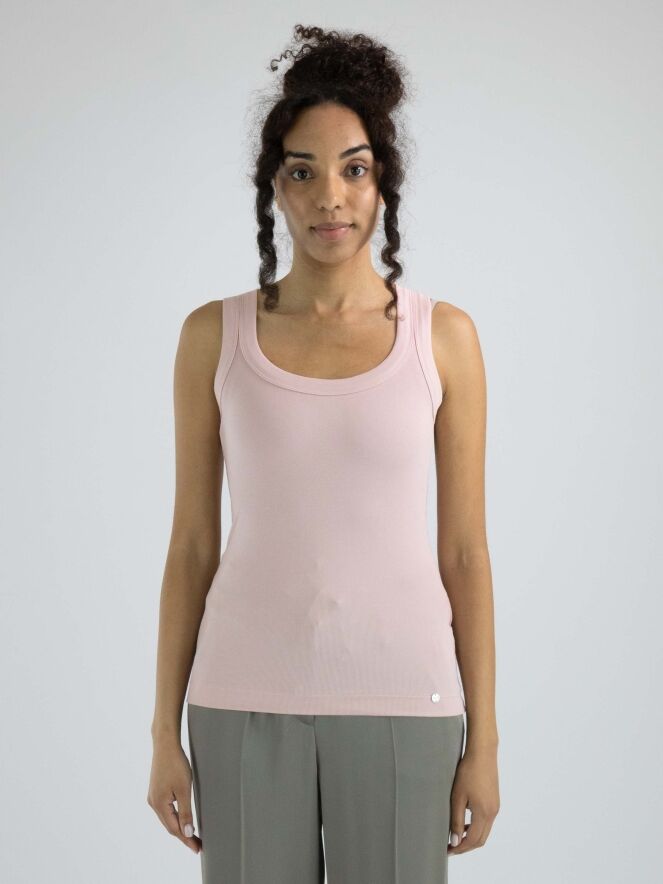 Un top rose de Marc Cain. Le top a un col rond et le tissu est finement côtelé. Ce top peut être lavé à 30 degrés.