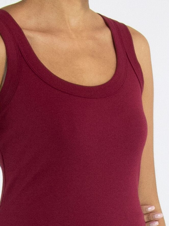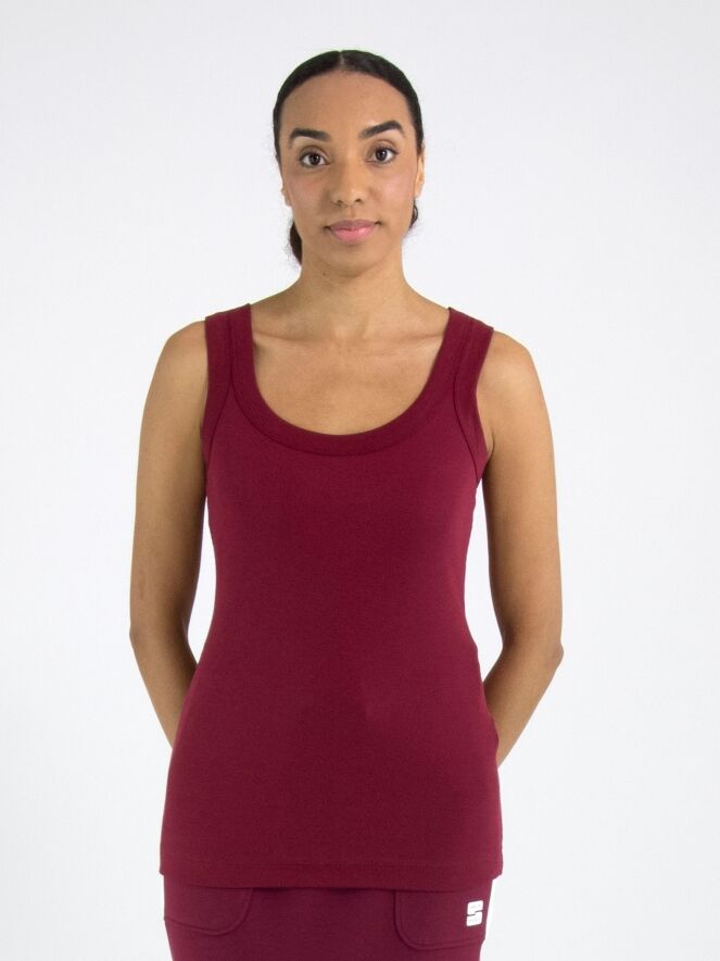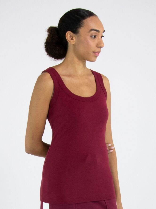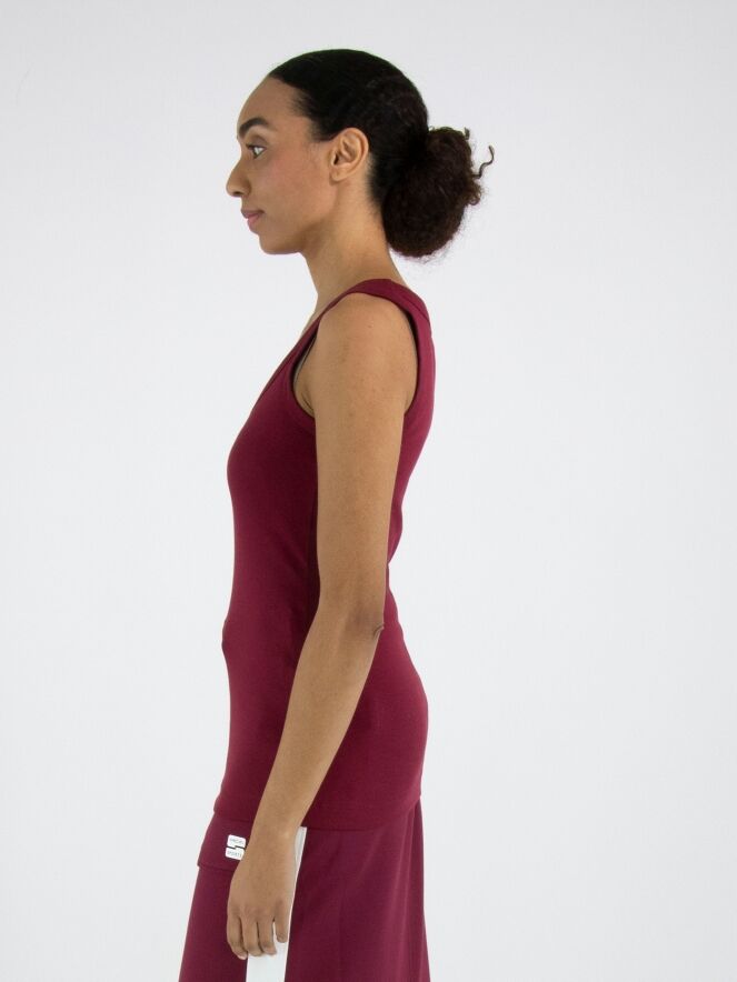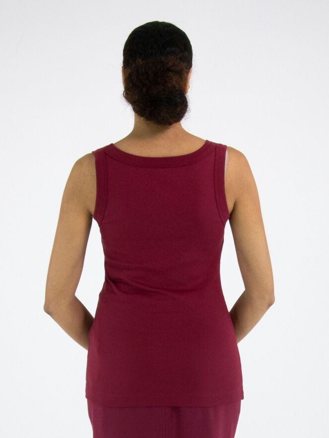 Un top de Marc Cain en bordeaux. Le top possède une encolure ronde et peut être lavé à 30 degrés.
