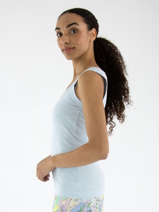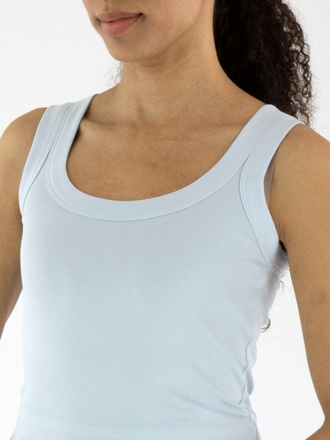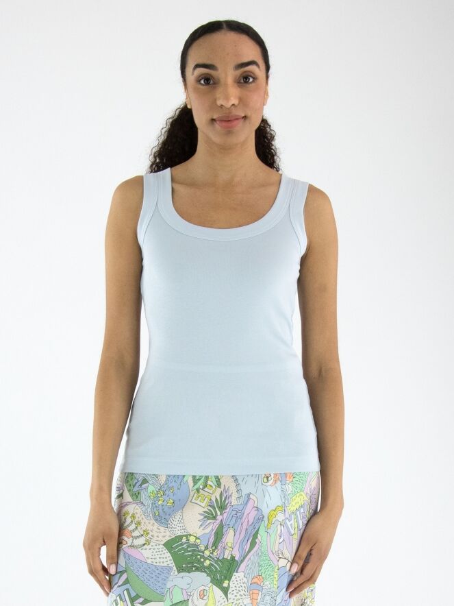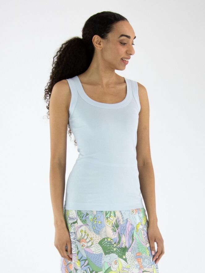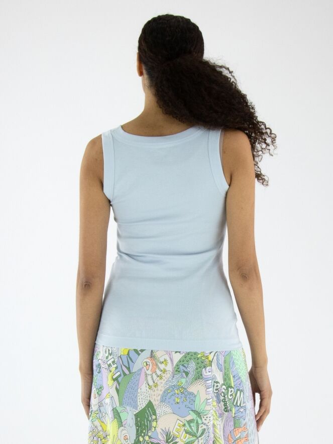 Un top de Marc Cain en bleu pastel. Ce top présente une encolure ronde et peut être lavé à 30 degrés.