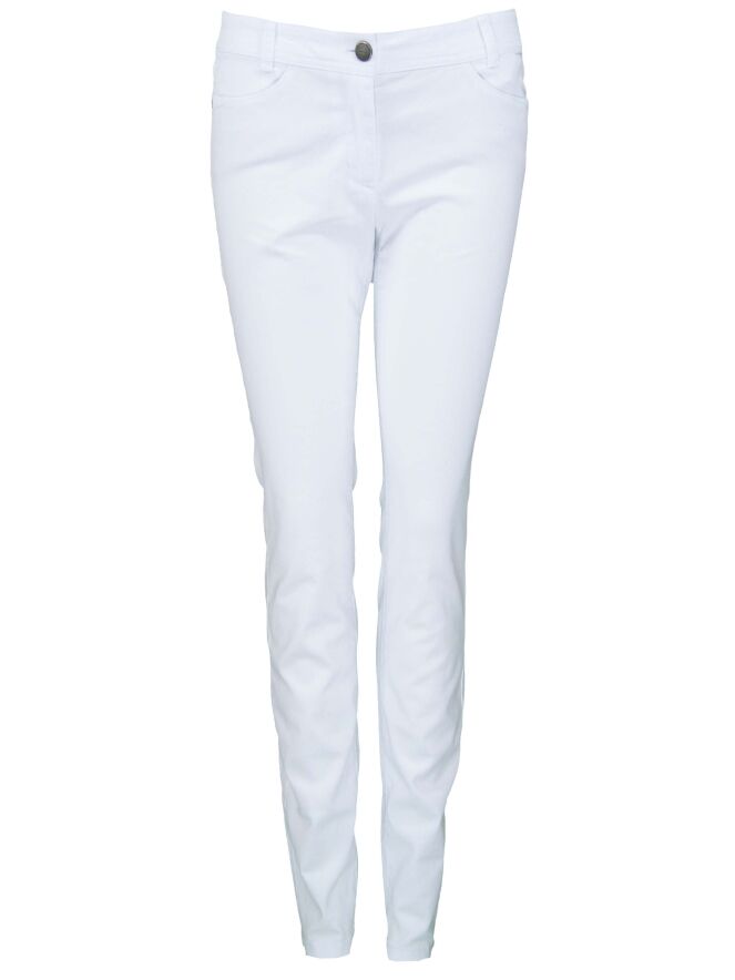 Pantalon Marc Cain, de couleur blanche. Modèle étroit et confortable grâce à sa matière. Modèle à 4 poches. Lavage à 30 degrés.
