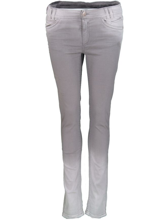 Jeans skinny à effet dégradé, de la marque Marc Cain, de couleur taupe. Modèle à cinq poches. Lavage à 30 degrés.