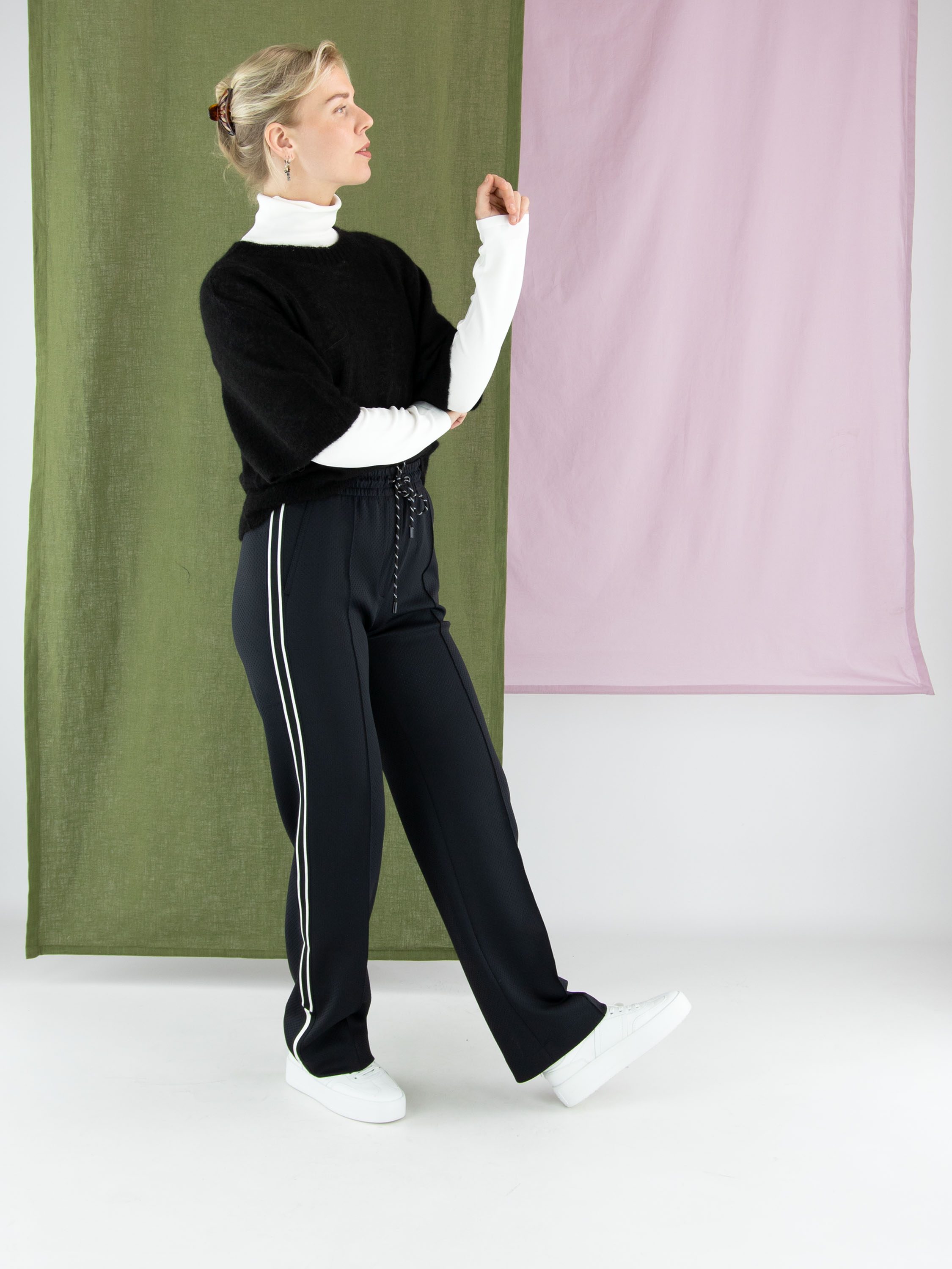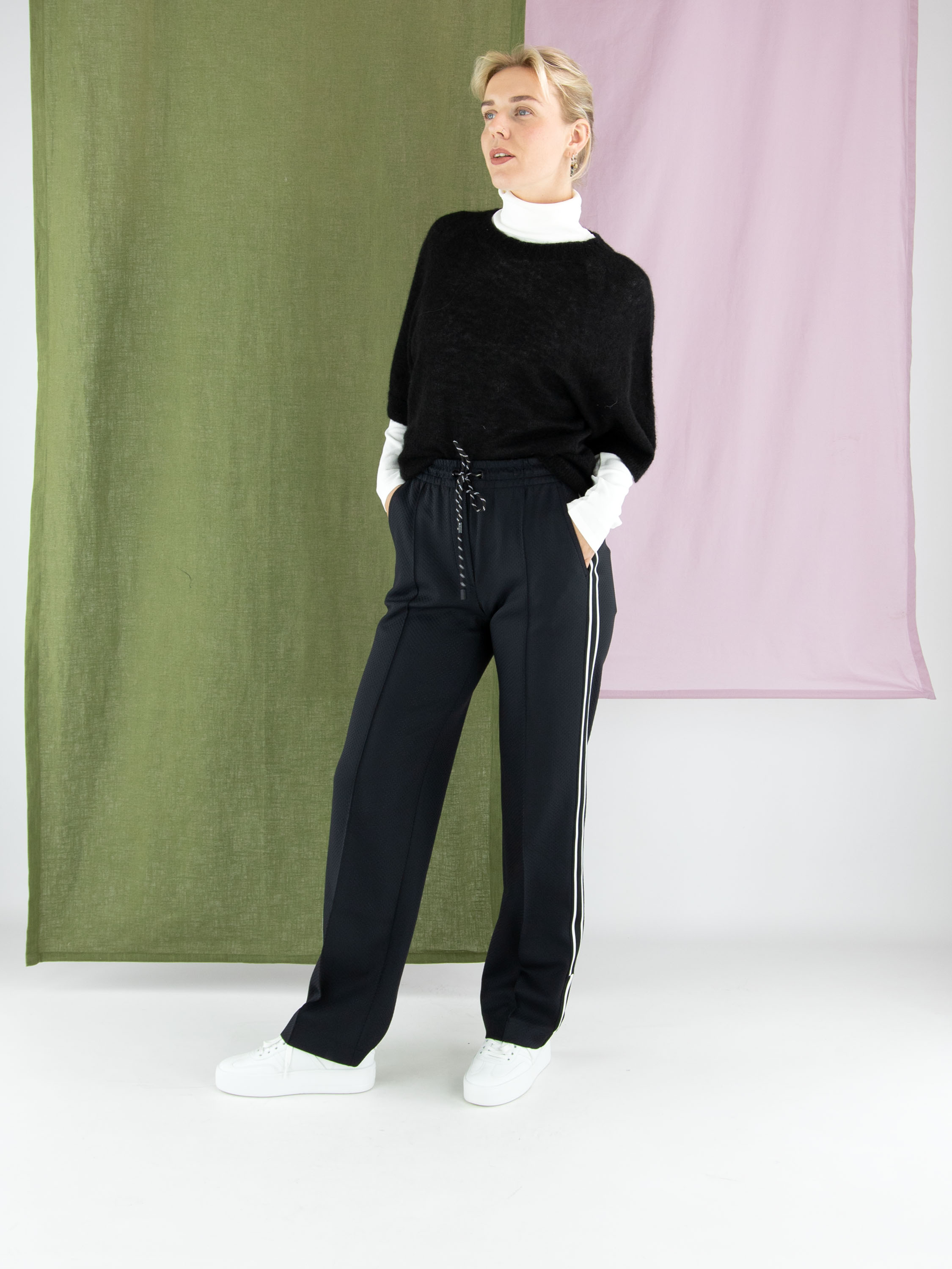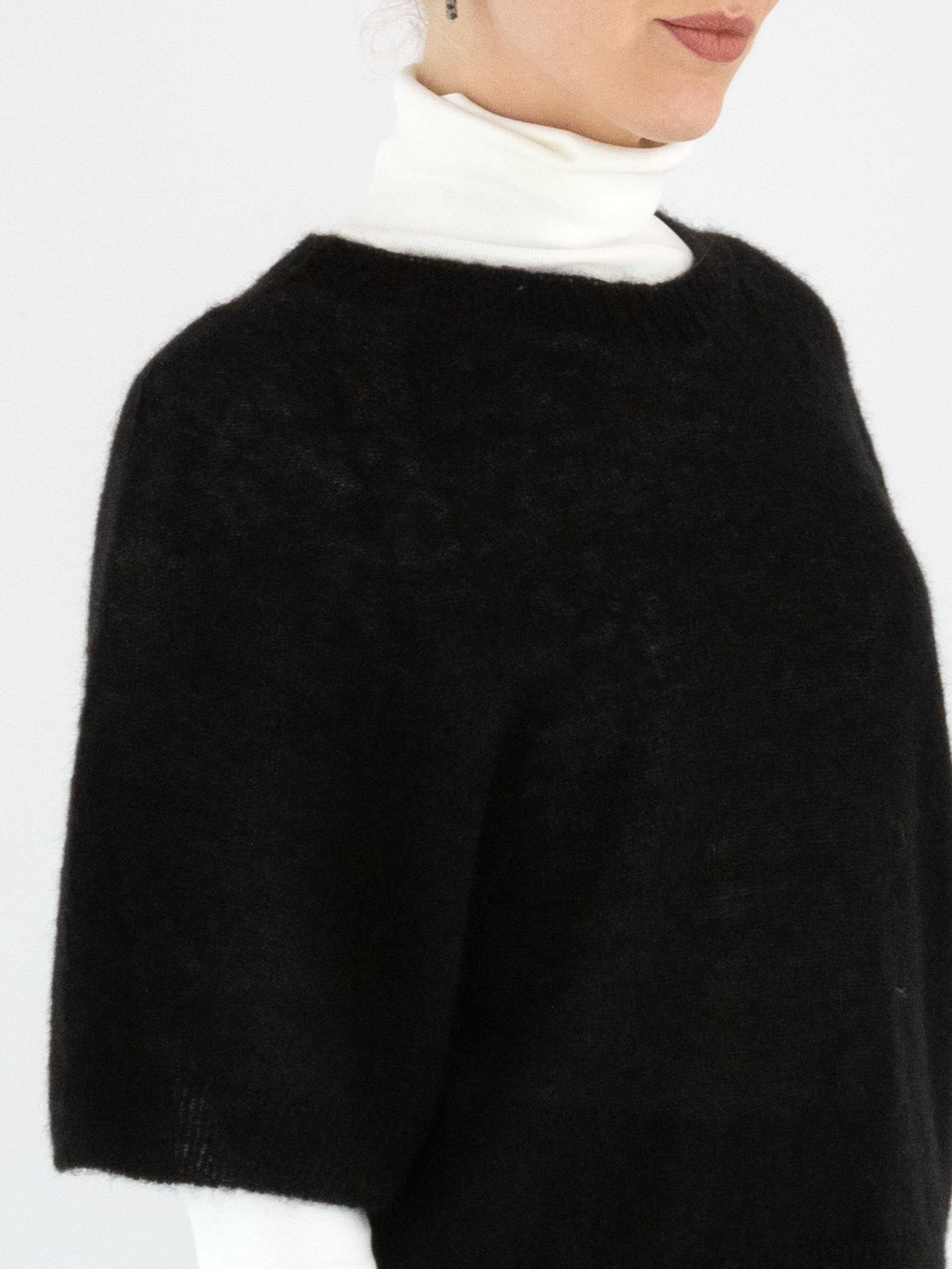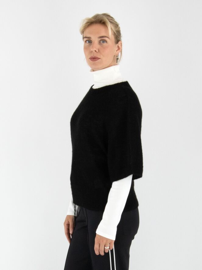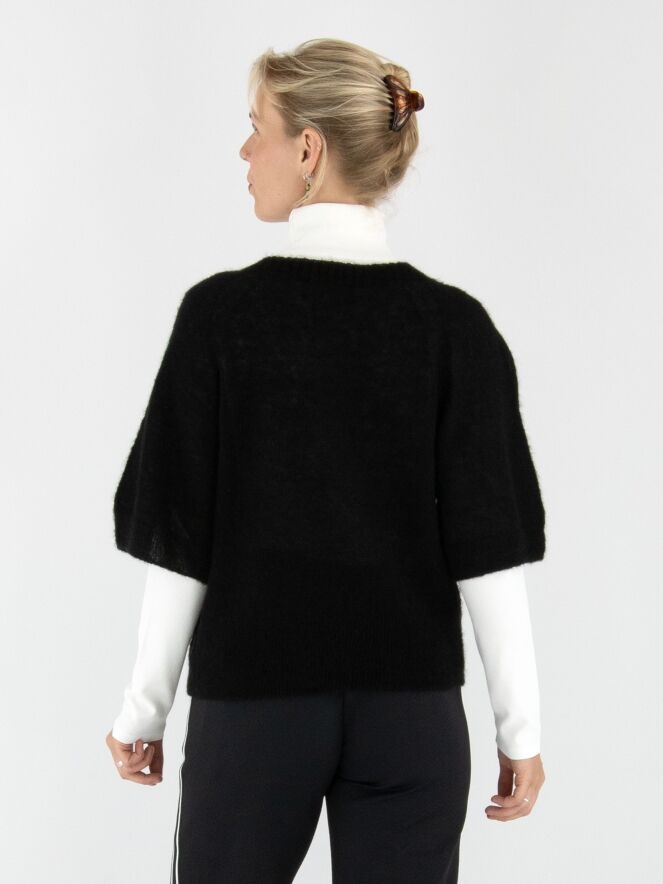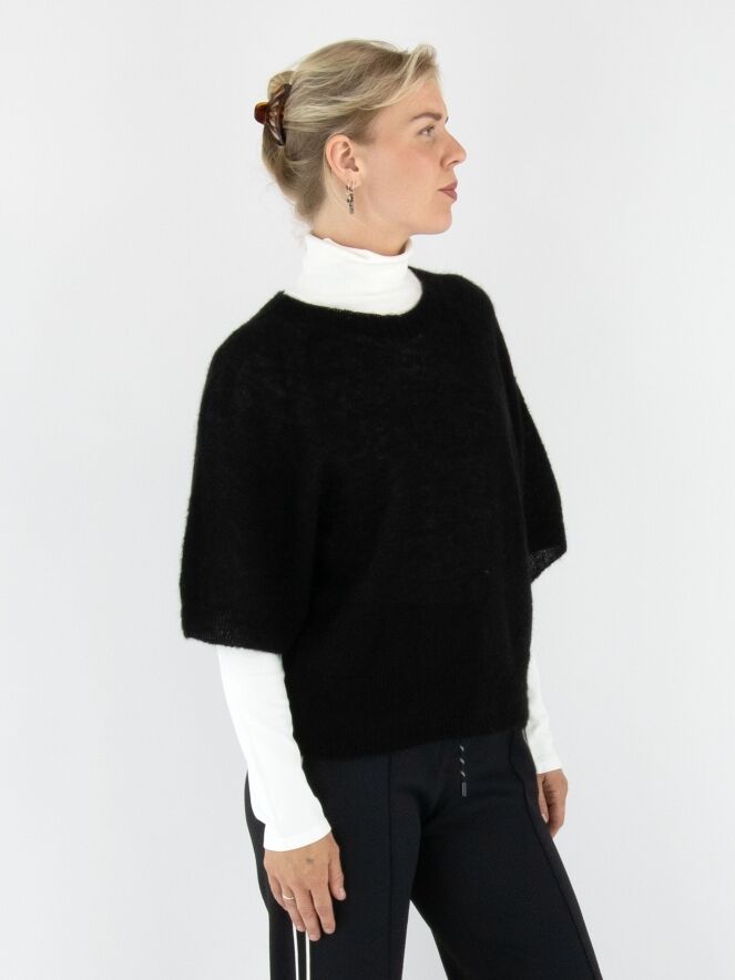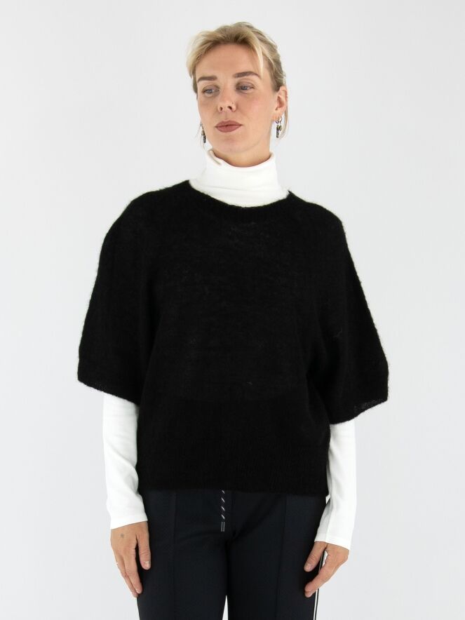 Un pull raffiné de Marc Cain en noir. Il présente un col rond et des manches courtes. Ce pull doit être lavé à la main.