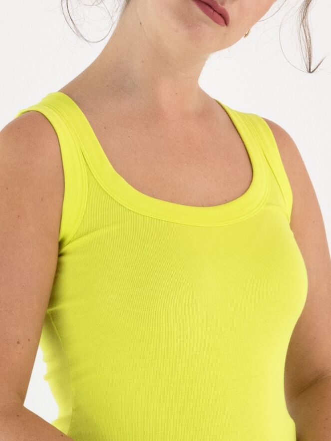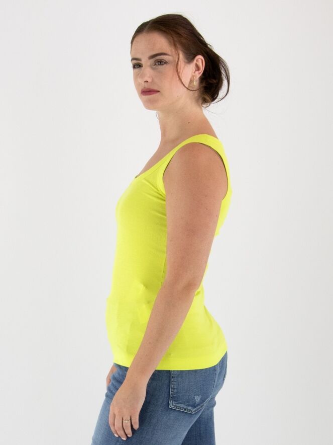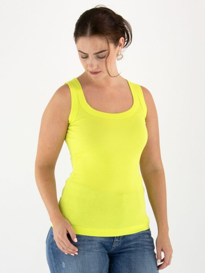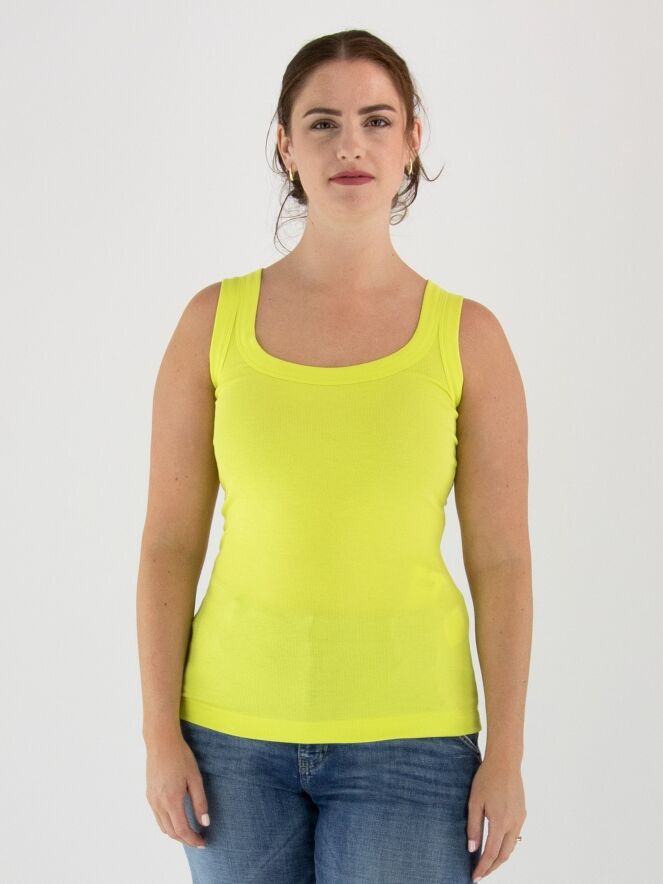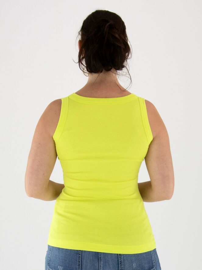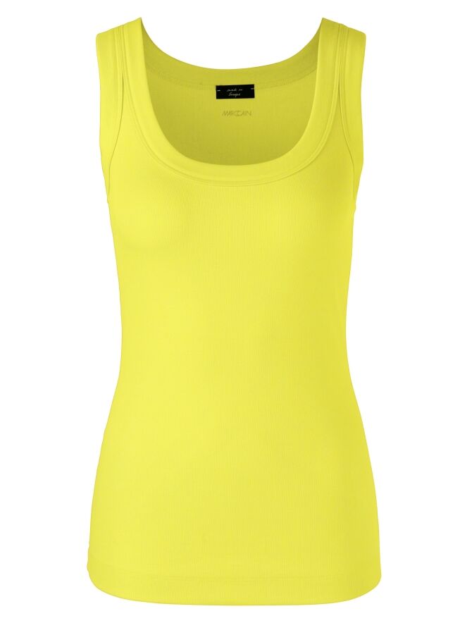 Top de Marc Cain en vert citron. Ce top a un col rond et peut être lavé à 30 degrés.